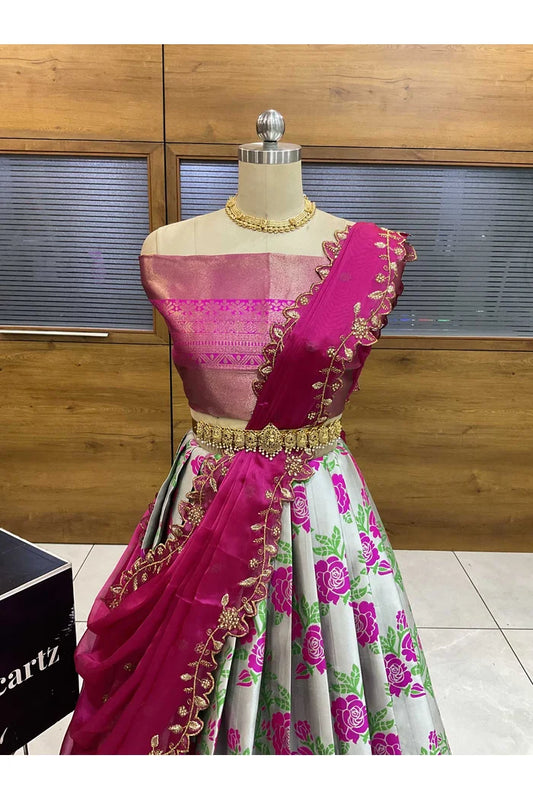Ridhima South Indian Festival Traditional Half Saree with Embroidered Blouse & Dupatta