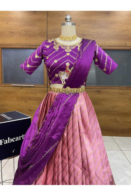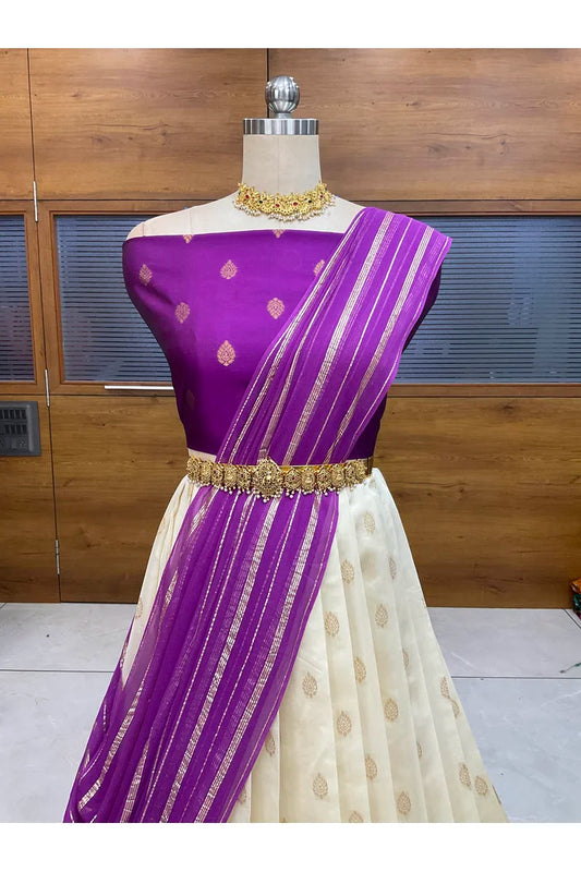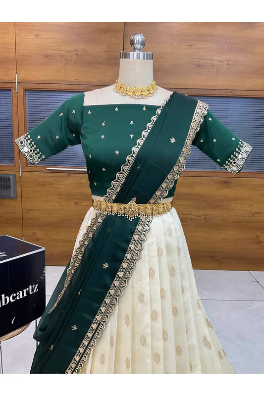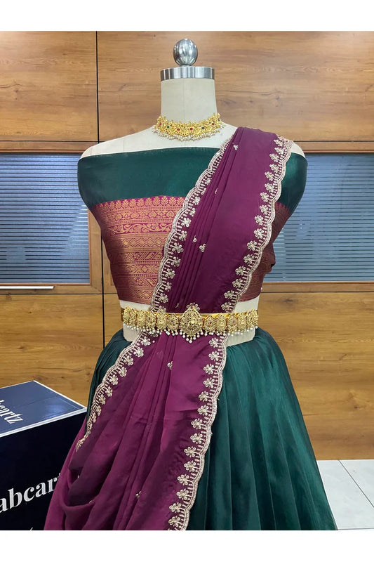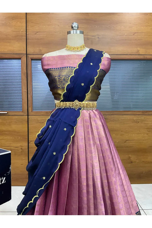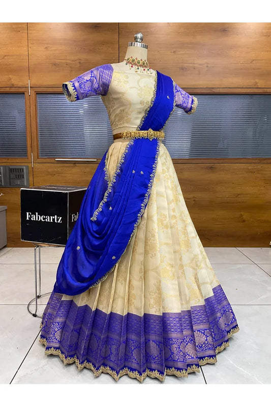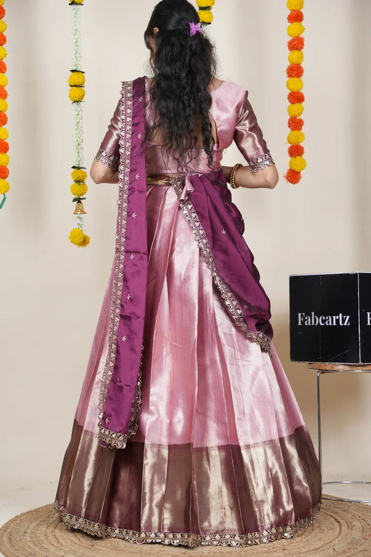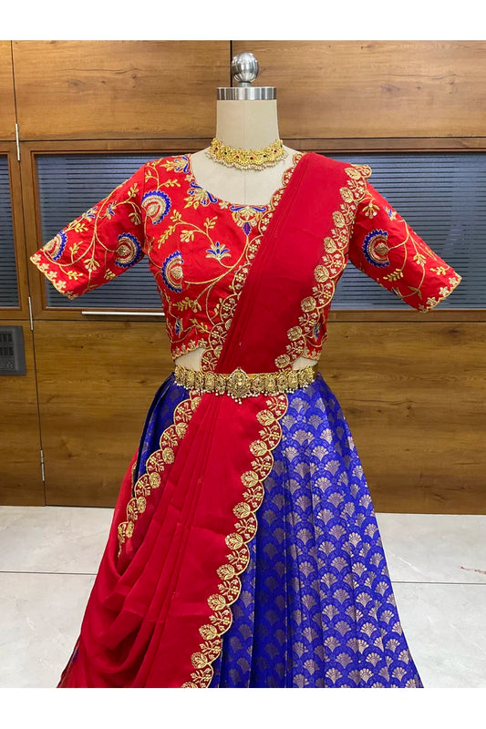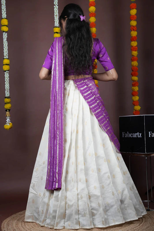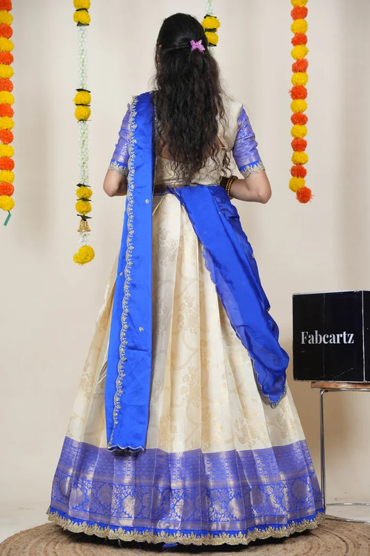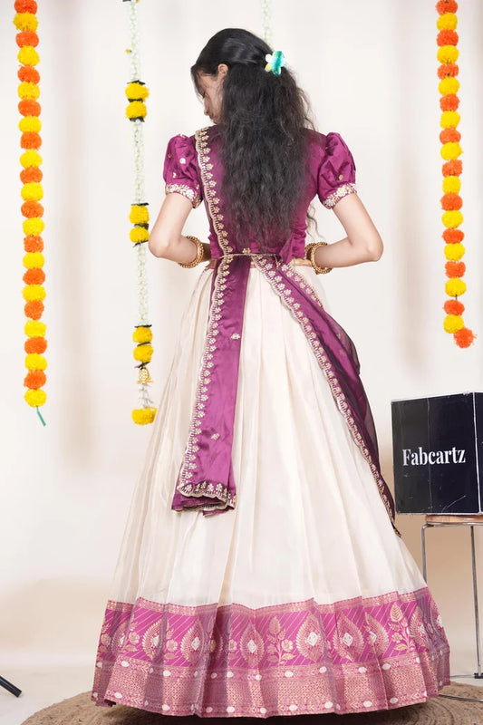 South Indian Festival Traditional Half Saree with Embroidered Blouse & Dupatta (Ridhima)