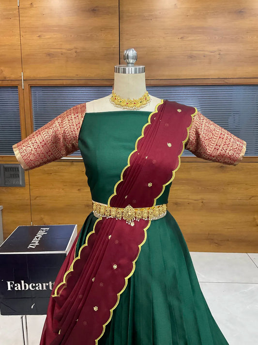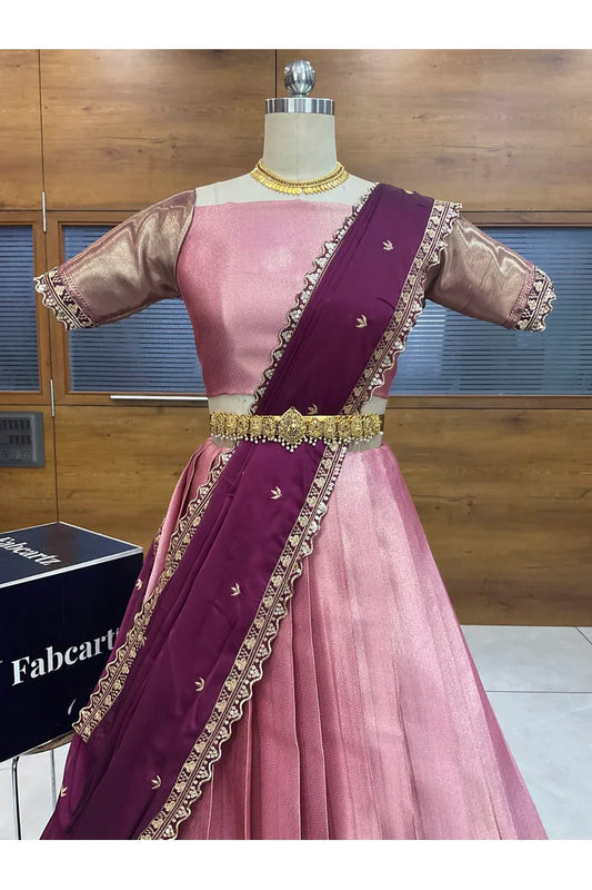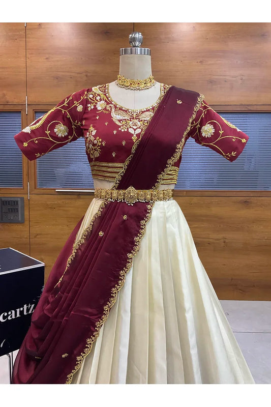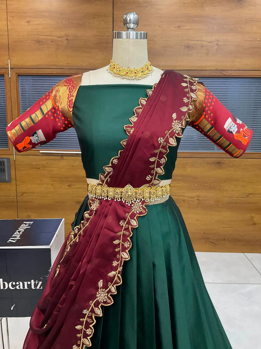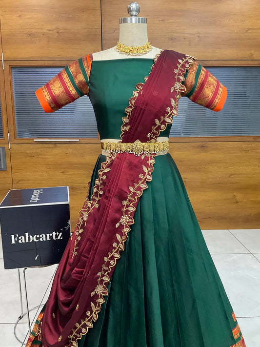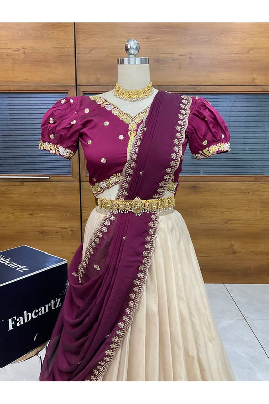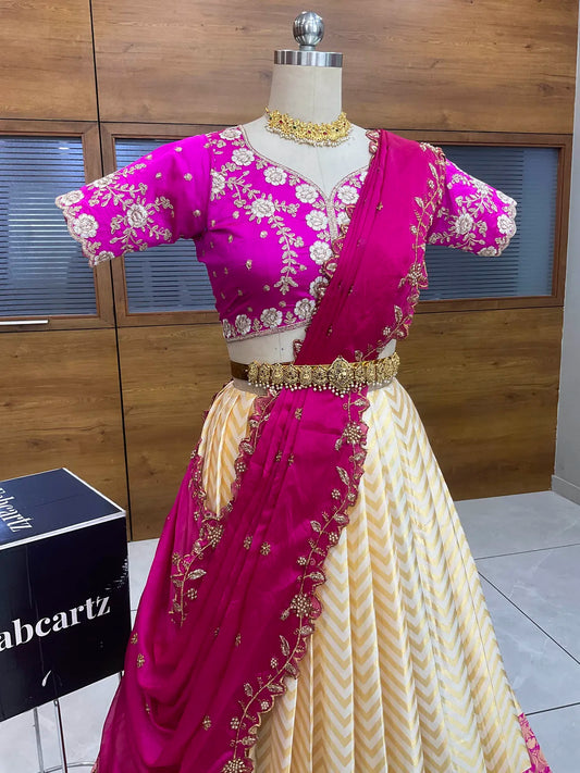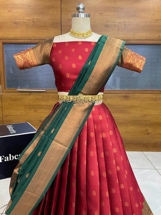 South Indian Festival Traditional Half Saree with Embroidered Blouse & Dupatta (Maalti)