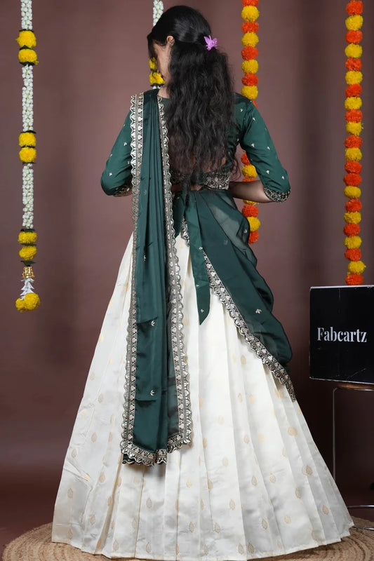 FabcartzButtiRango/Aroli South Indian Festival Traditional Half Saree with Blouse & Embroidered Dupatta
