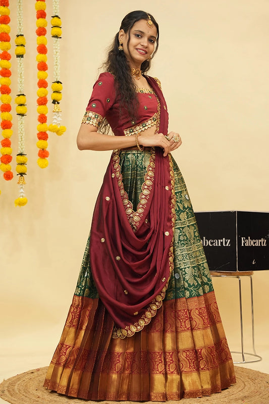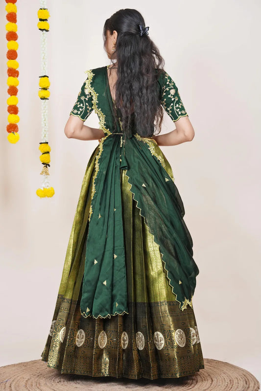 SudhaPattu Women's Woven Design zari work Half Saree with Embroidered Blouse and Dupatta