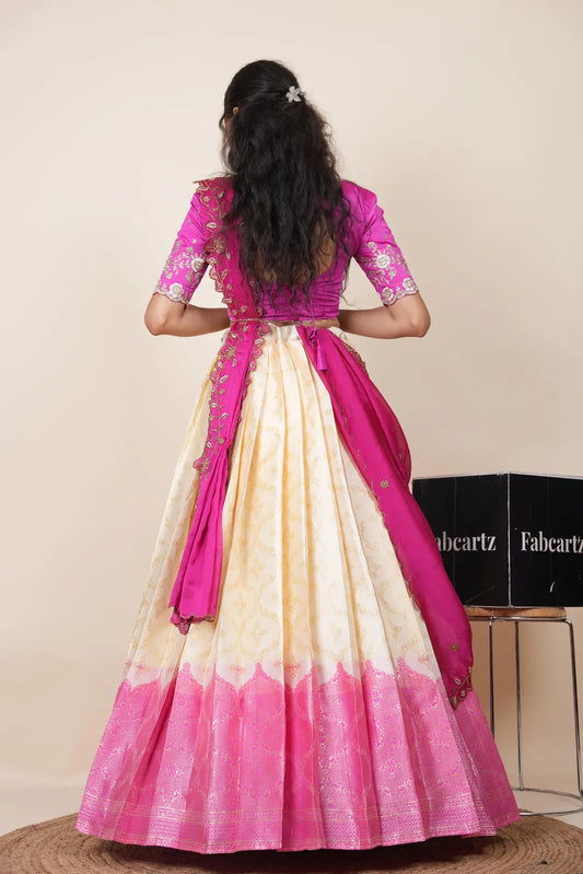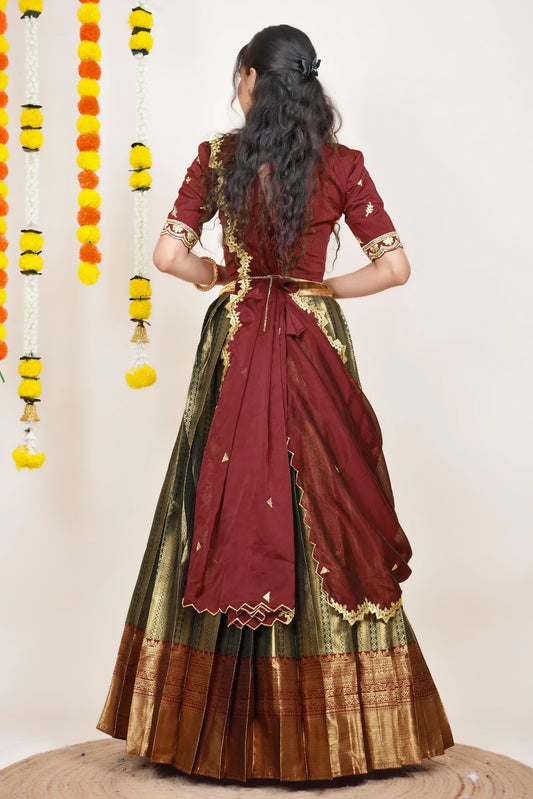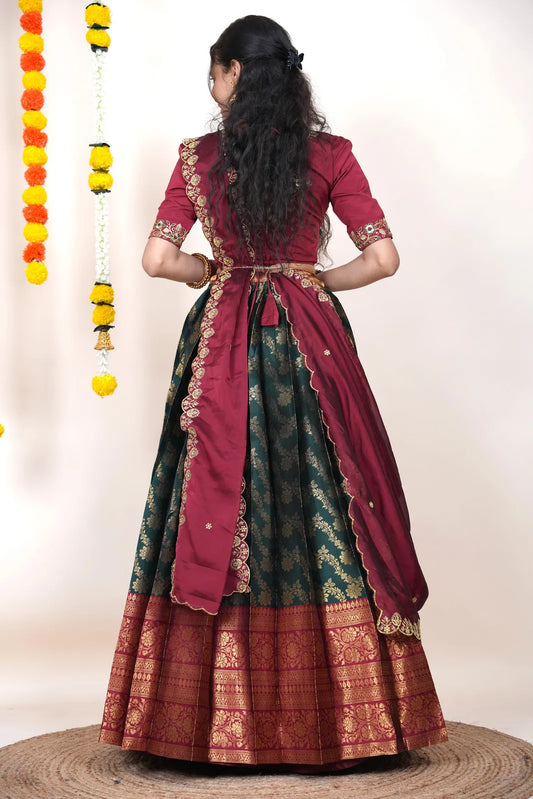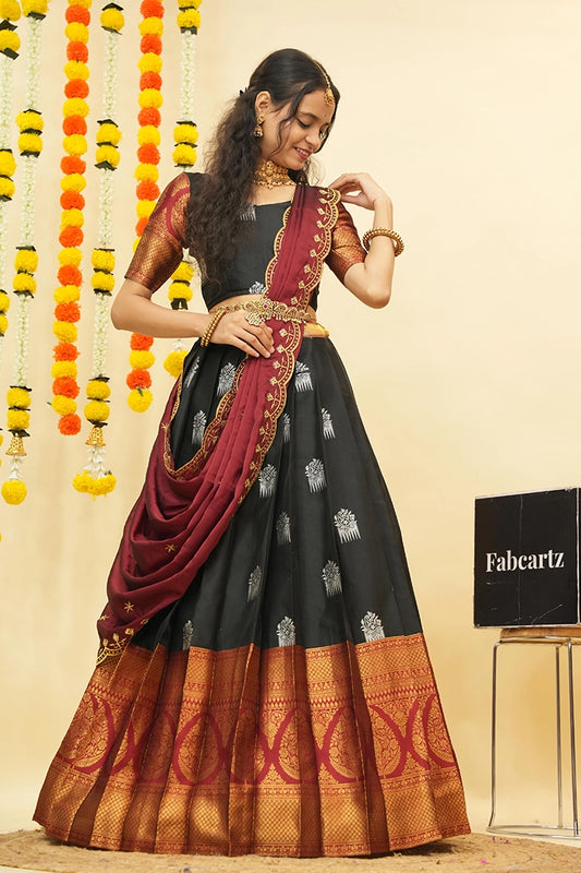 PihuPattu Women's Woven Design zari work Half Saree with Embroidered Blouse and Dupatta