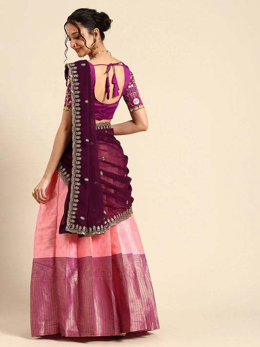 Jaya Women's Woven Design zari work Half Saree with Embroidered Blouse and Dupatta