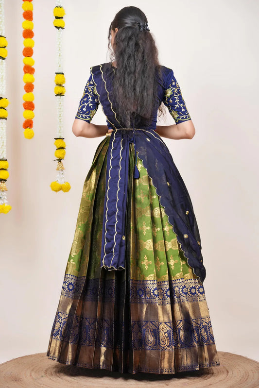 Mamidi Women's Woven Design zari work Half Saree with Embroidered Blouse and Dupatta