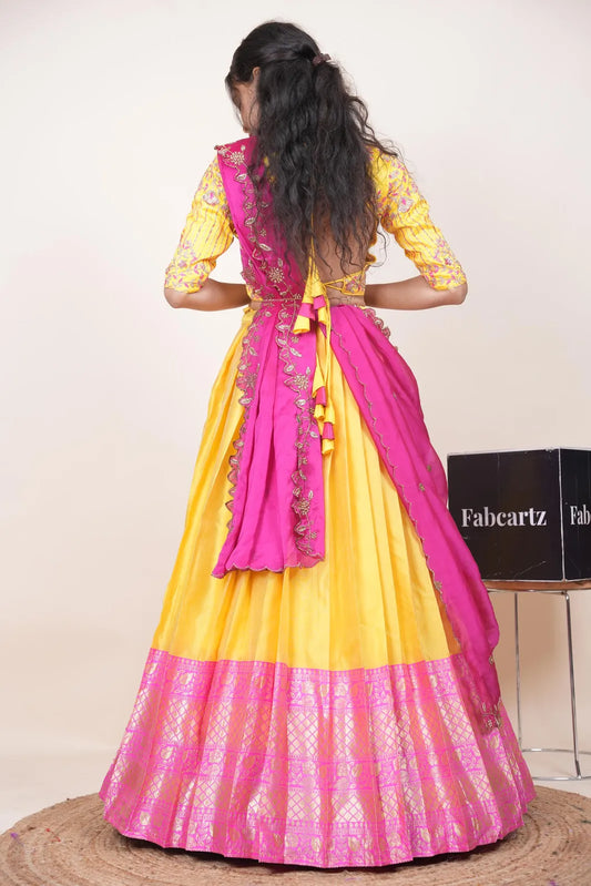 Dhara Women's Woven Design zari work Half Saree with FullyHandwork Blouse and Dupatta