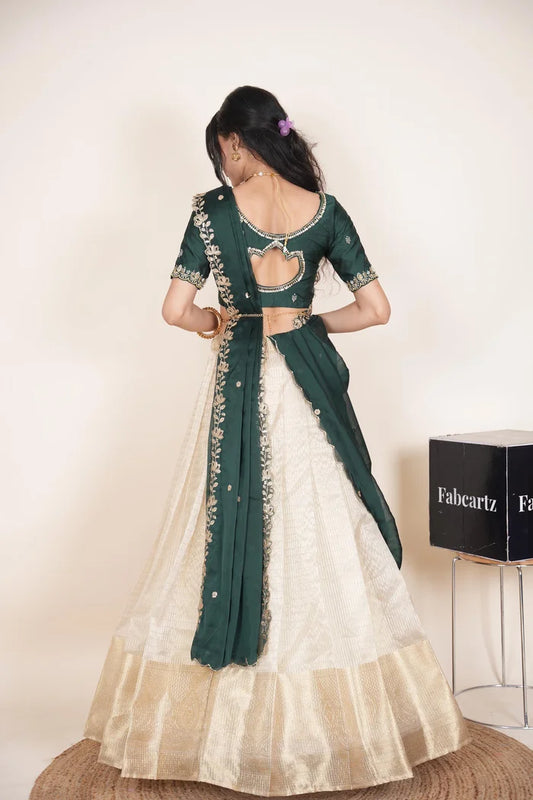 FabcartzBeautiful South Indian Style Half Saree with Embroidery Blouse and Dupatta for Women | Ishita