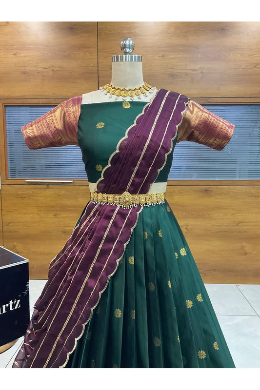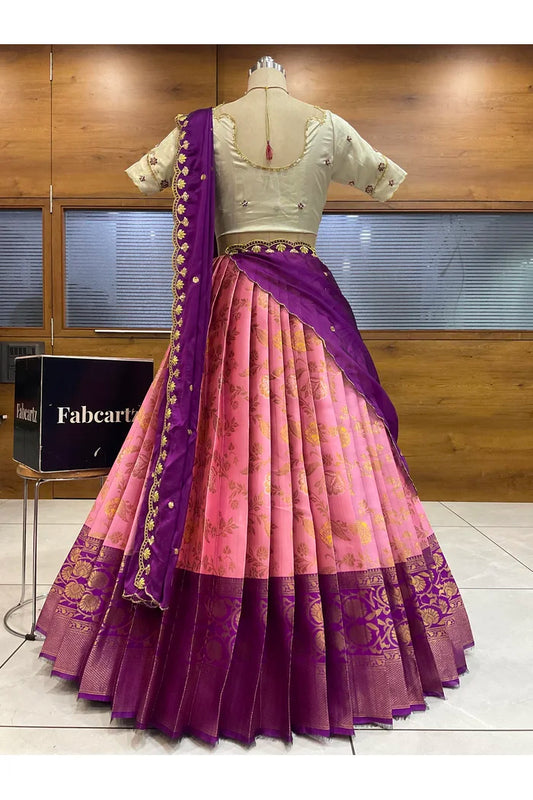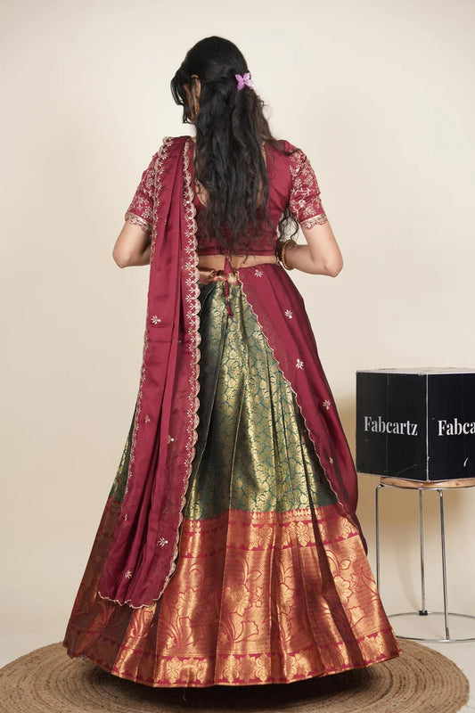 FabcartzBeautiful South Indian Style Half Saree with Embroidery Blouse and Dupatta for Women | Shuturamurg