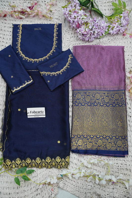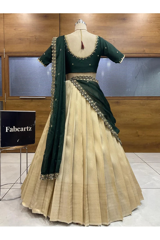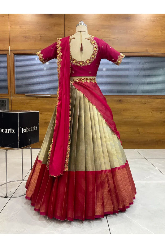 FabcartzBeautiful South Indian Style Half Saree with Embroidery Blouse and Dupatta for Women | Ishita