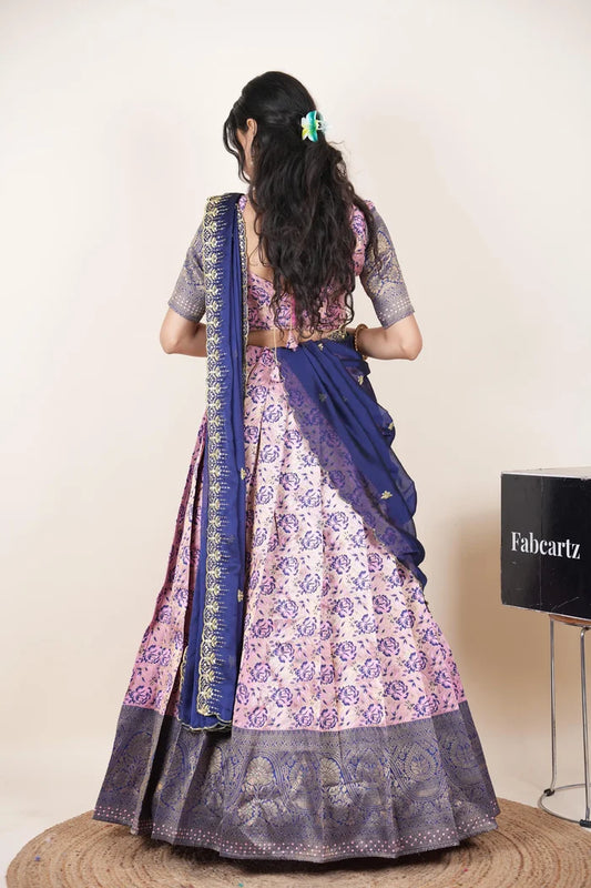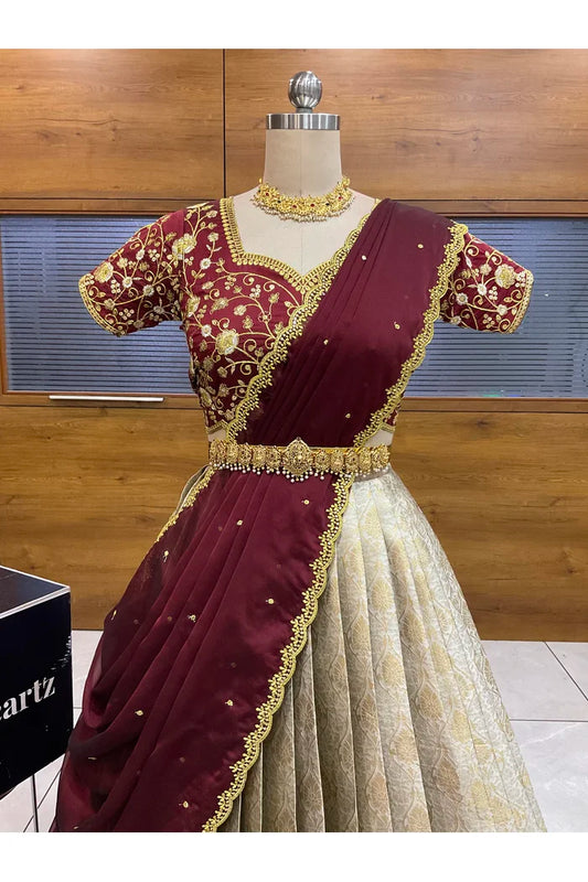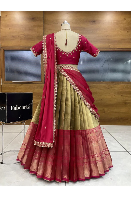 FabcartzBeautiful South Indian Style Half Saree with Embroidery Blouse and Dupatta for Women | Gauri