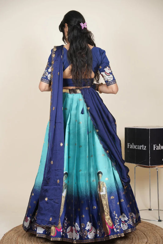 FabcartzBeautiful South Indian Style Half Saree with Embroidery Blouse and Dupatta for Women | Kalyani