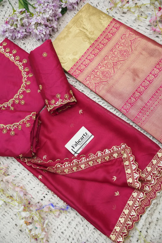 FabcartzBeautiful South Indian Style Half Saree with Hand Work Blouse and Dupatta for Women | BiliPatra