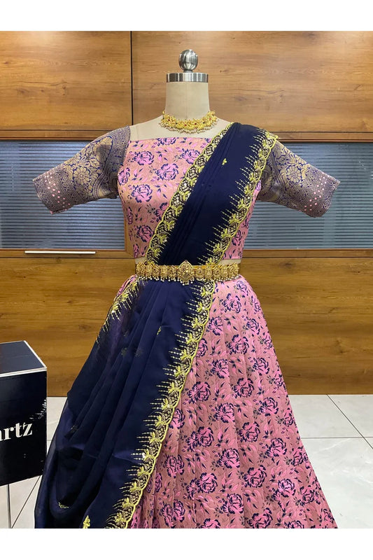 Beautiful South Indian Style Half Saree with Embroidery Blouse and Dupatta for Women | Zeel