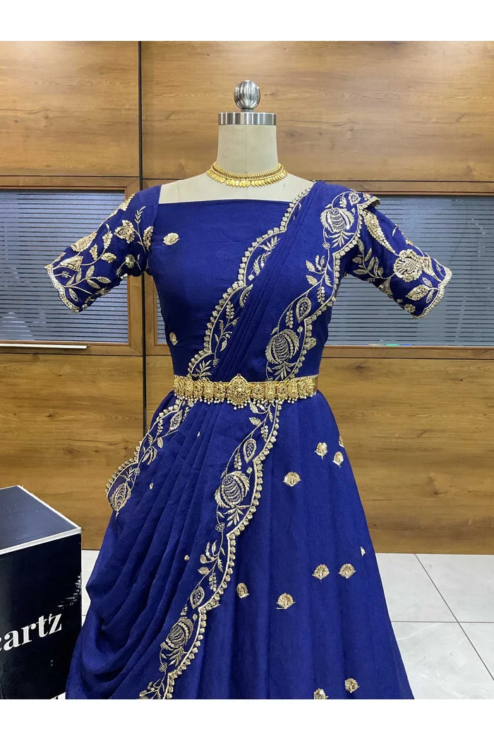 Crafted from Taffeta Satin (Litchi Silk) with intricate Zari work, offering a rich and elegant look.