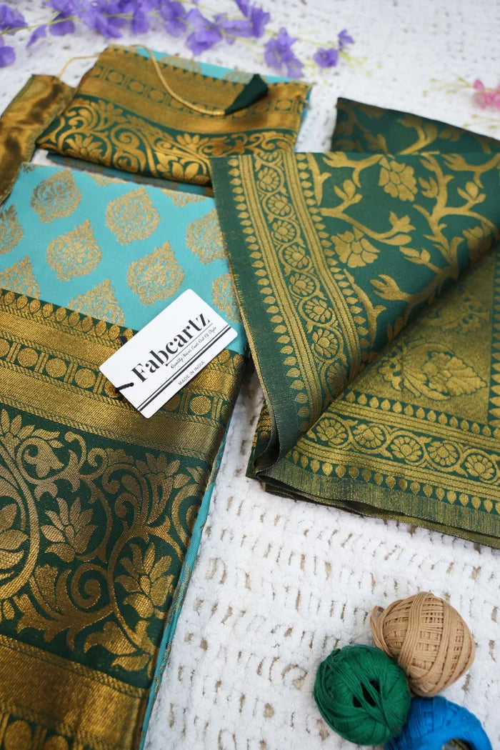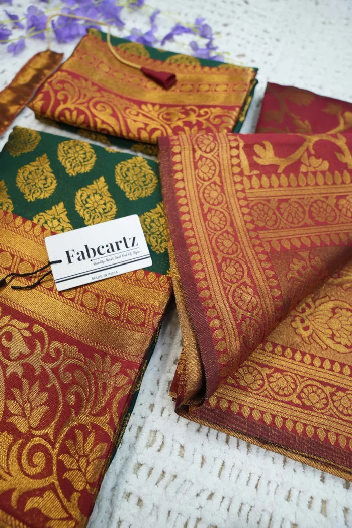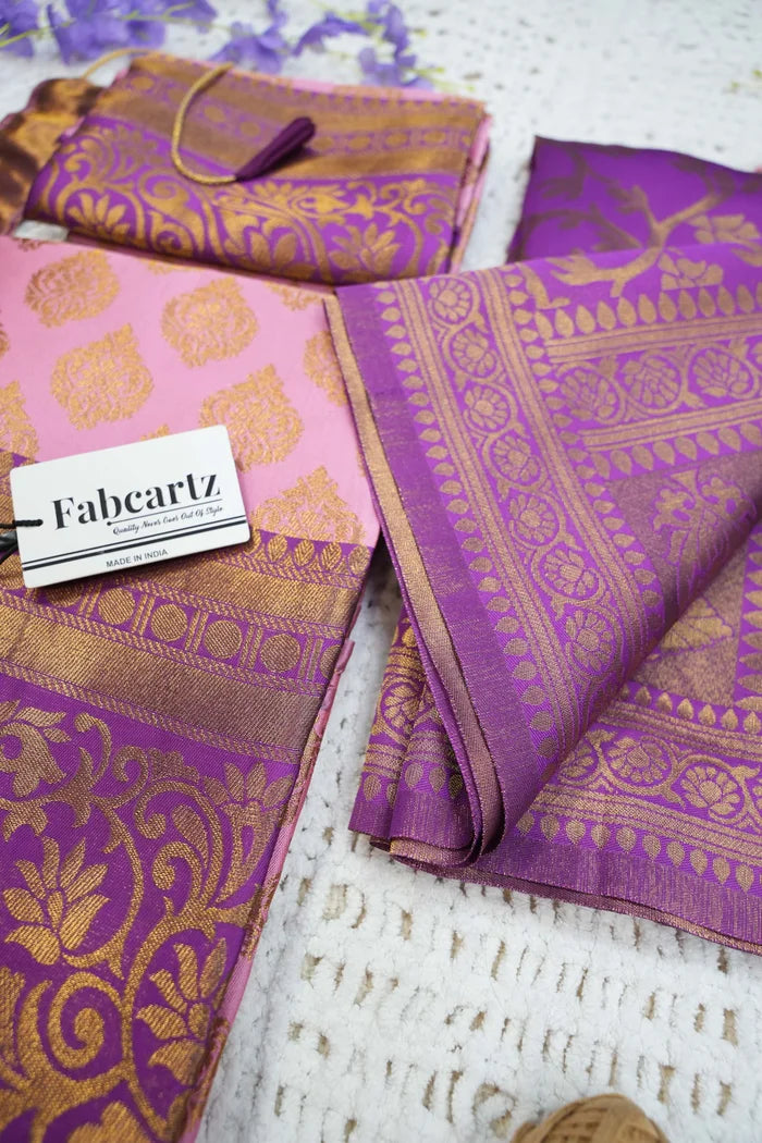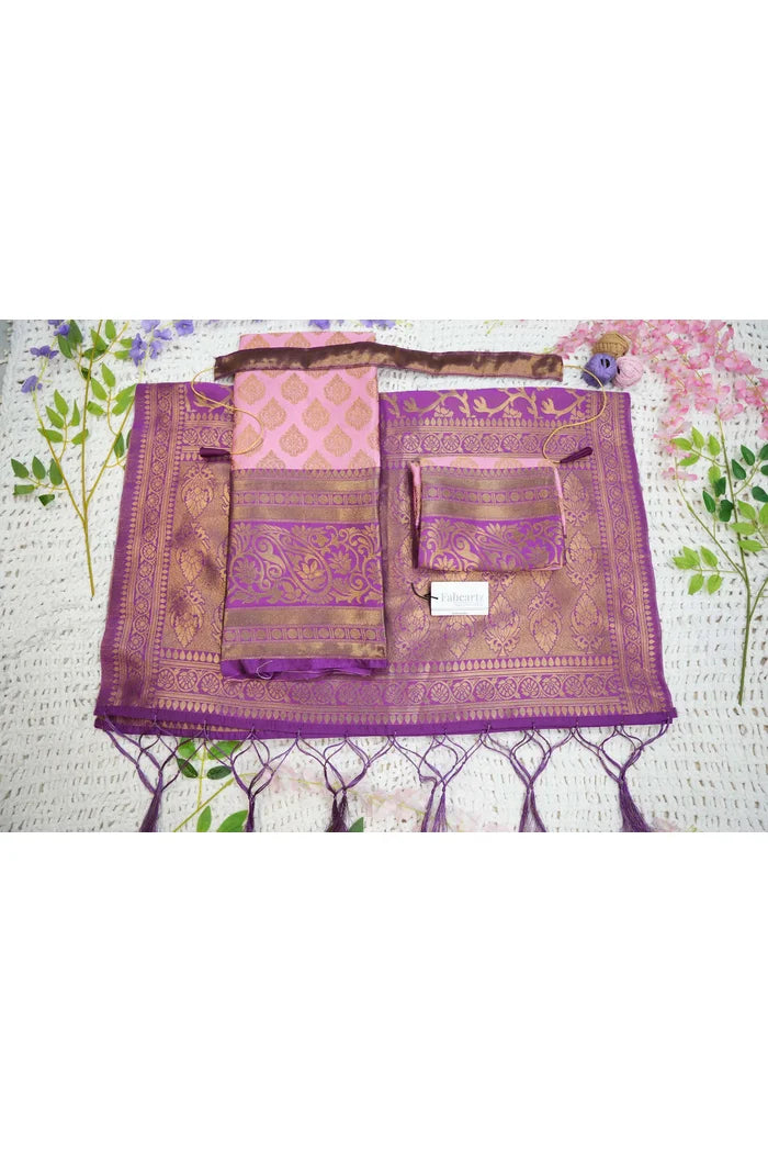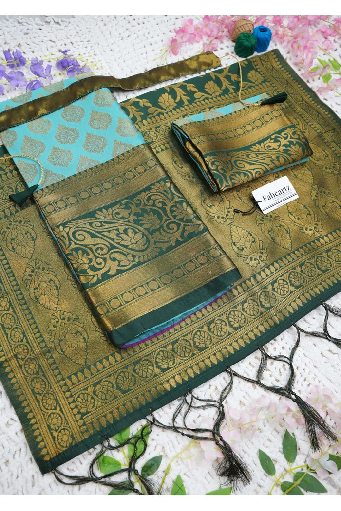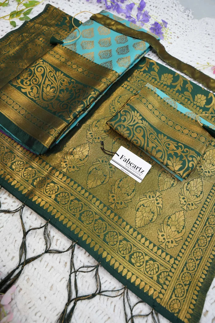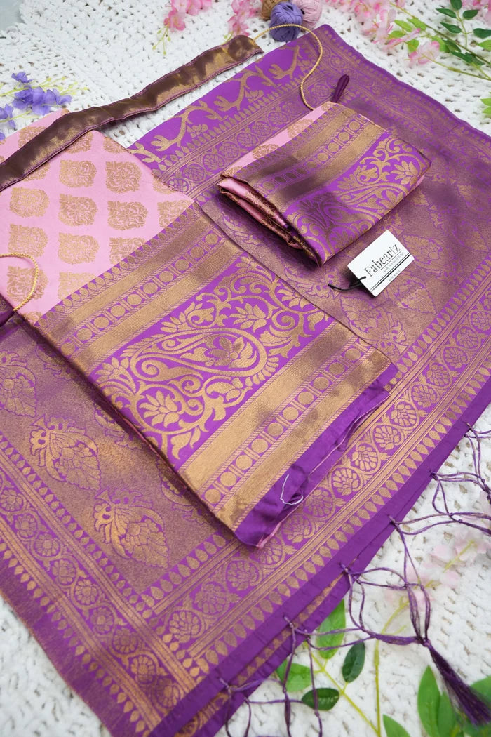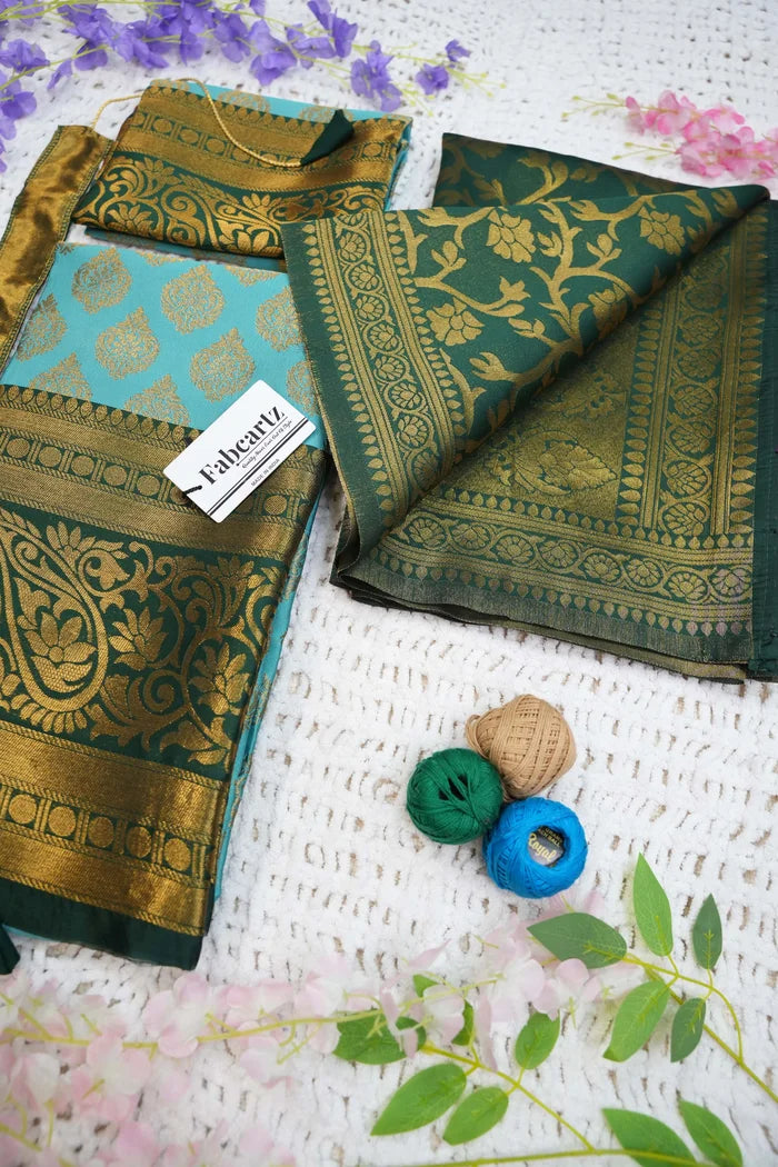 Crafted from Taffeta Satin (Litchi Silk) with intricate Zari work, offering a rich and elegant look.