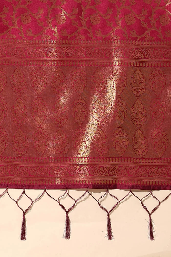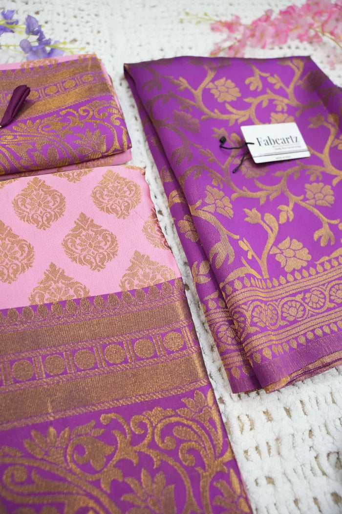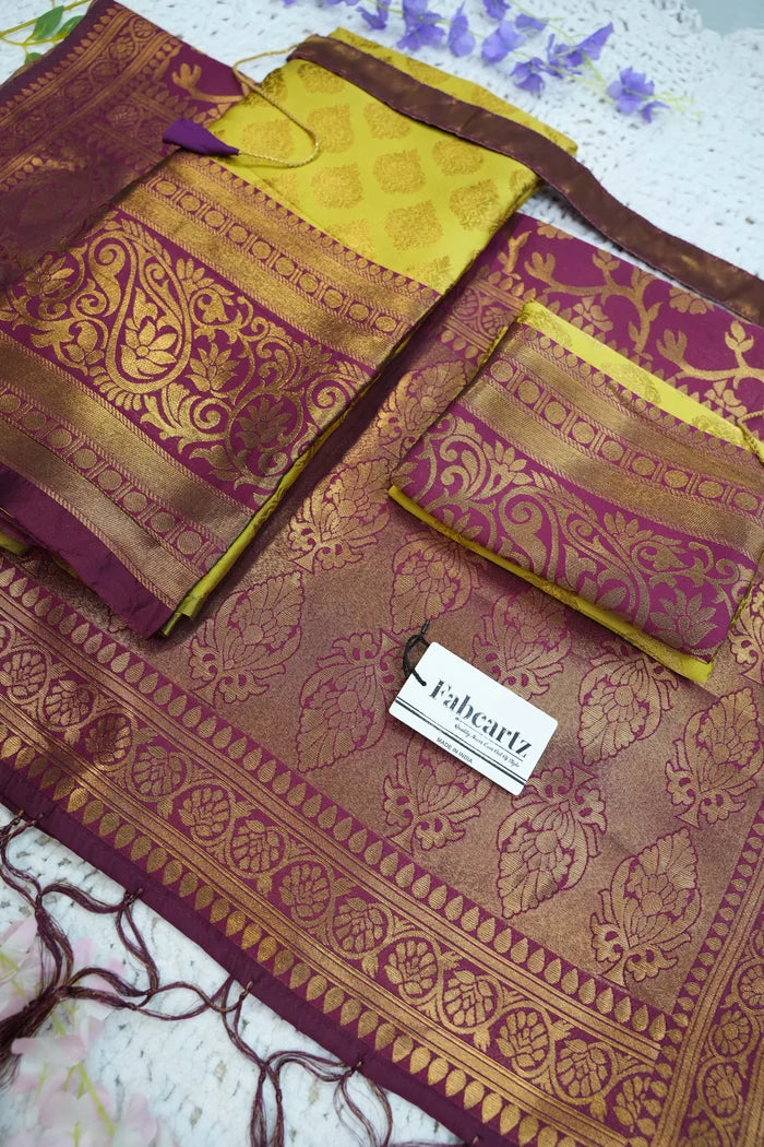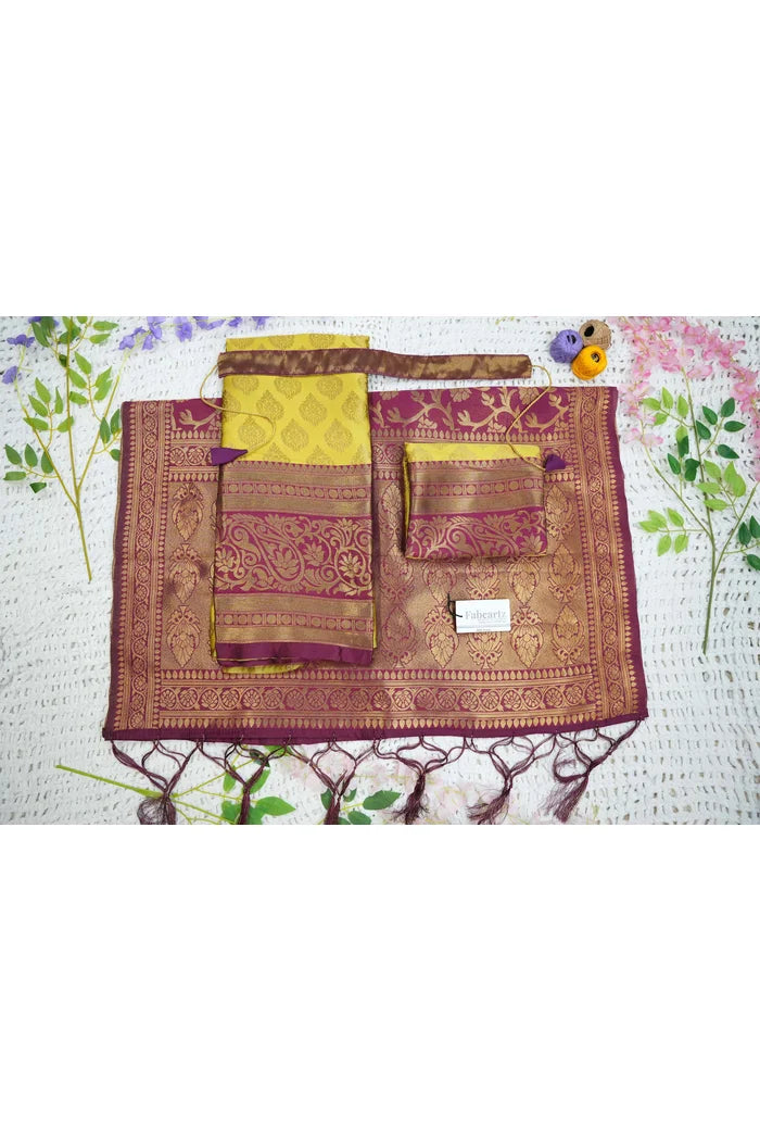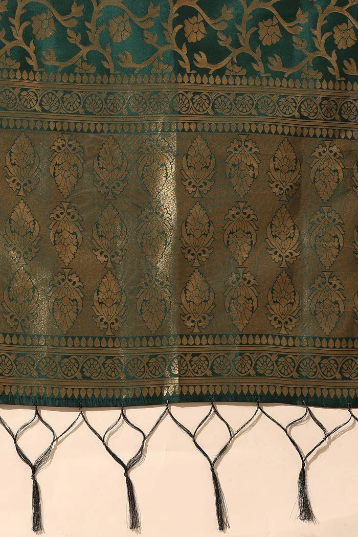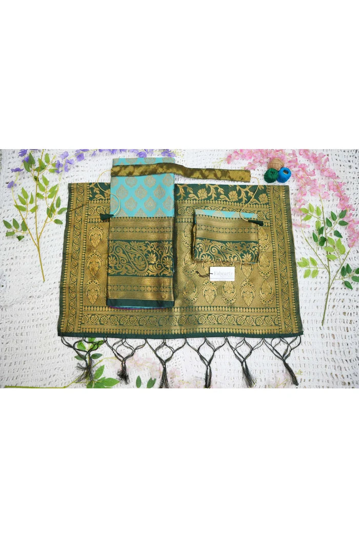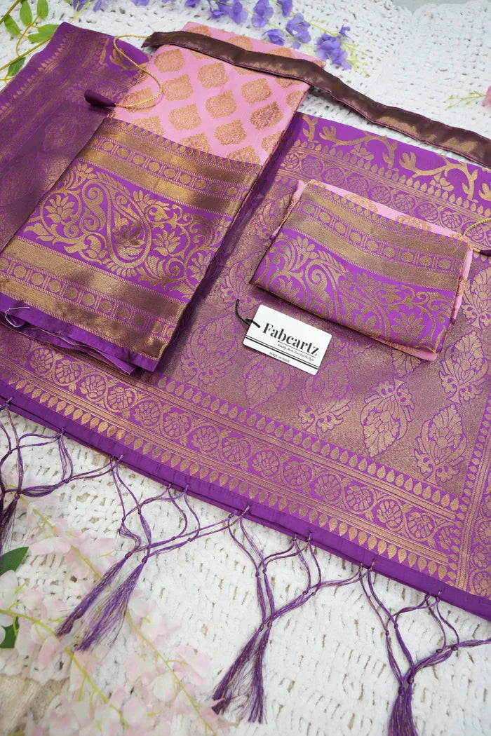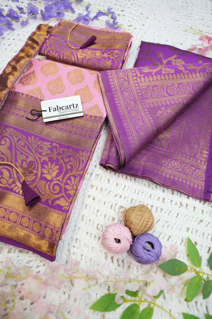Crafted from Taffeta Satin (Litchi Silk) with intricate Zari work, offering a rich and elegant look.