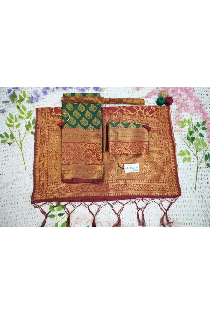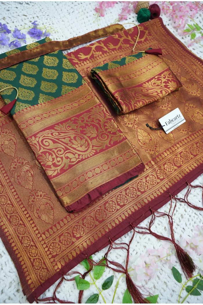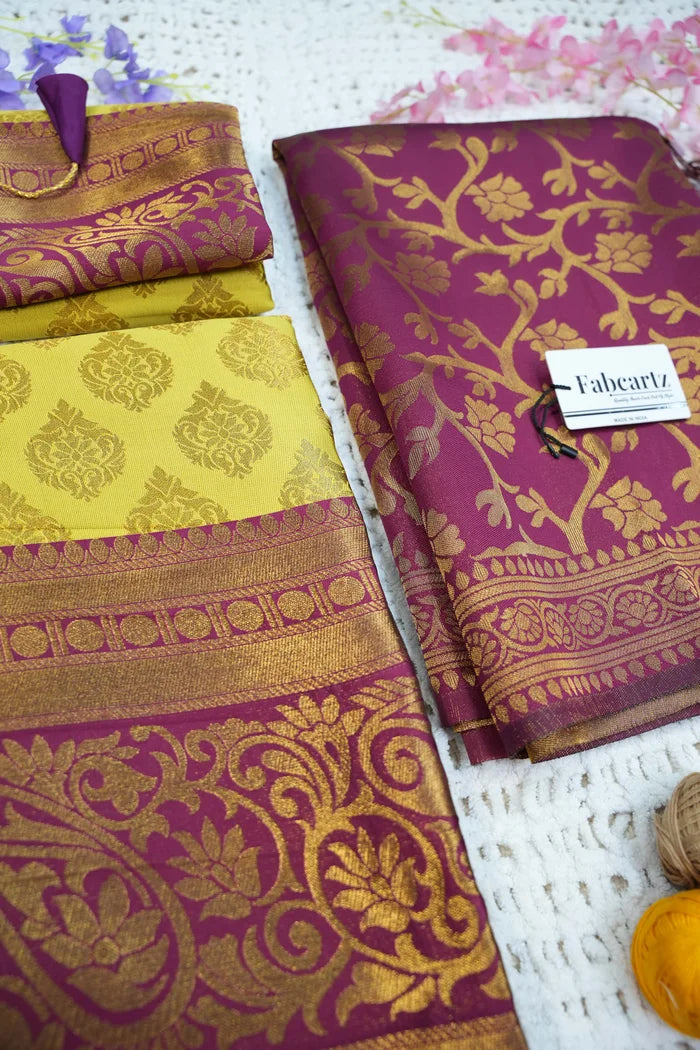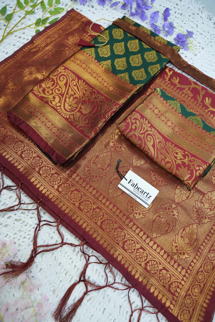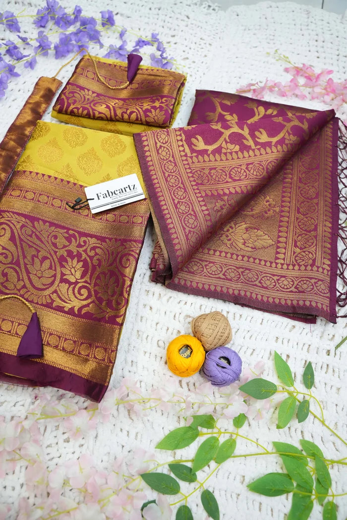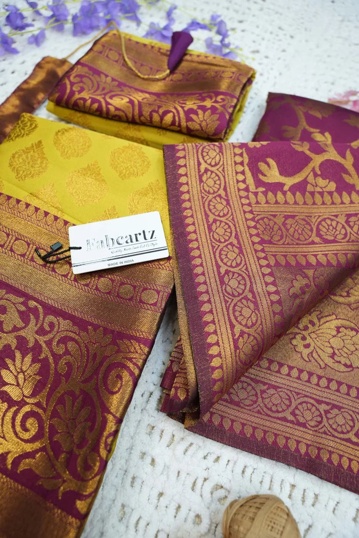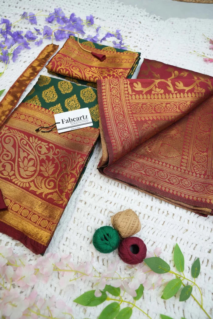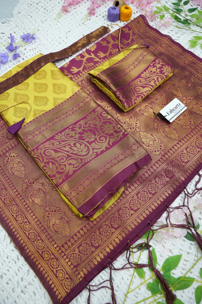 Crafted from Taffeta Satin (Litchi Silk) with intricate Zari work, offering a rich and elegant look.