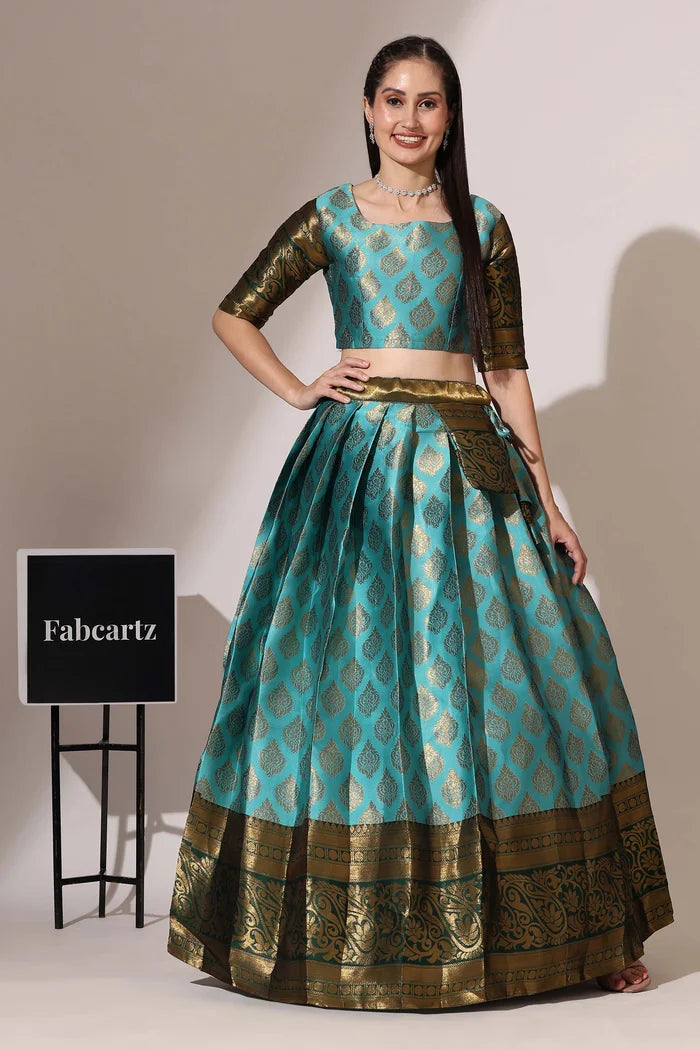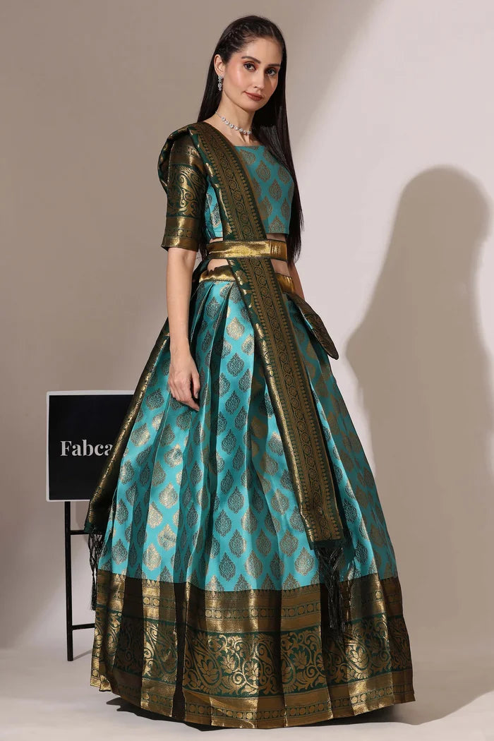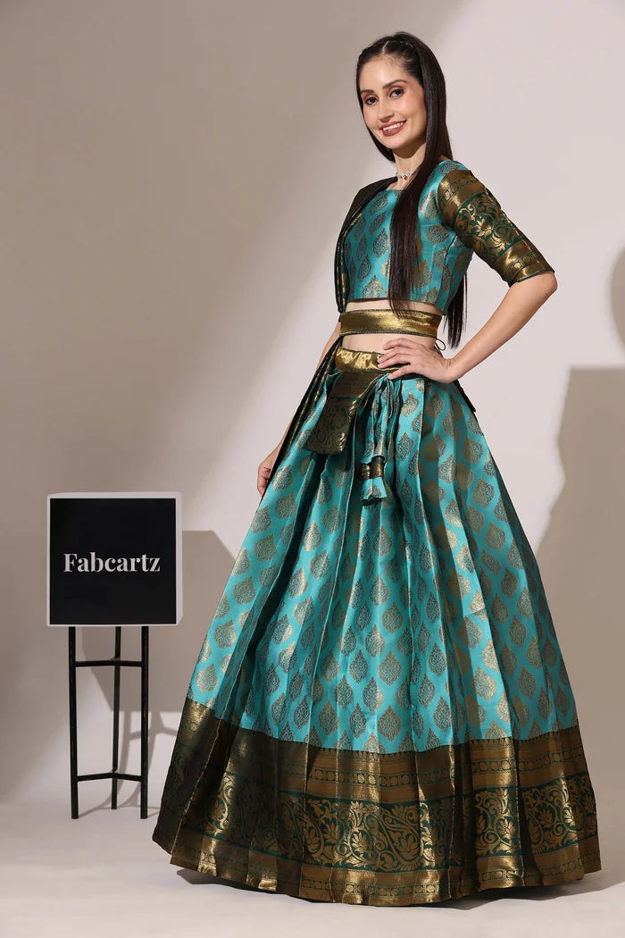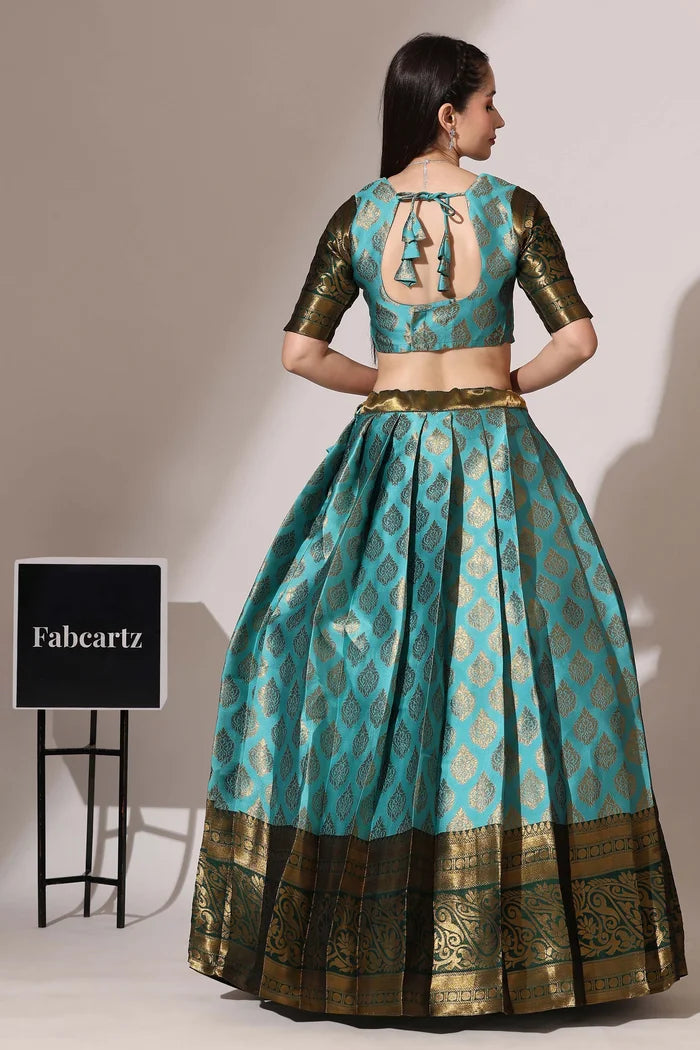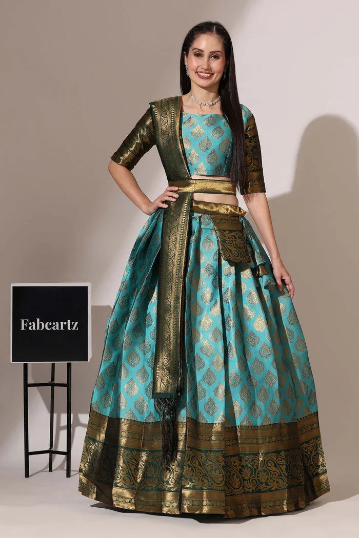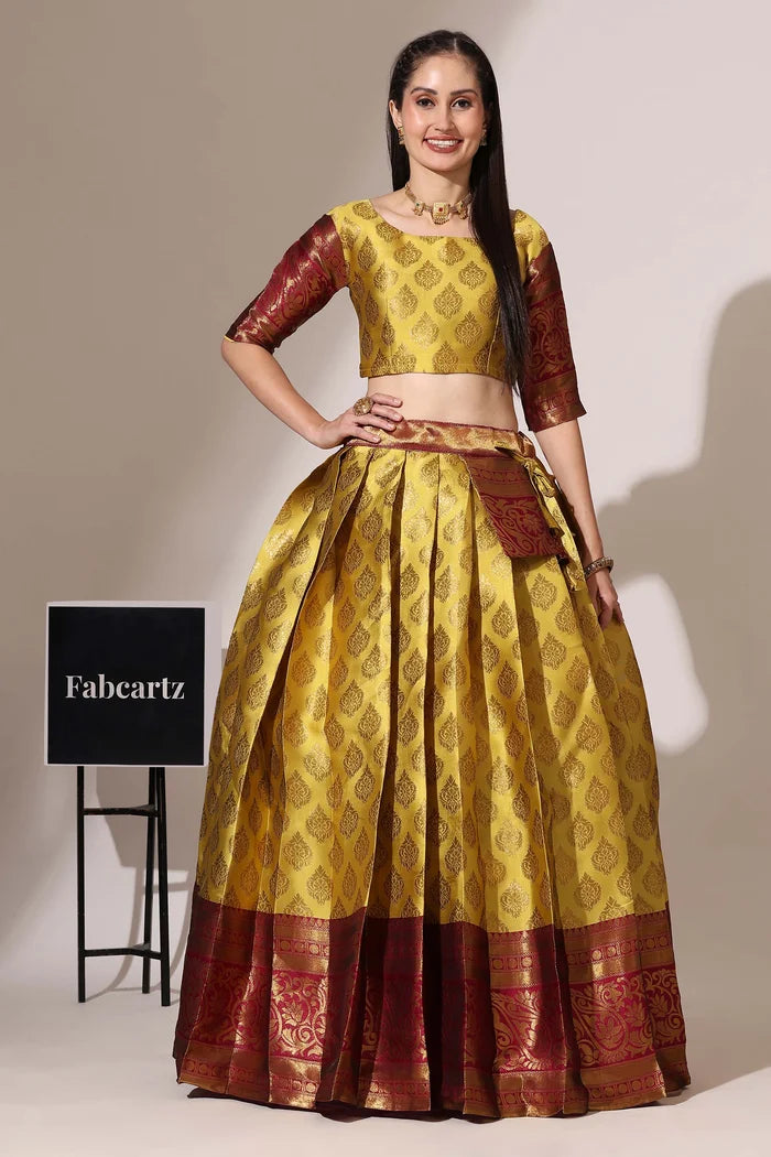 (Adhira) South Indian Festival Traditional Half Saree with Embroidered Blouse & Dupatta