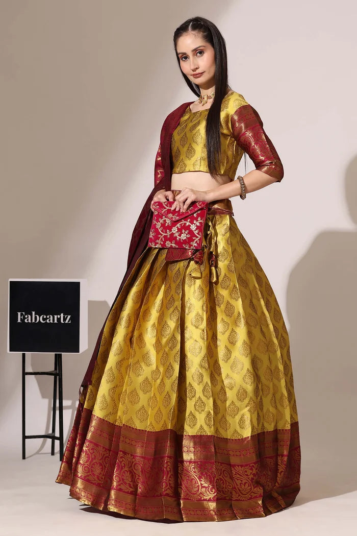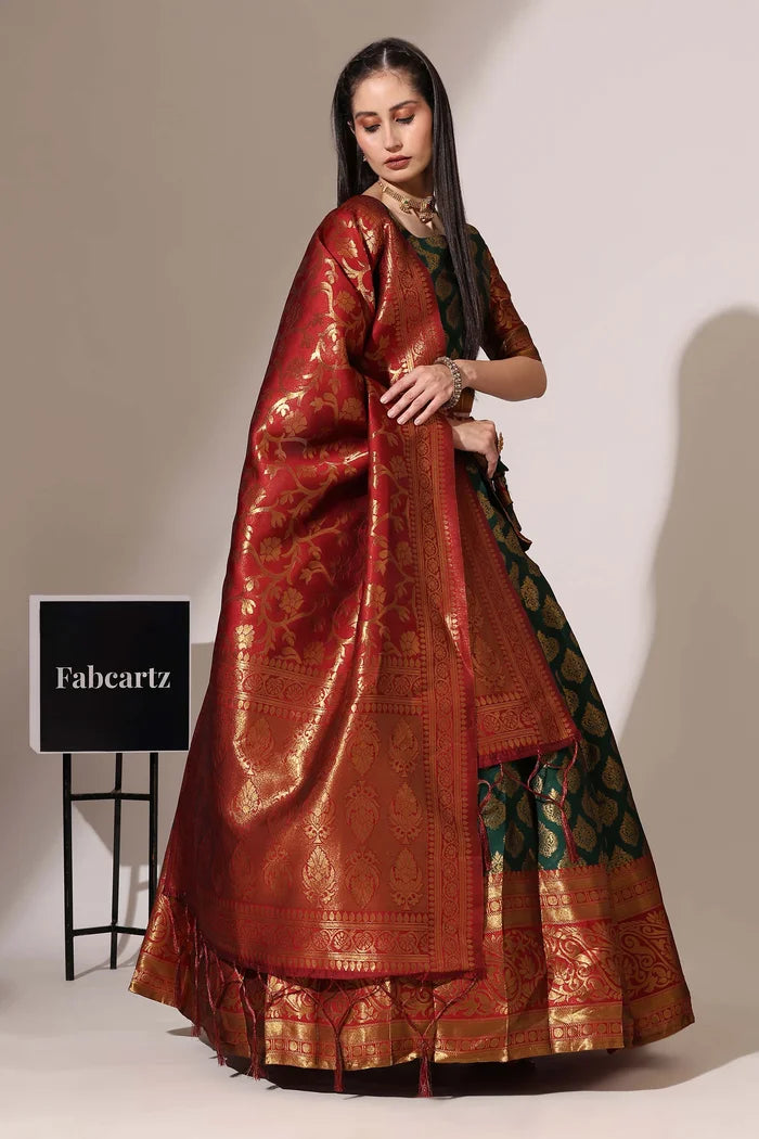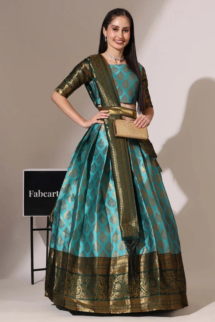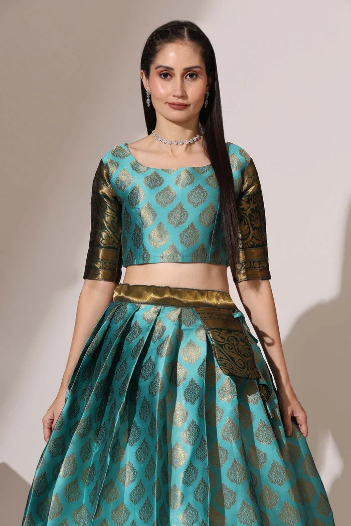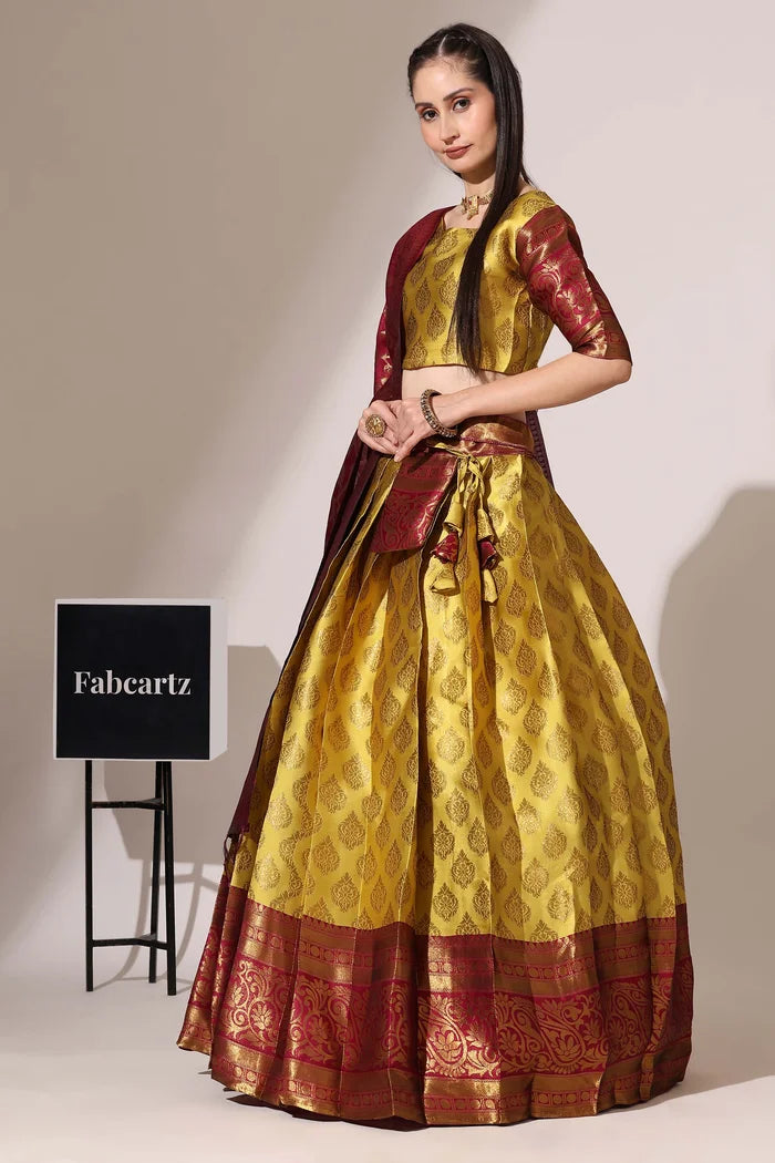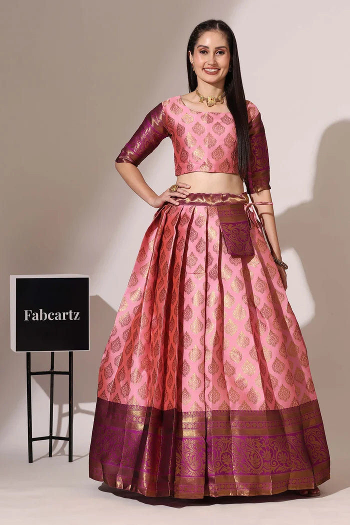 (Adhira) South Indian Festival Traditional Half Saree with Embroidered Blouse & Dupatta