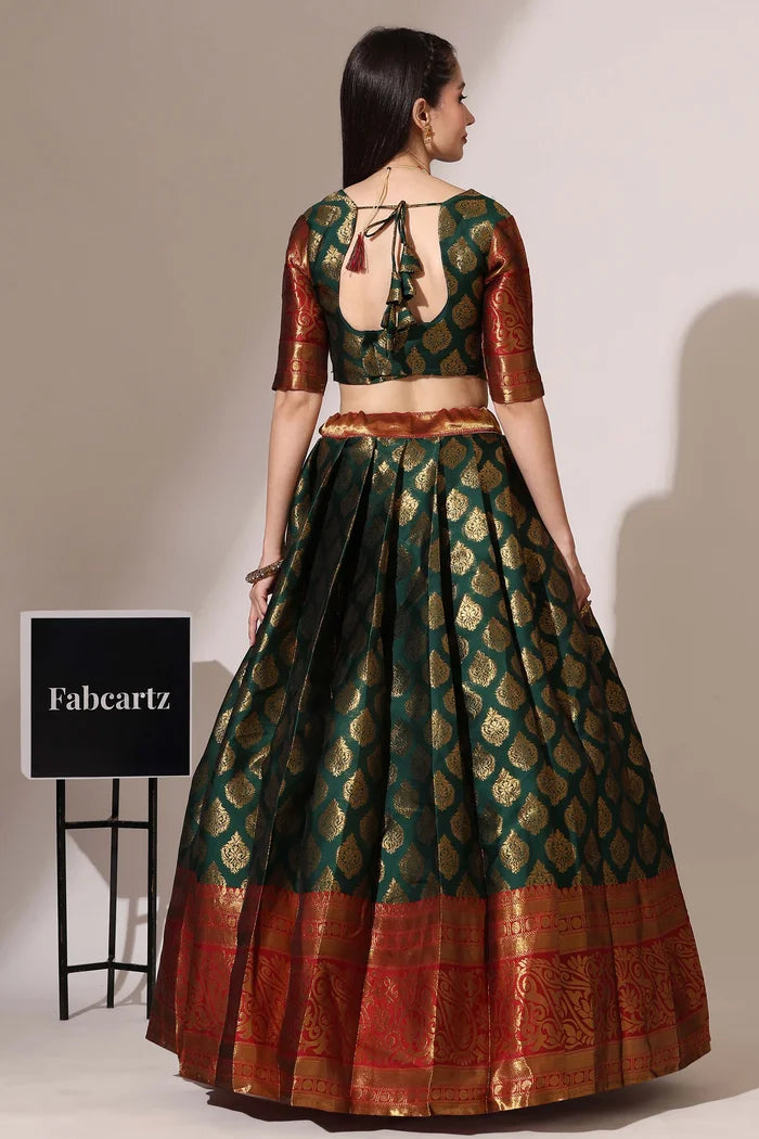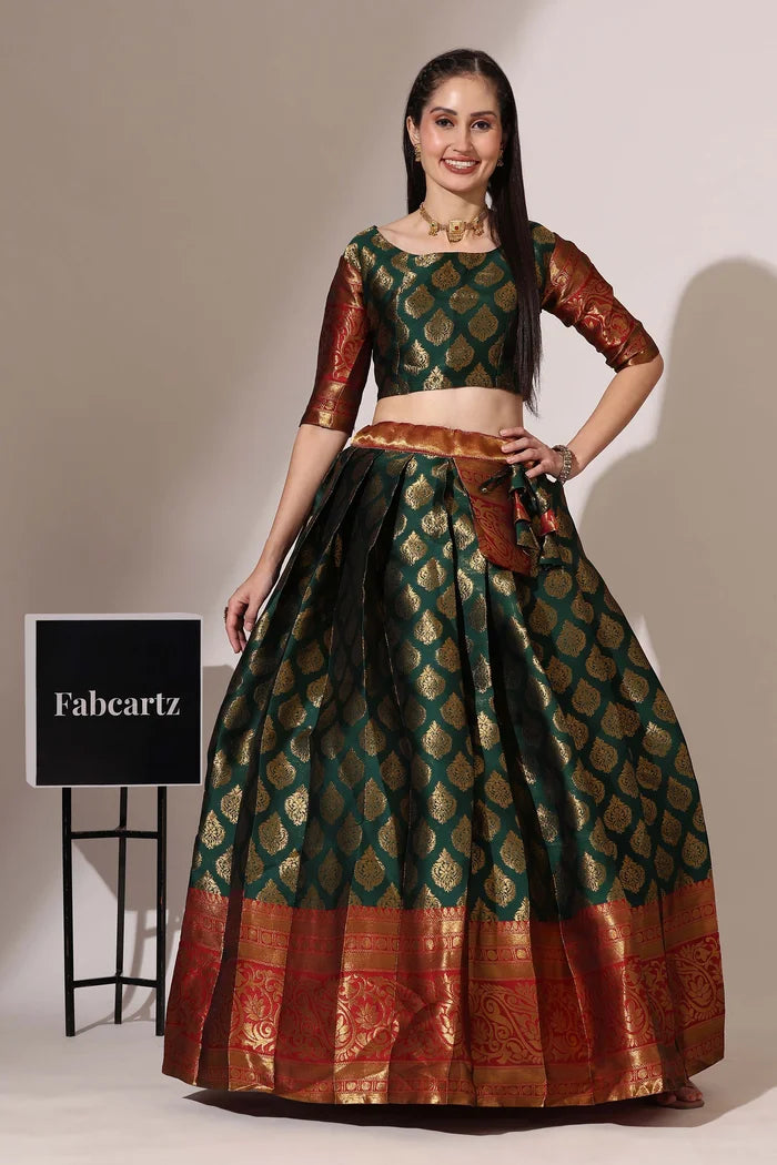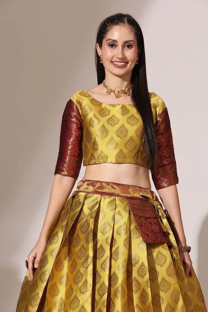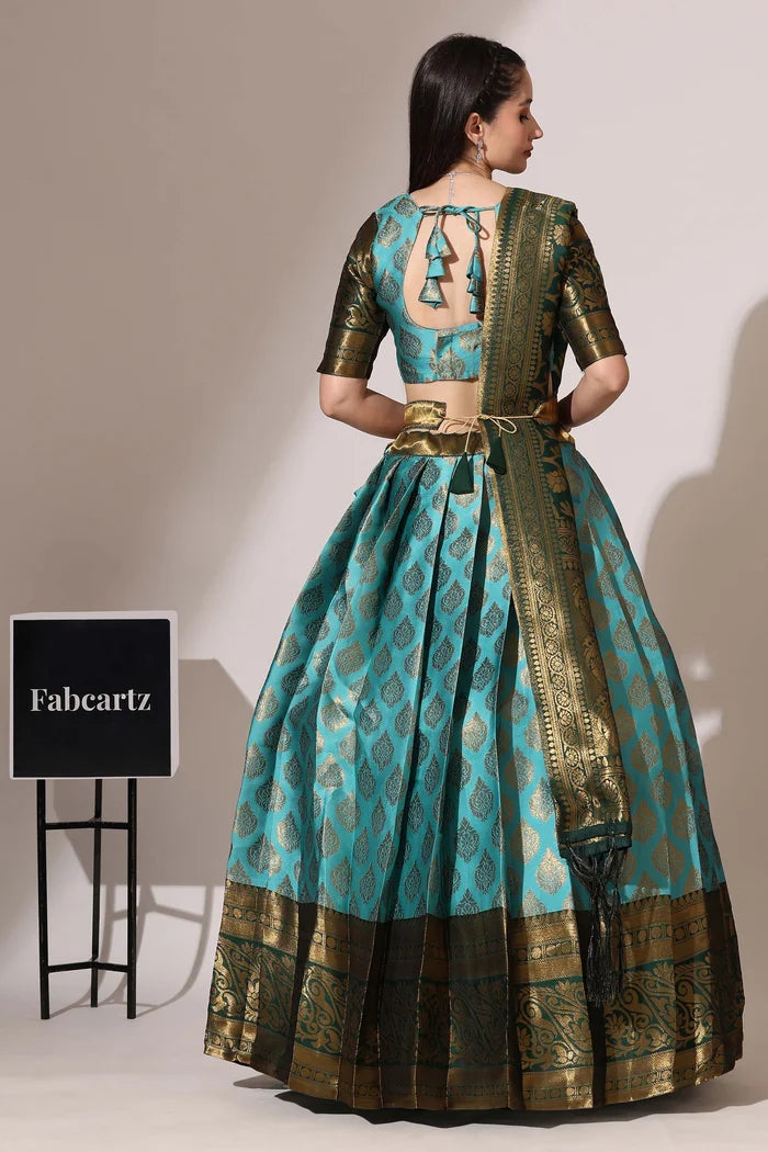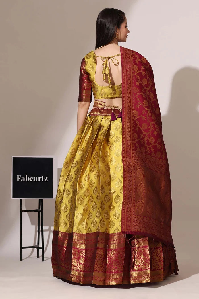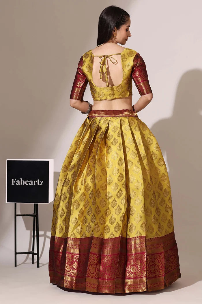 (ButtaBomma) South Indian Festival Traditional Half Saree with Embroidered Blouse & Dupatta