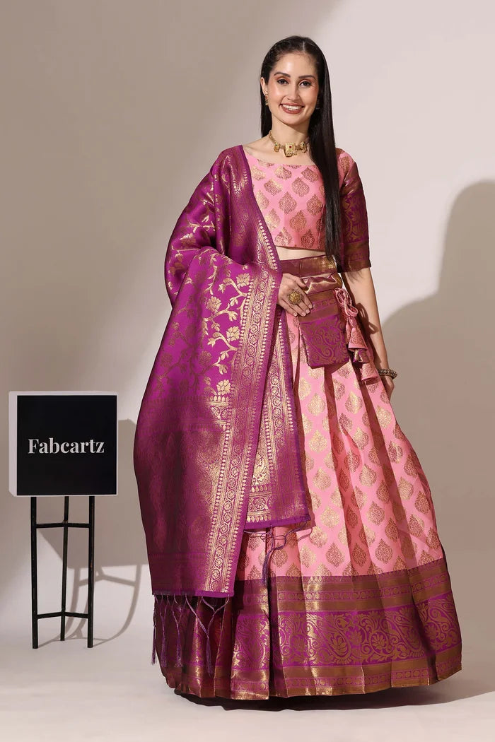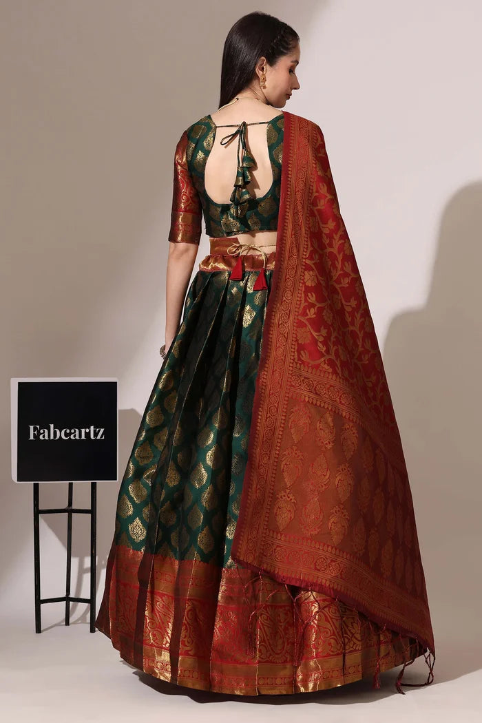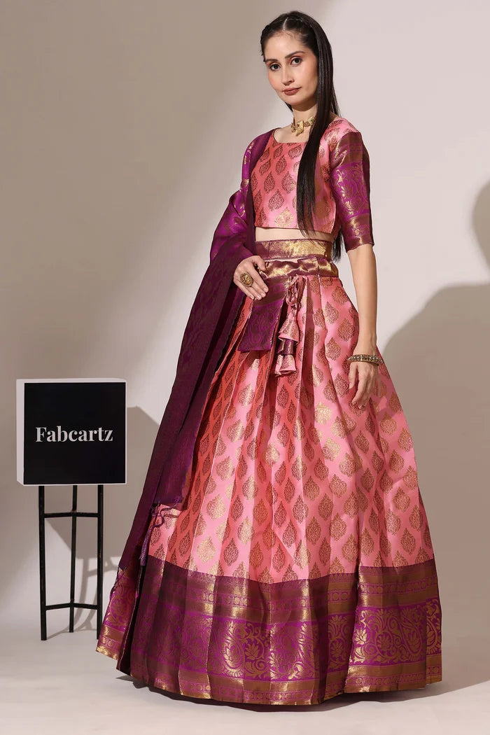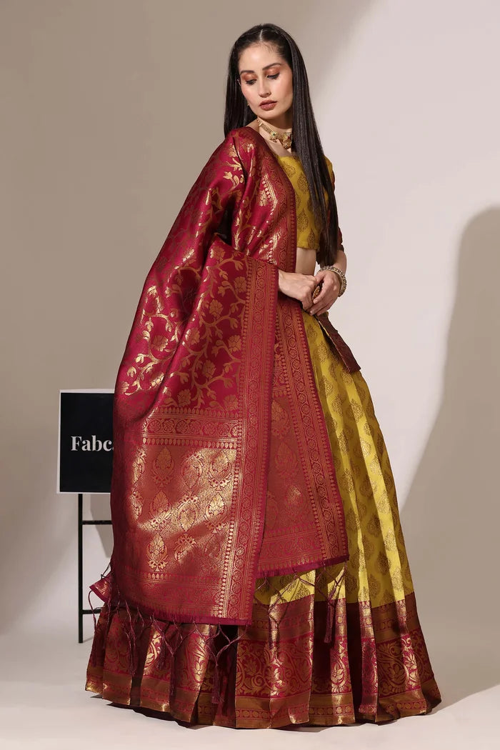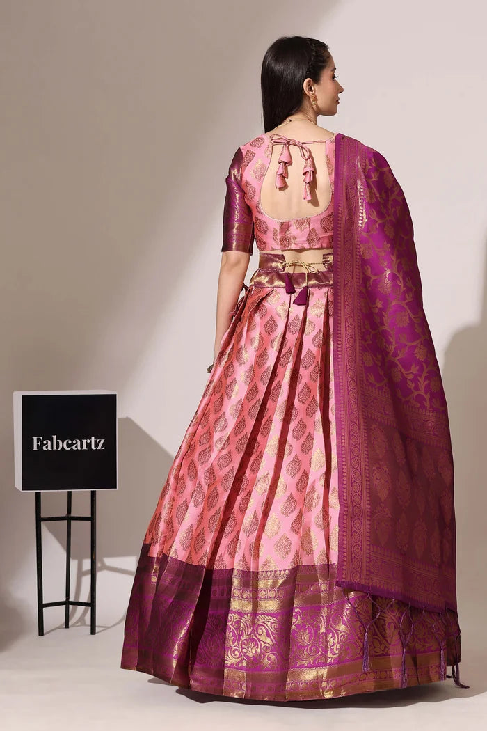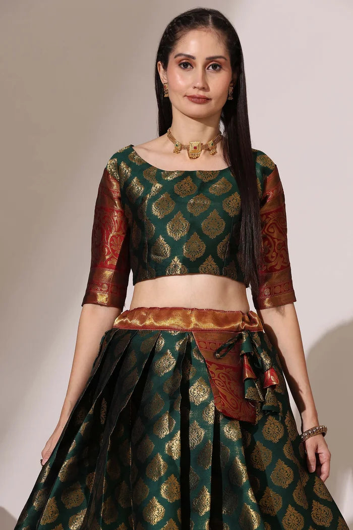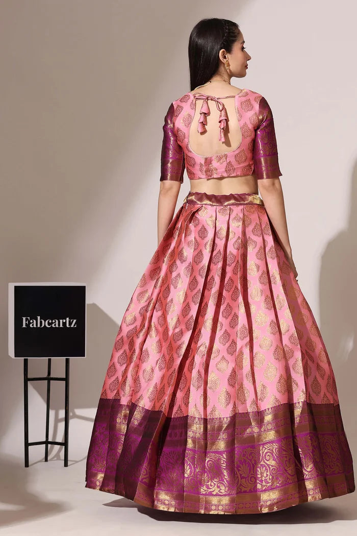 (ButtaBomma) South Indian Festival Traditional Half Saree with Embroidered Blouse & Dupatta