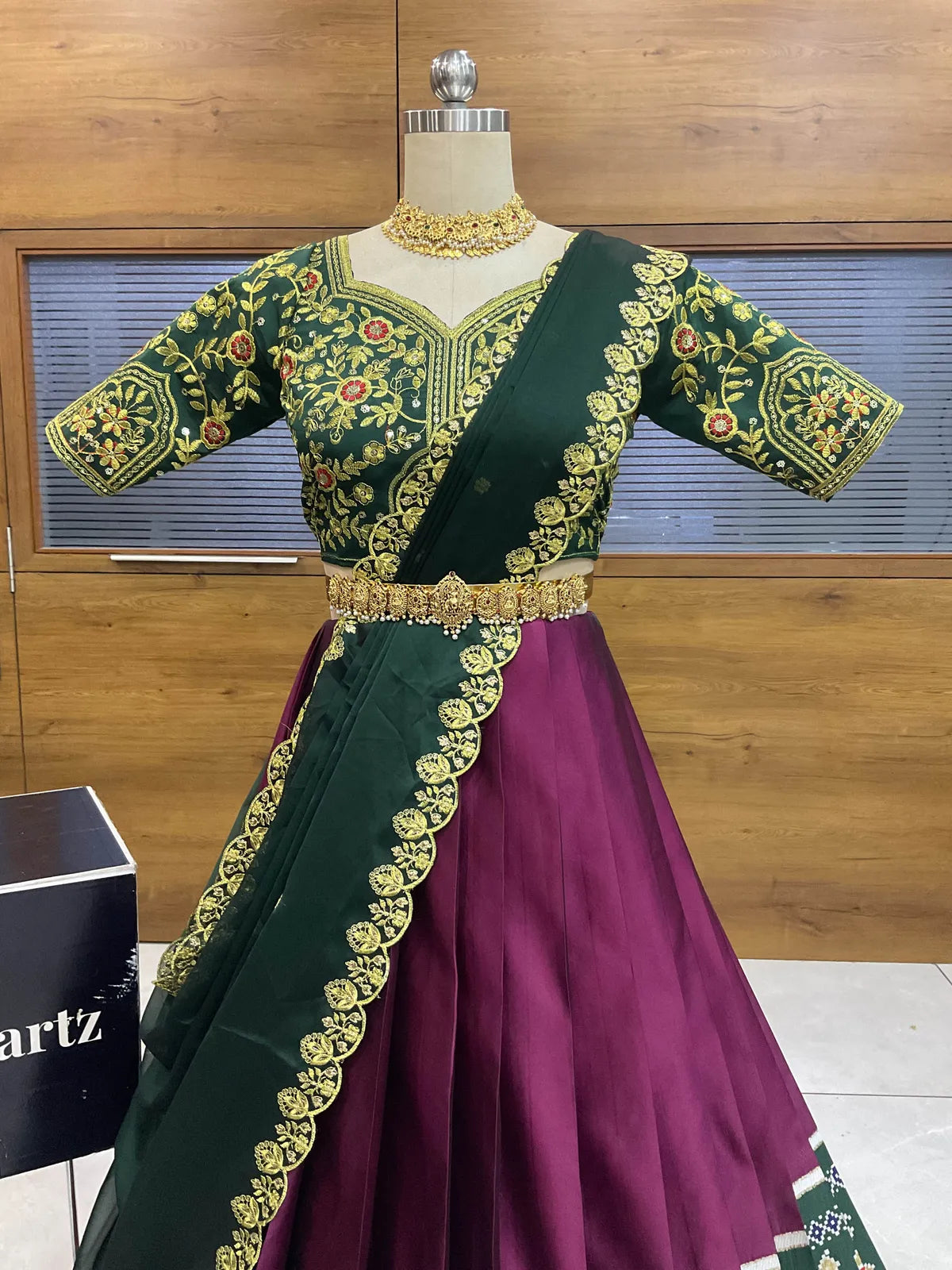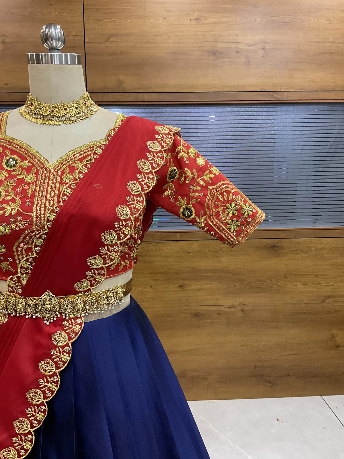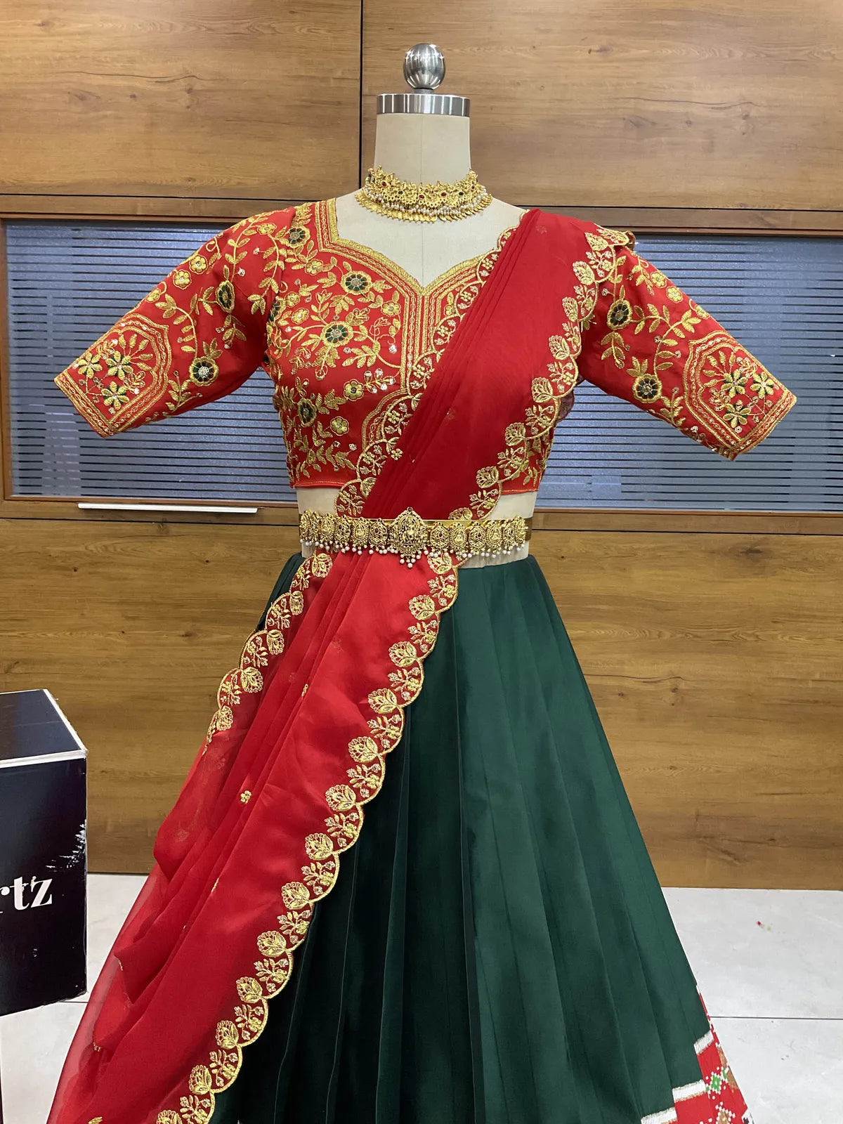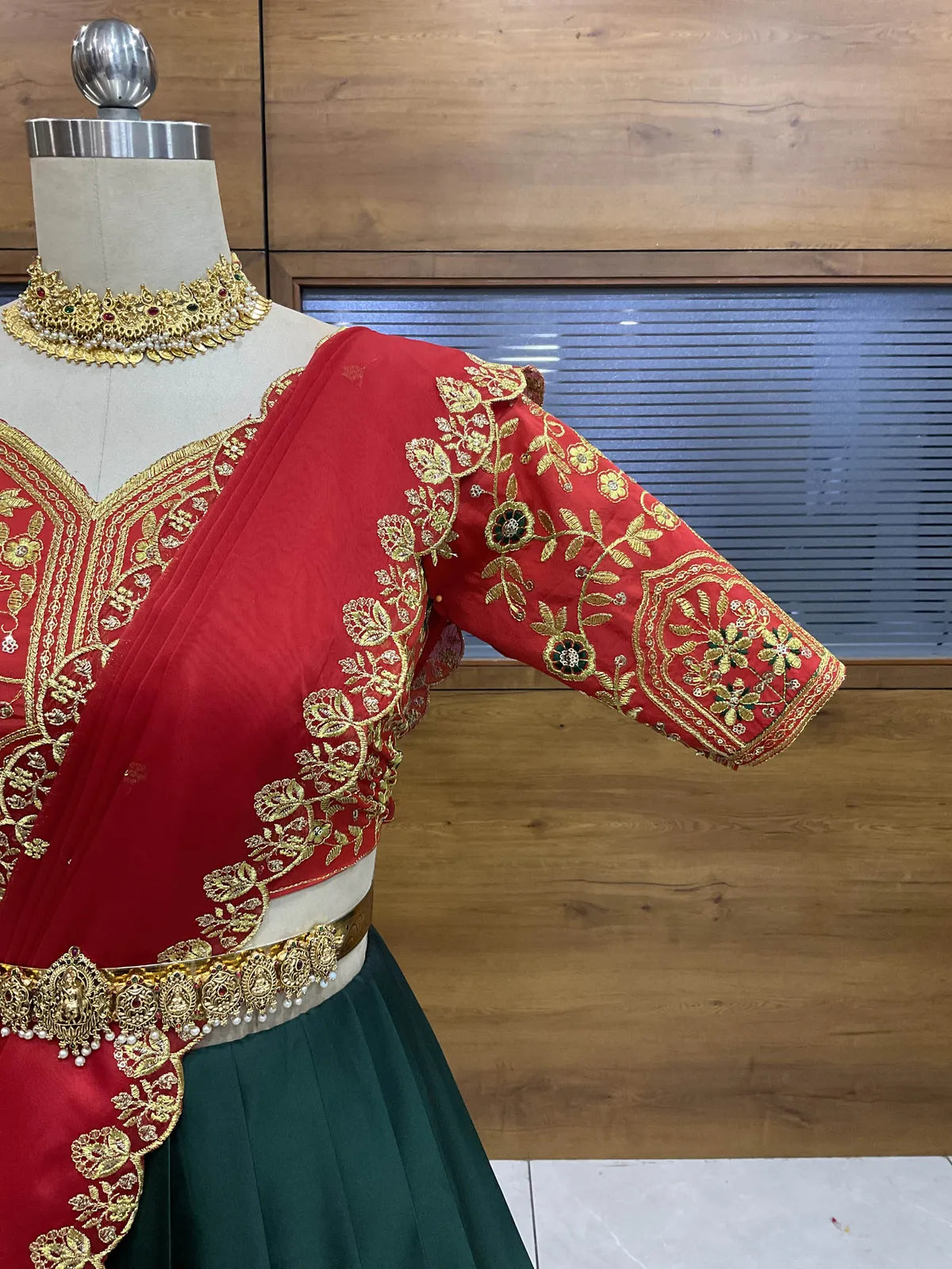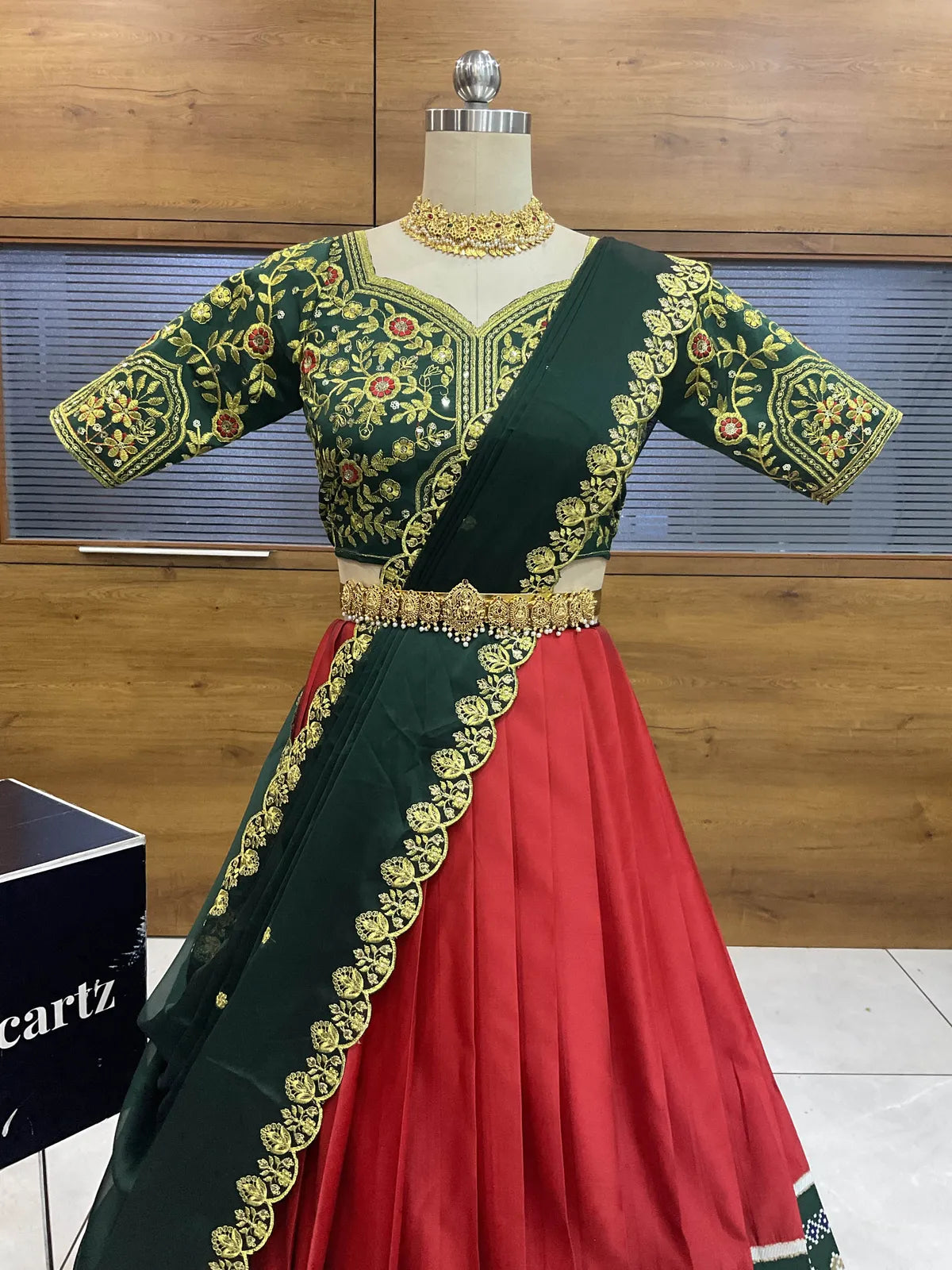 (ButtaBomma) South Indian Festival Traditional Half Saree with Embroidered Blouse & Dupatta
