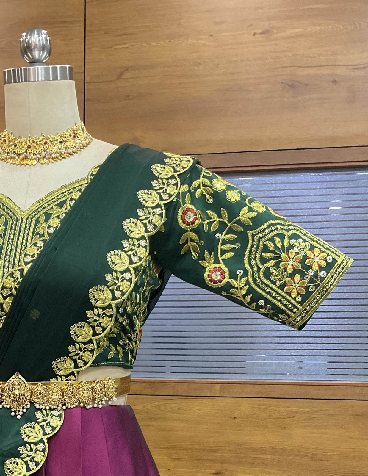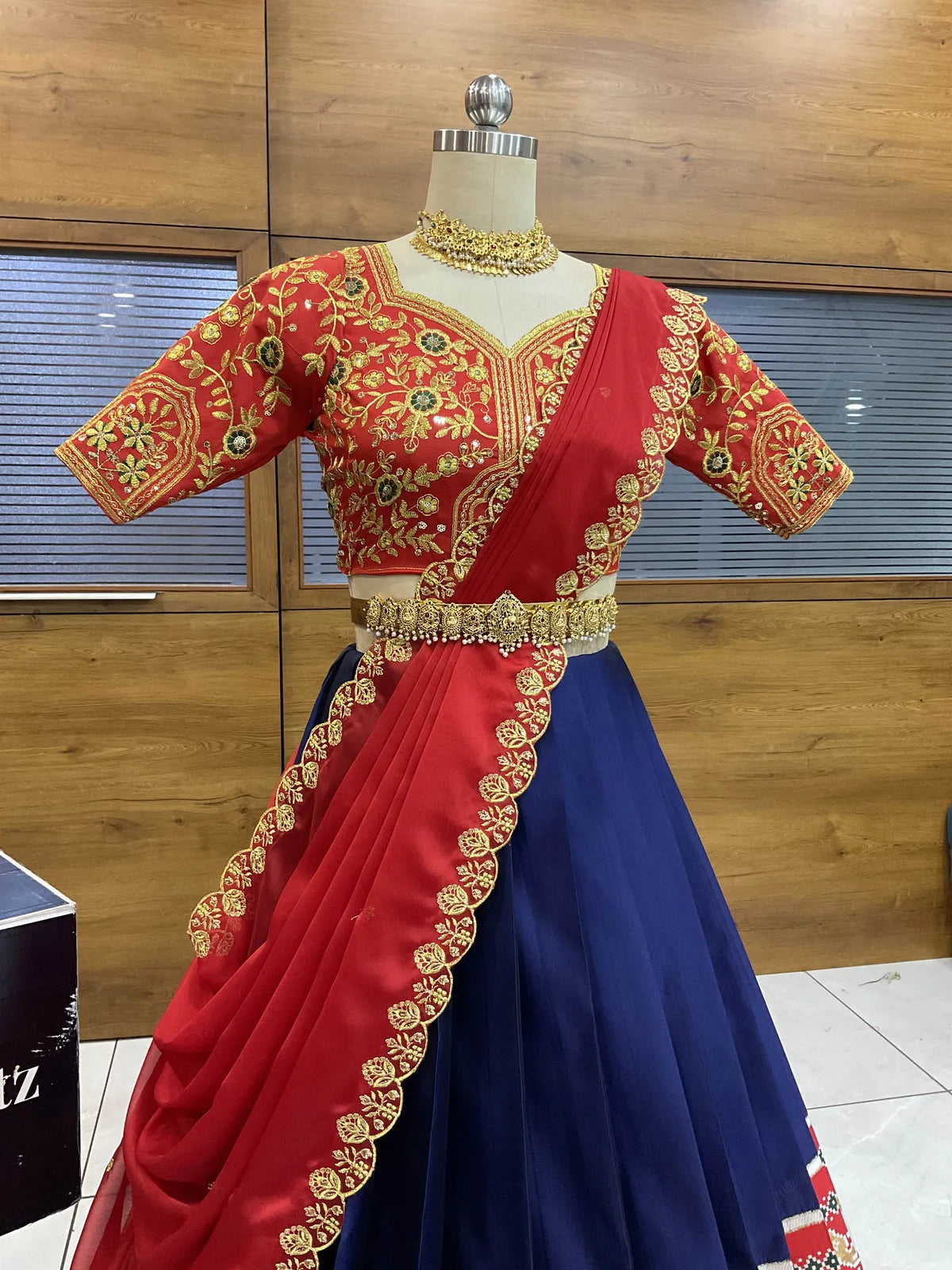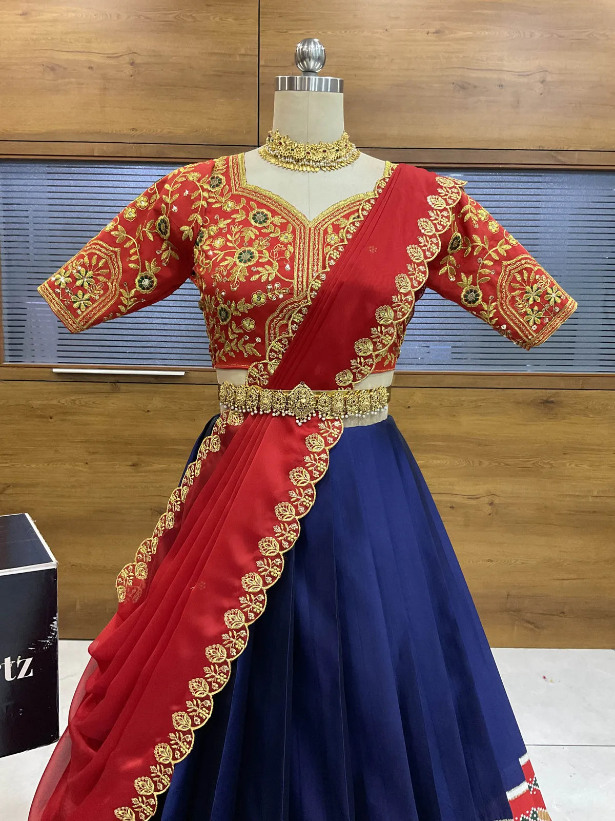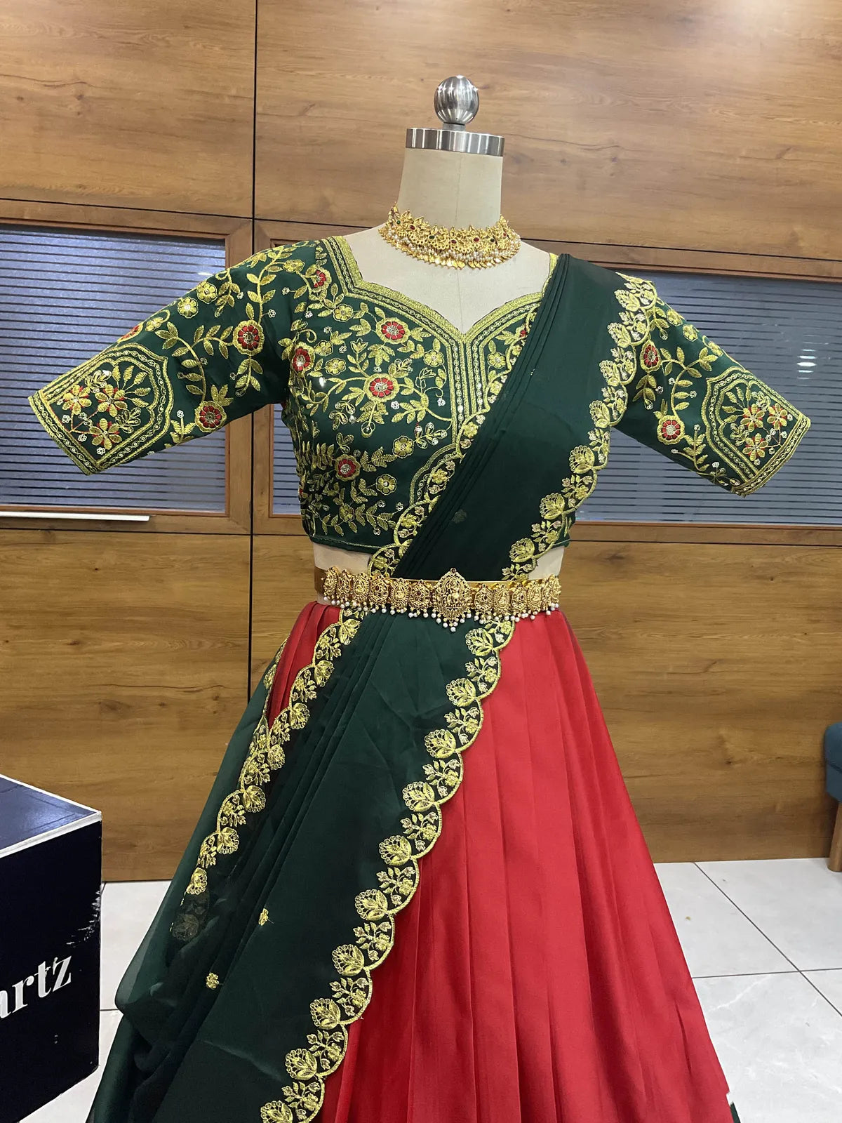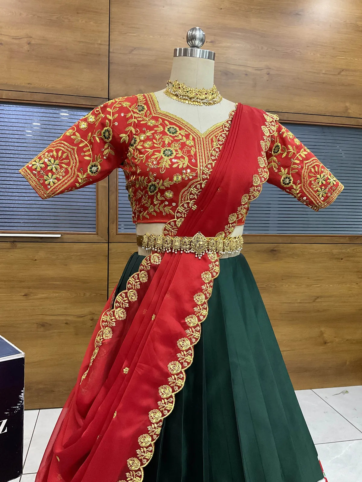 (ButtaBomma) South Indian Festival Traditional Half Saree with Embroidered Blouse & Dupatta