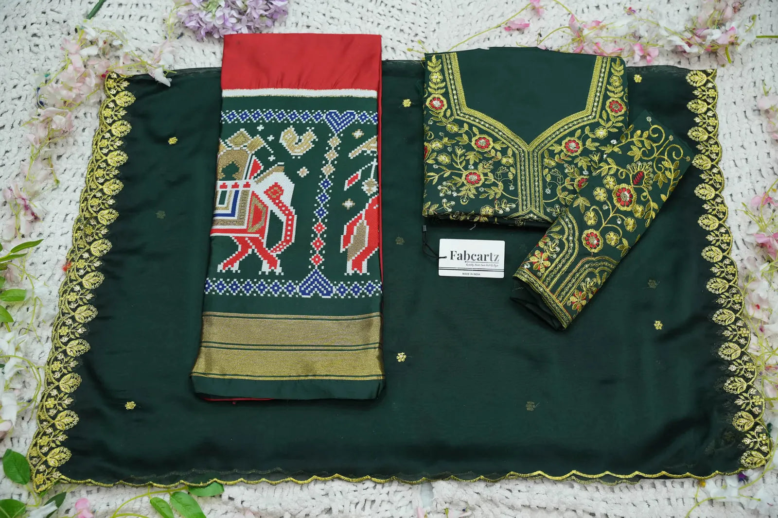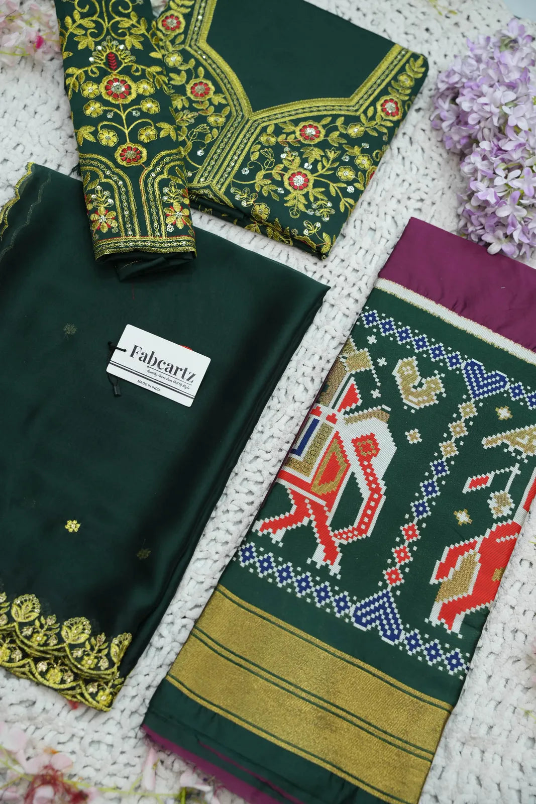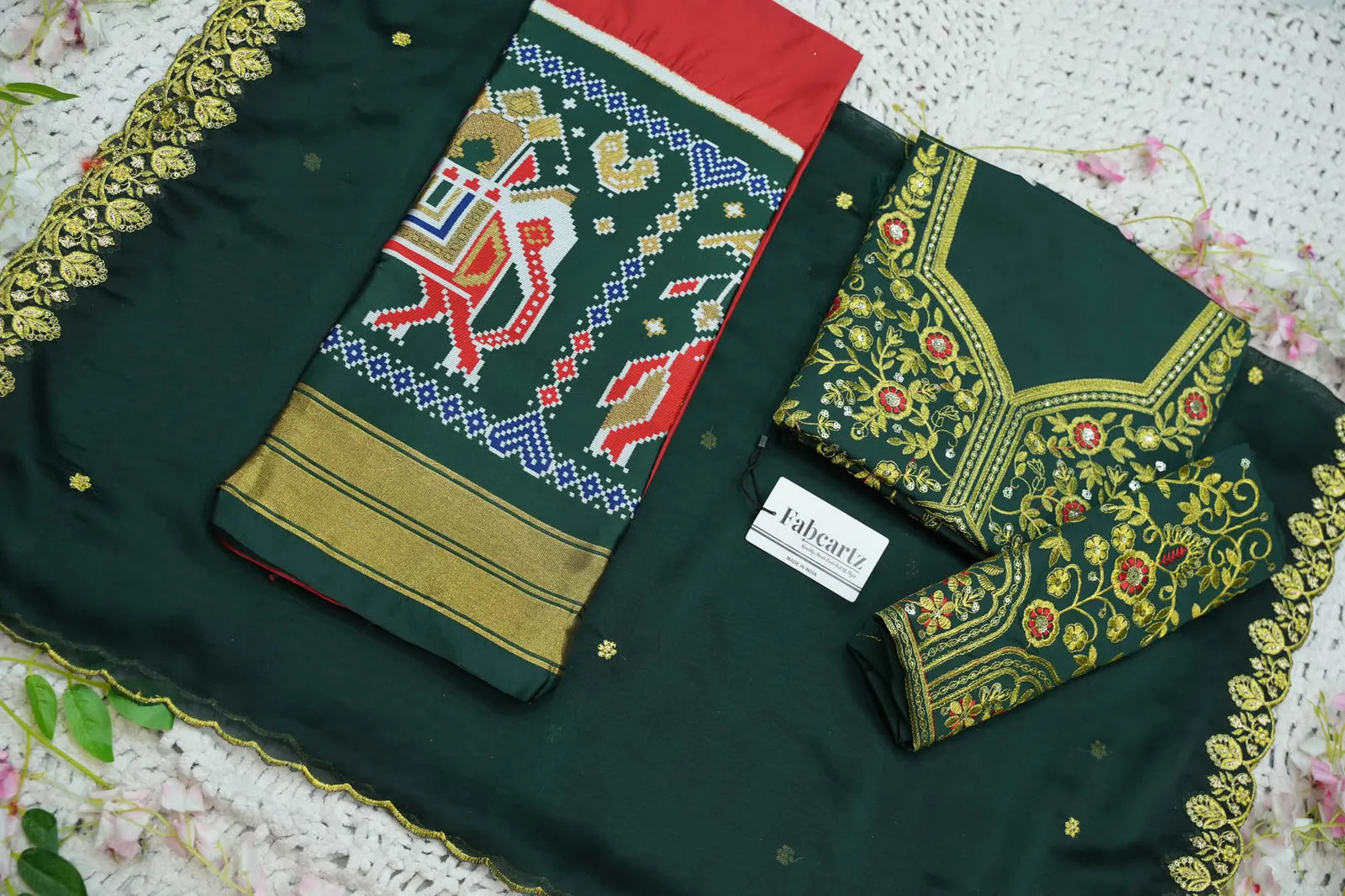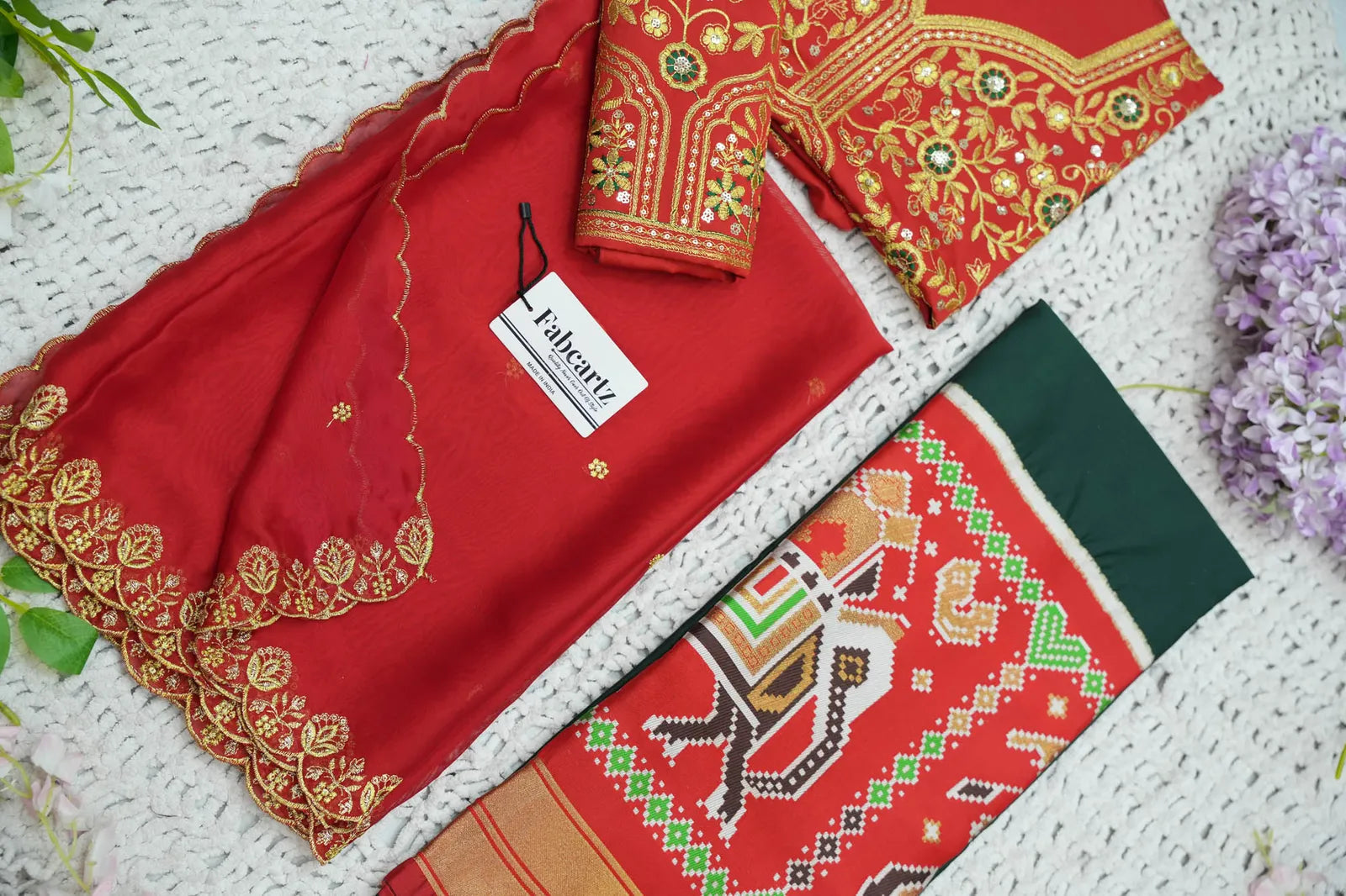 Crafted from Taffeta Satin (Litchi Silk) with intricate Zari work, offering a rich and elegant look.