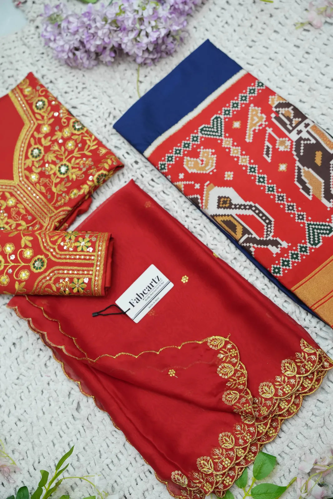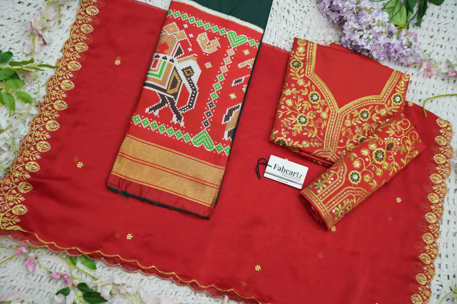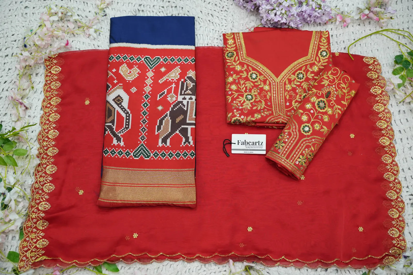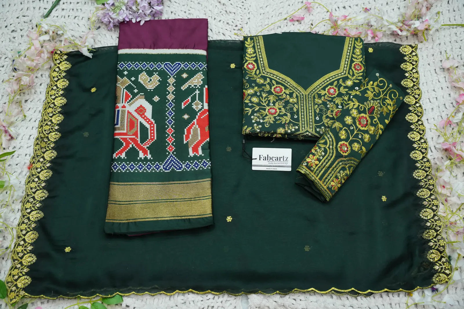 Crafted from Taffeta Satin (Litchi Silk) with intricate Zari work, offering a rich and elegant look.