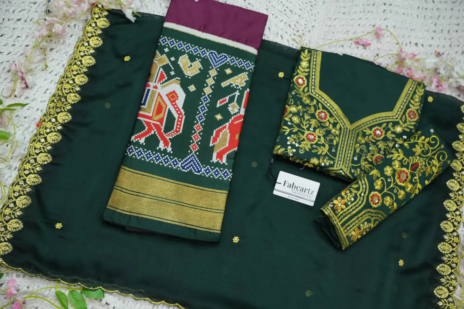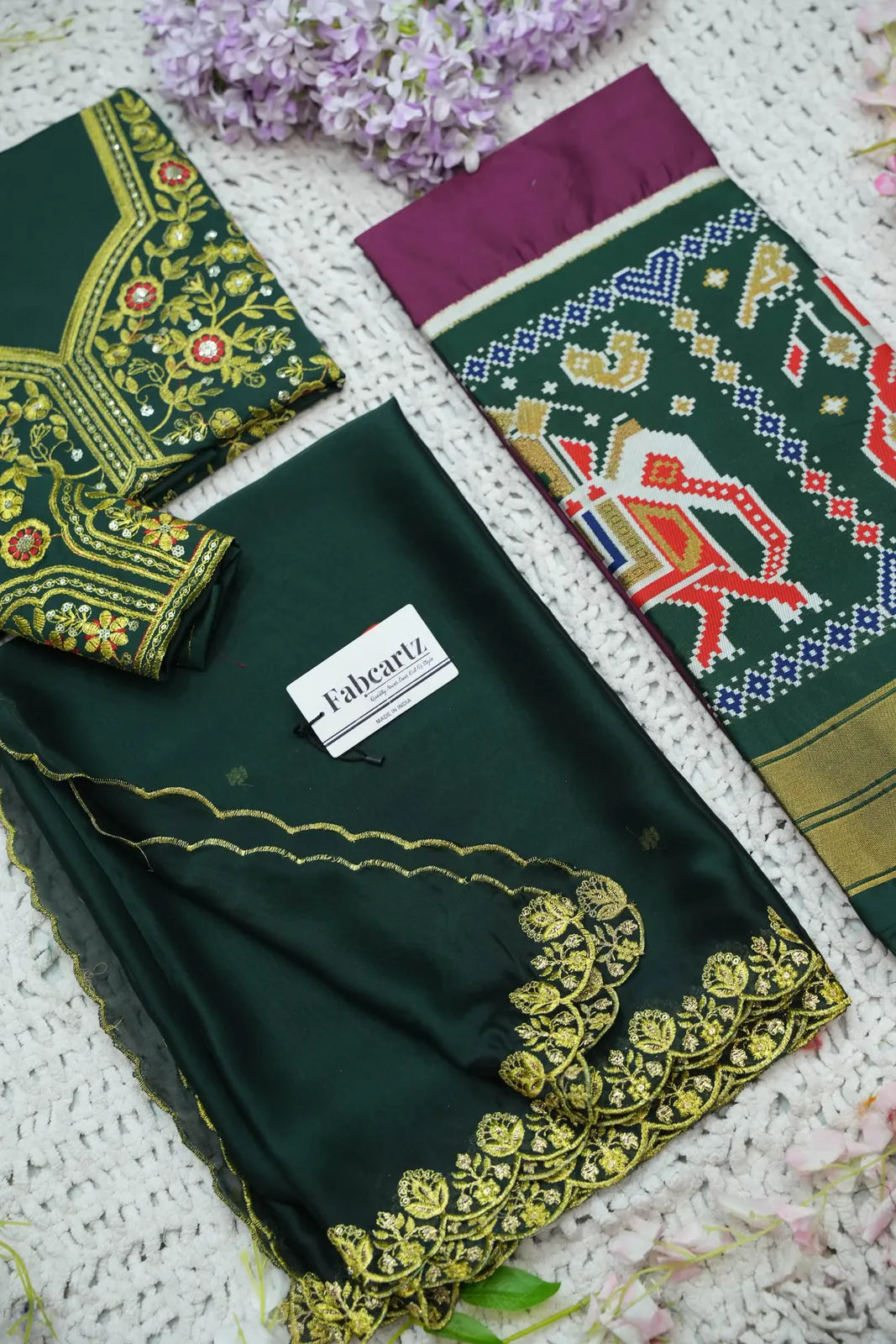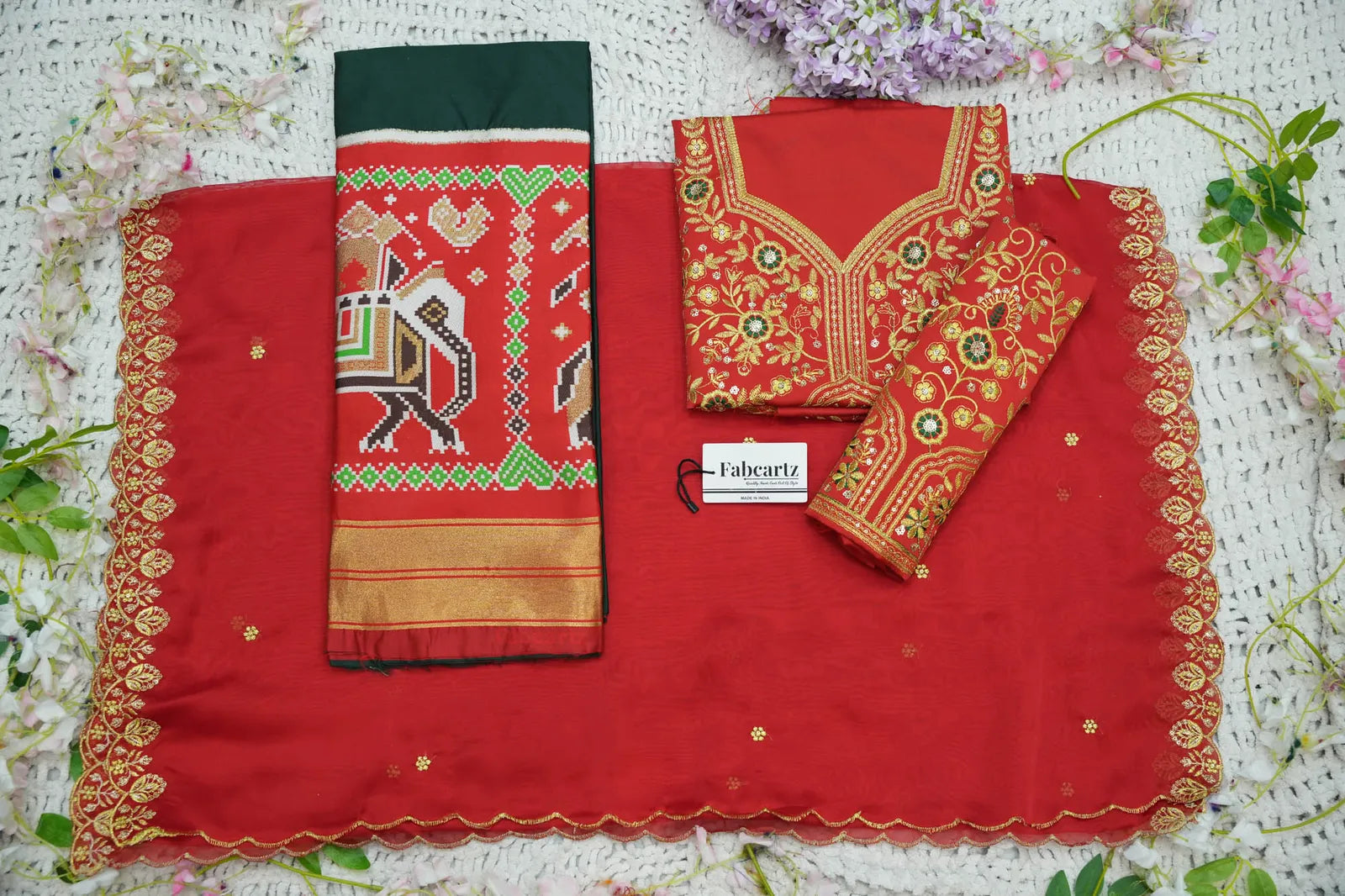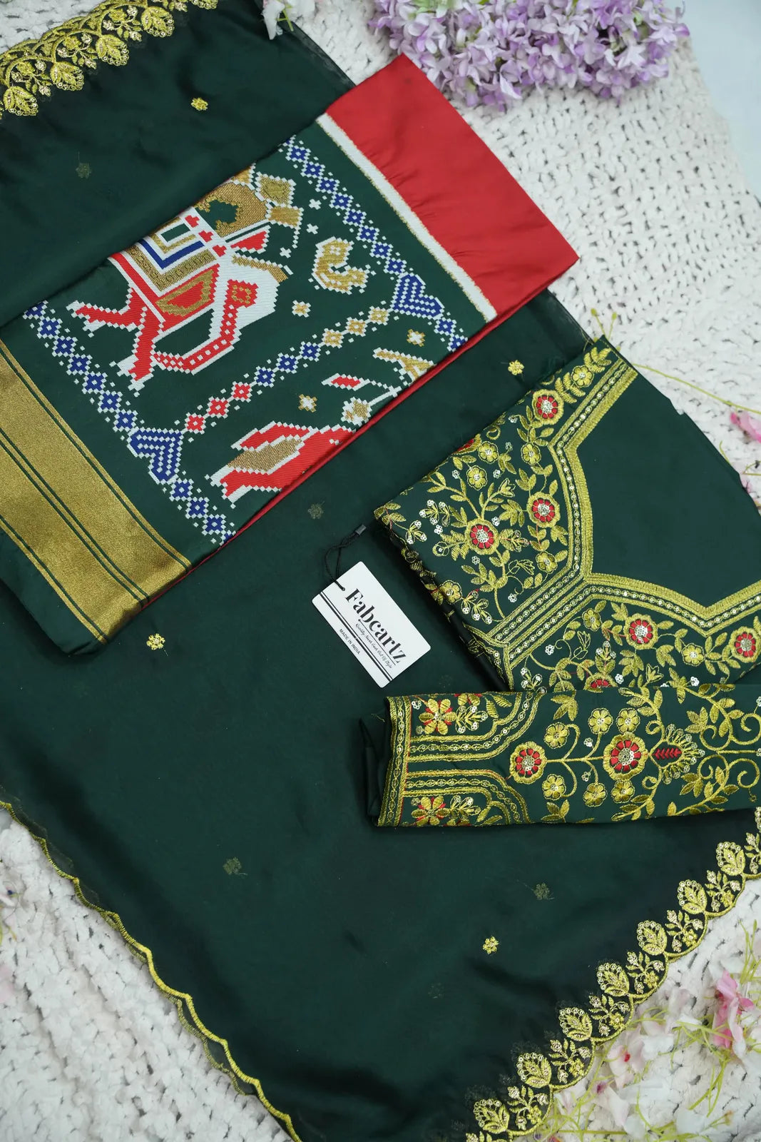 Crafted from Taffeta Satin (Litchi Silk) with intricate Zari work, offering a rich and elegant look.