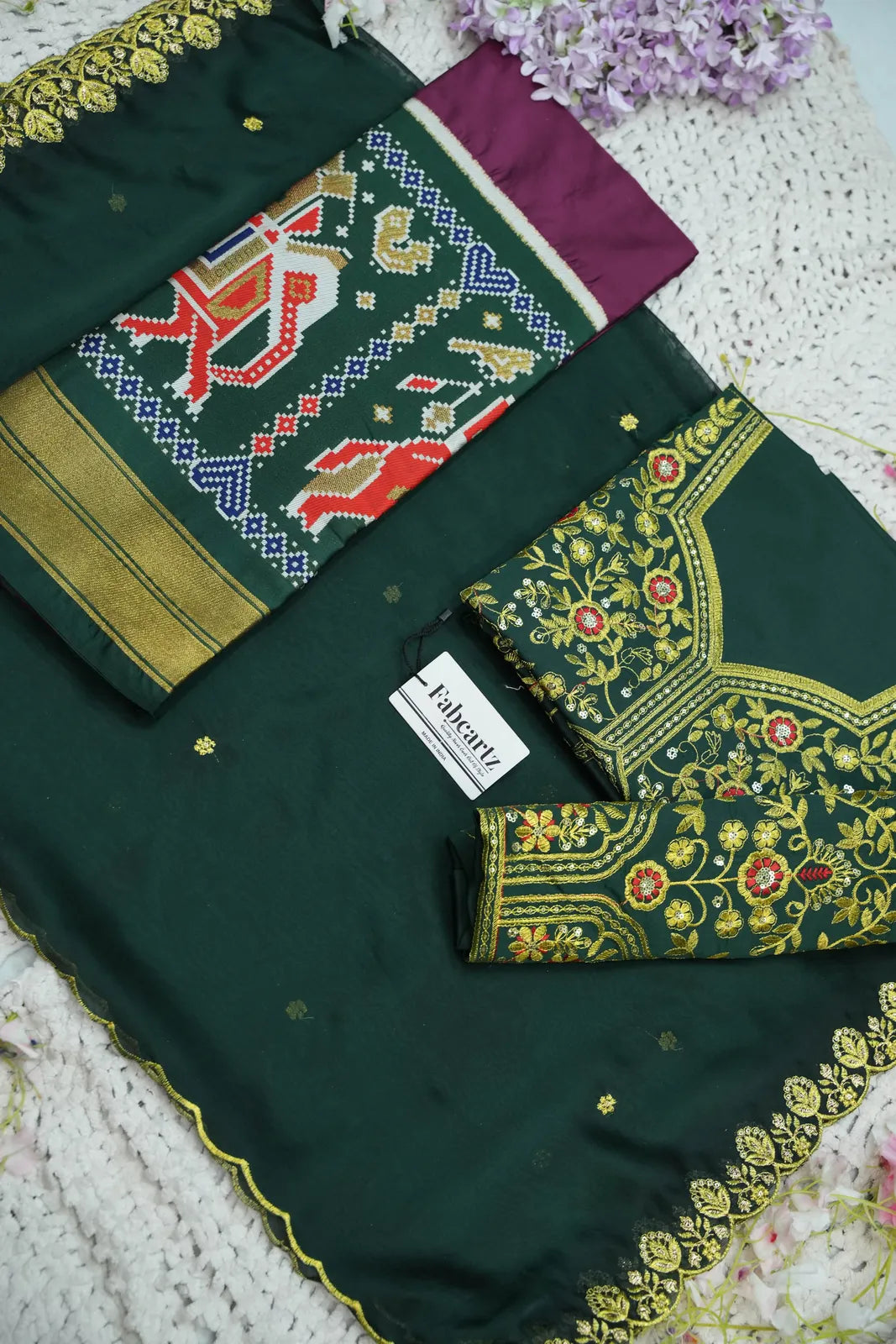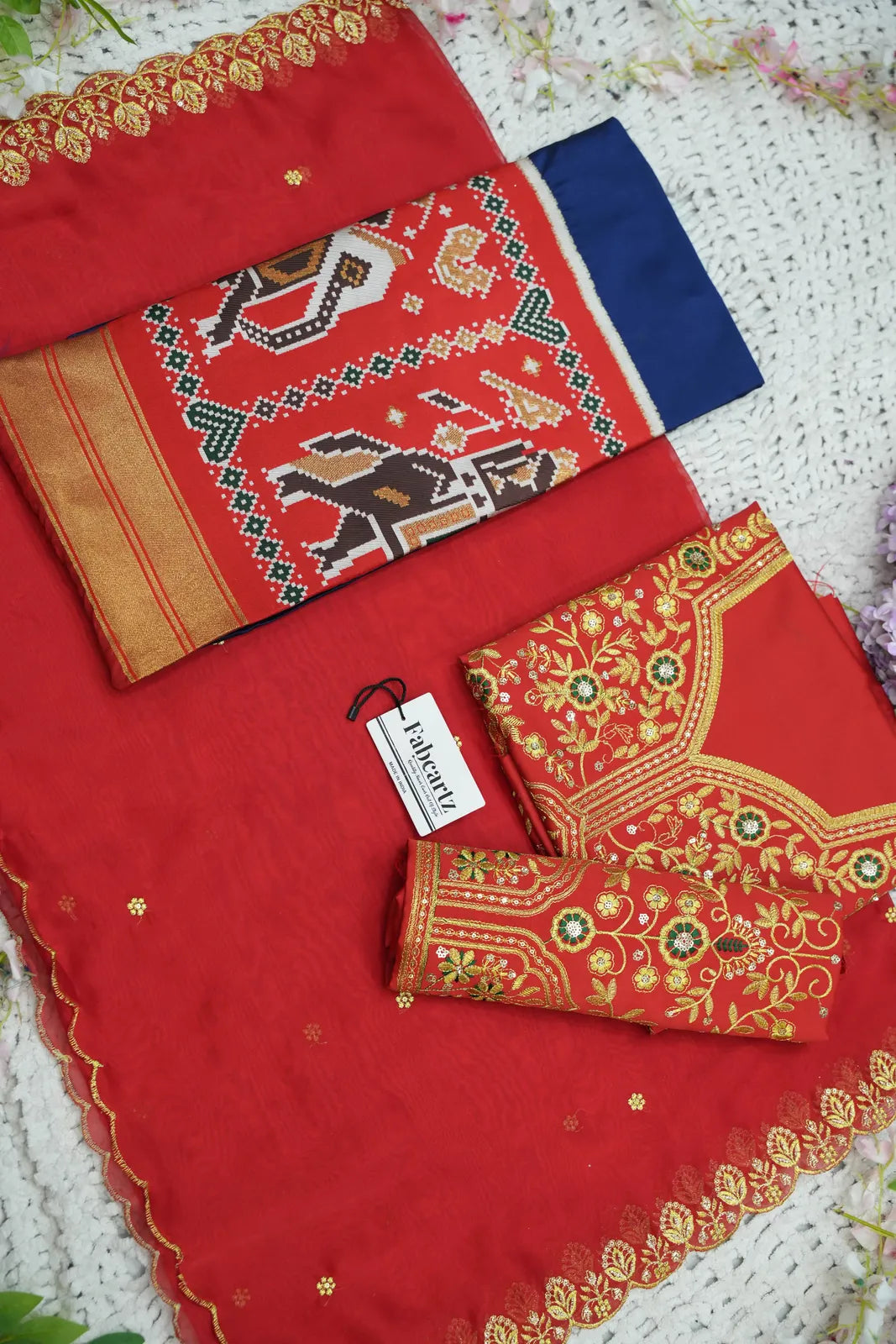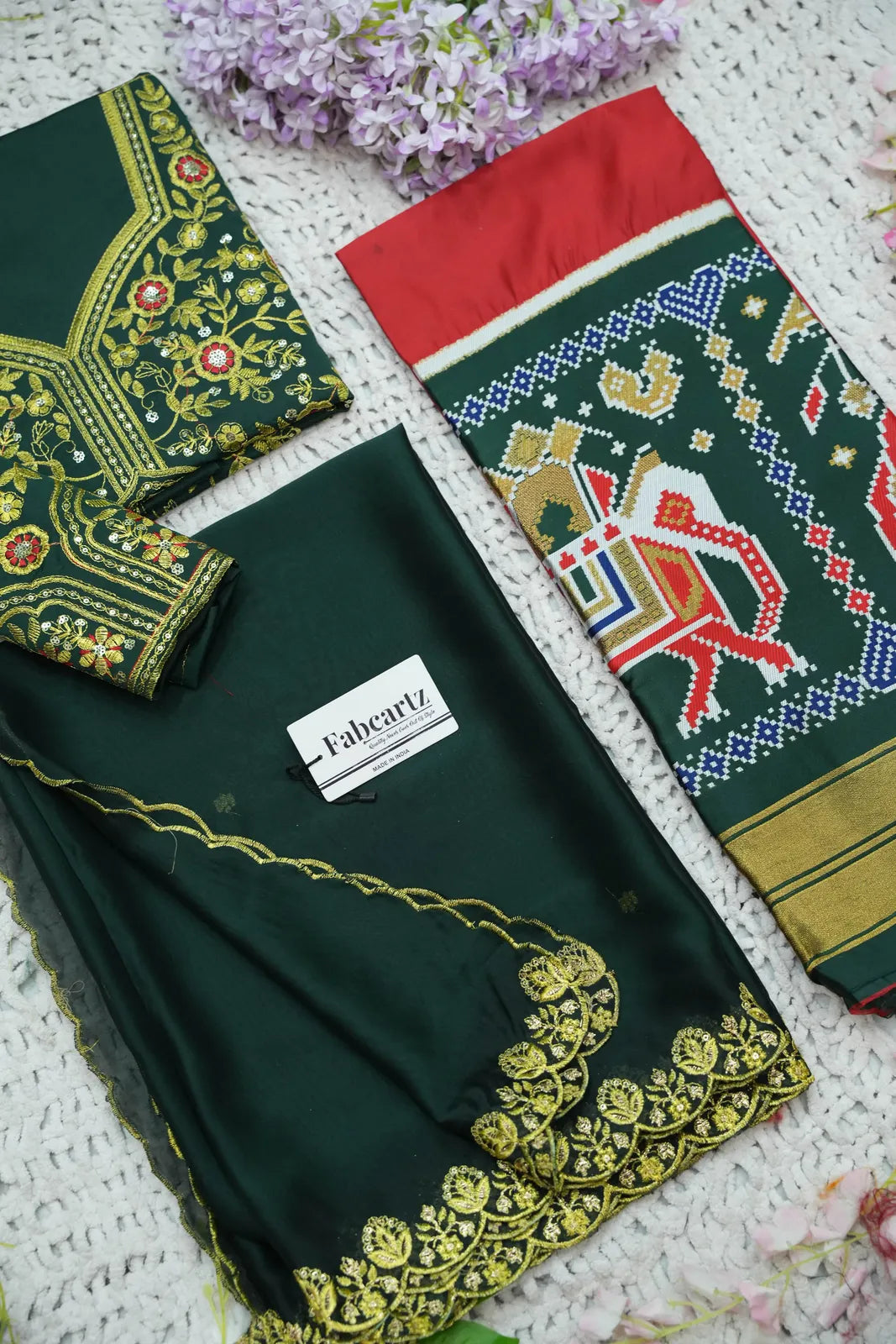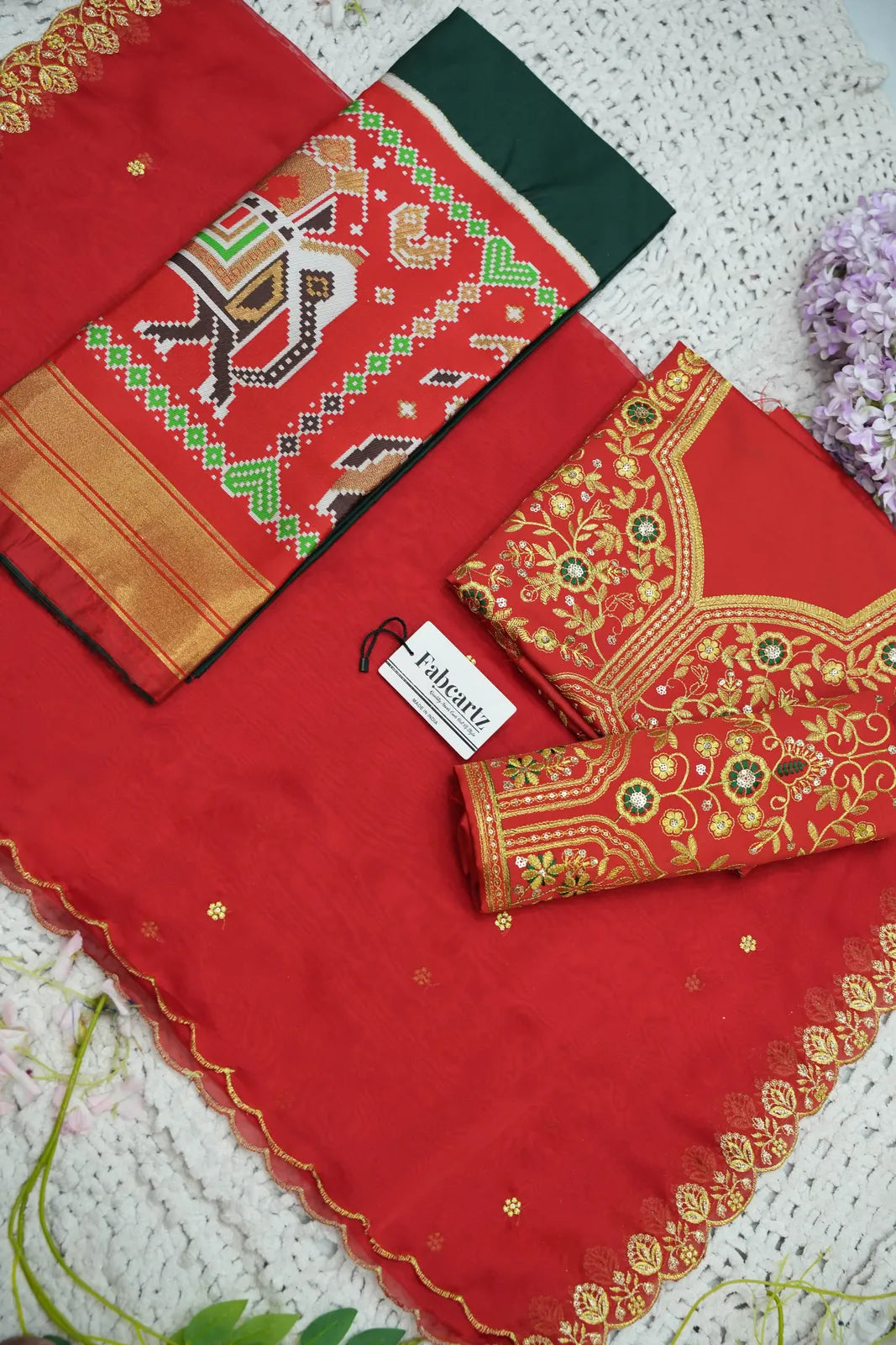Crafted from Taffeta Satin (Litchi Silk) with intricate Zari work, offering a rich and elegant look.