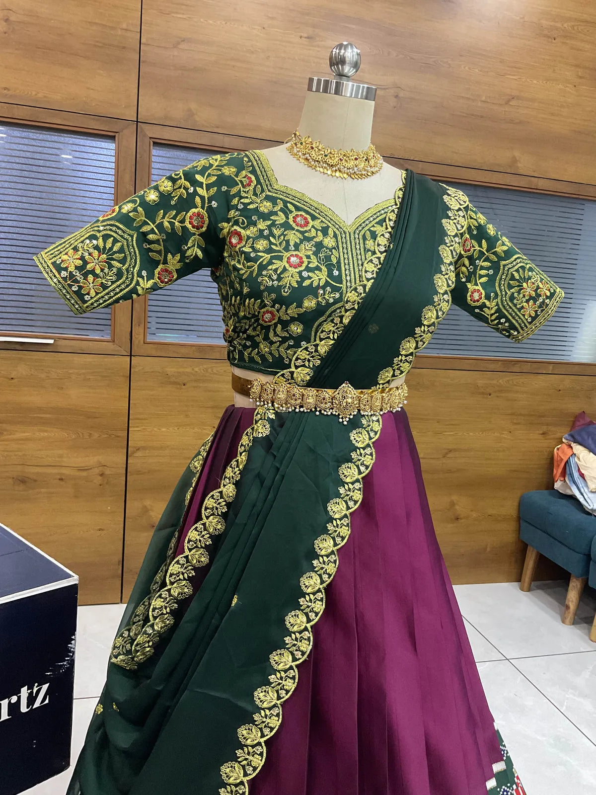 (Adhira) South Indian Festival Traditional Half Saree with Embroidered Blouse & Dupatta