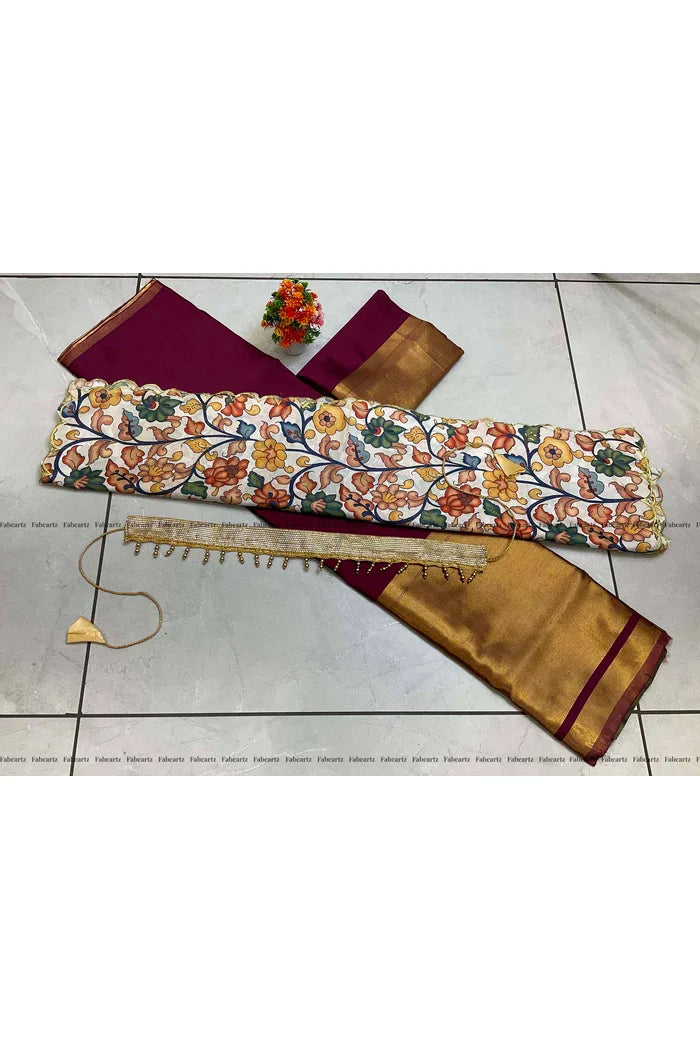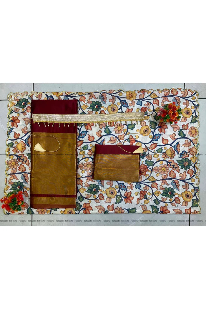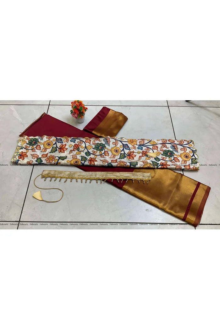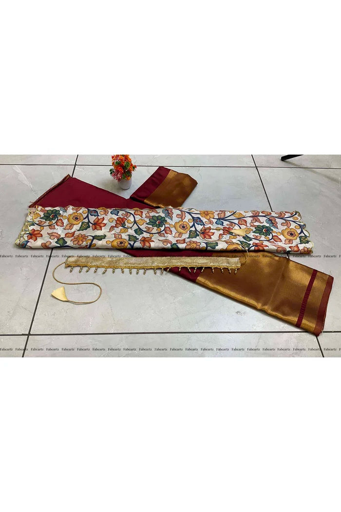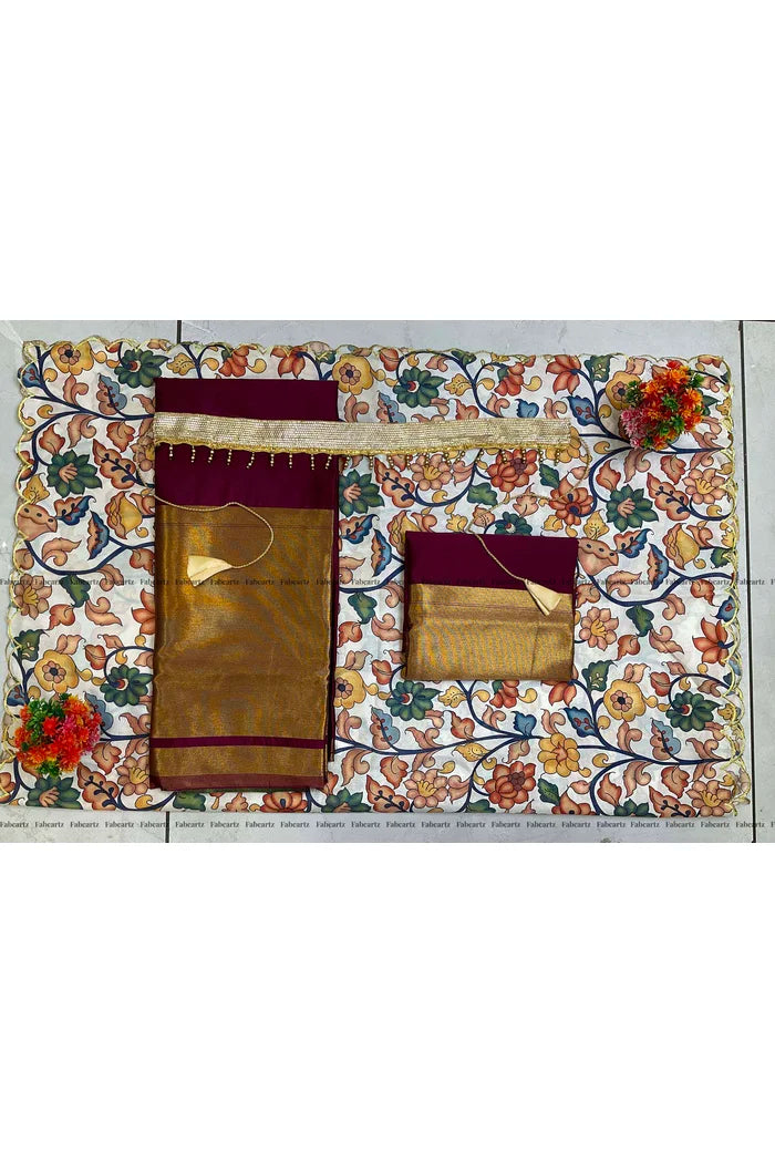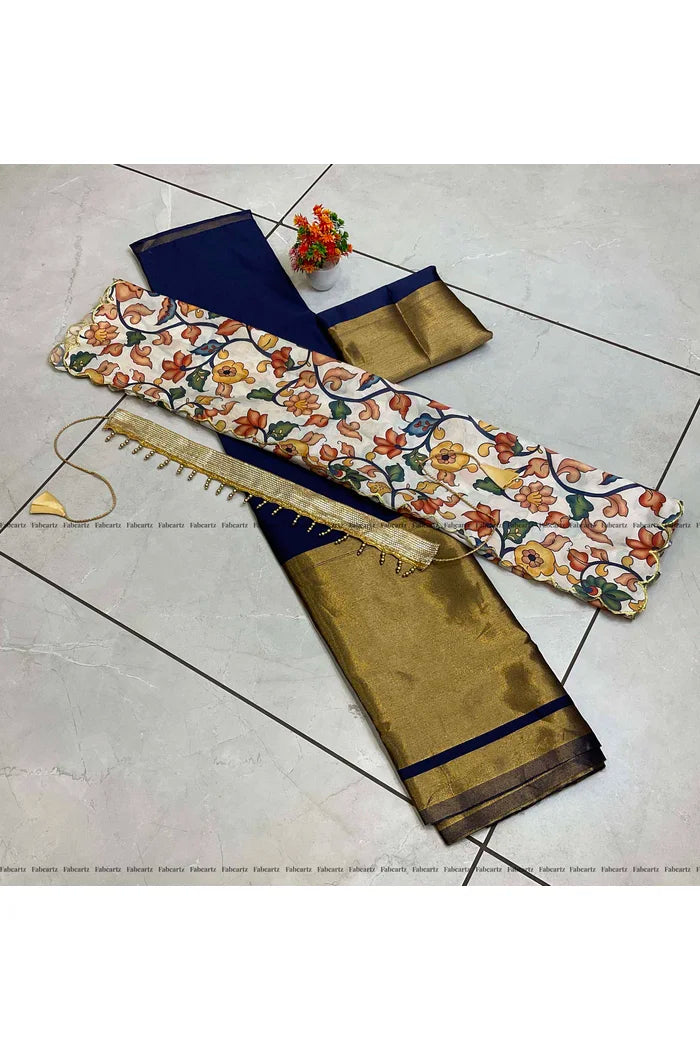 Crafted from Taffeta Satin (Litchi Silk) with intricate Zari work, offering a rich and elegant look.