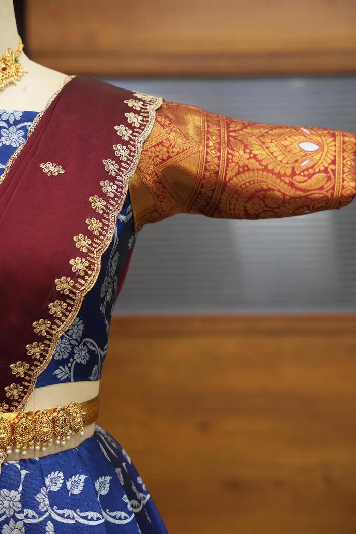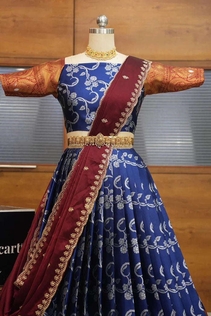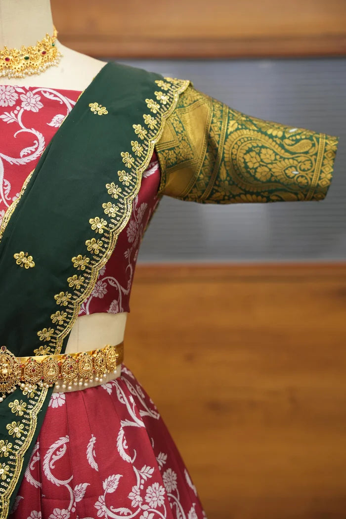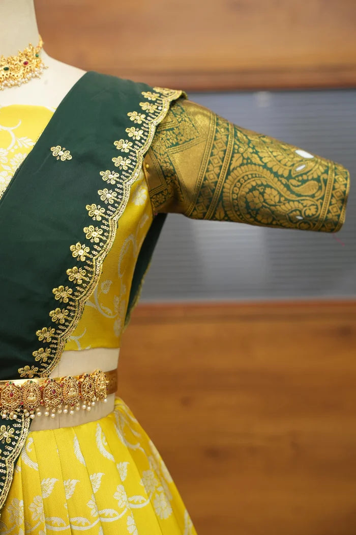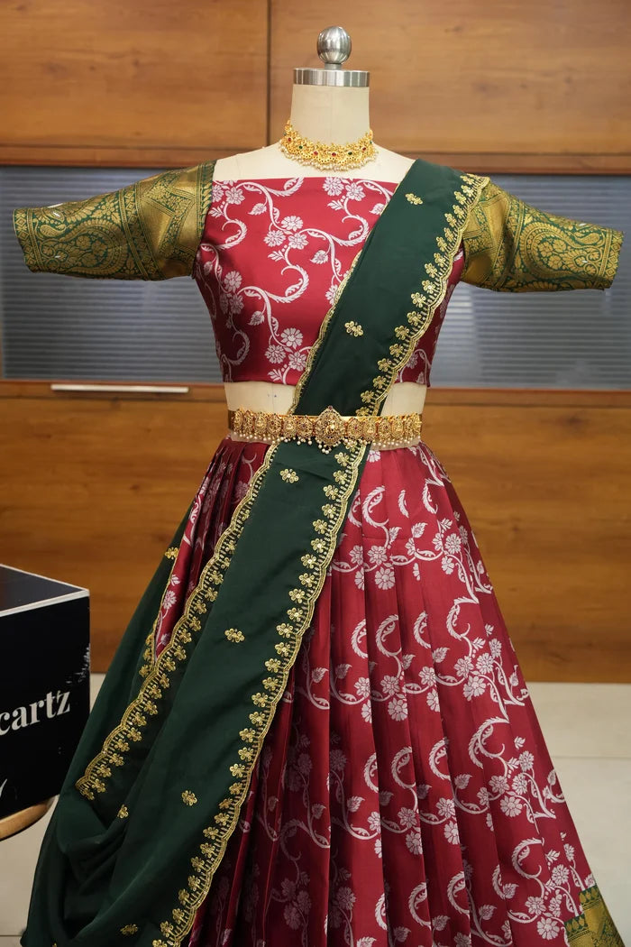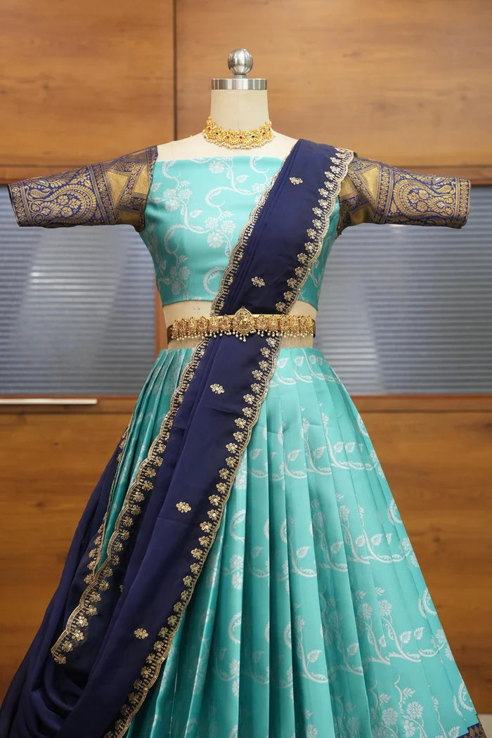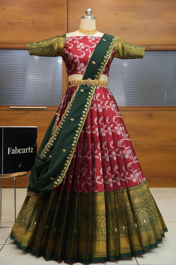 HemaValli Women's Woven Design zari work Half Saree with Embroidered Blouse and Dupatta