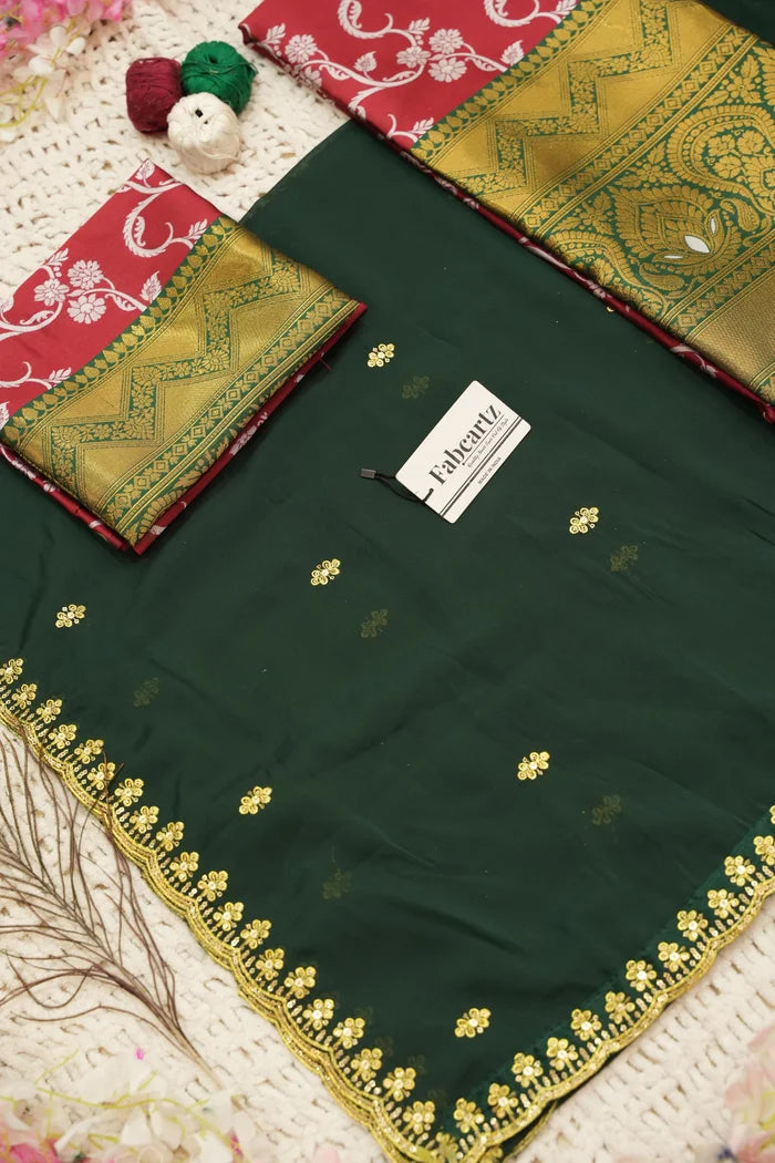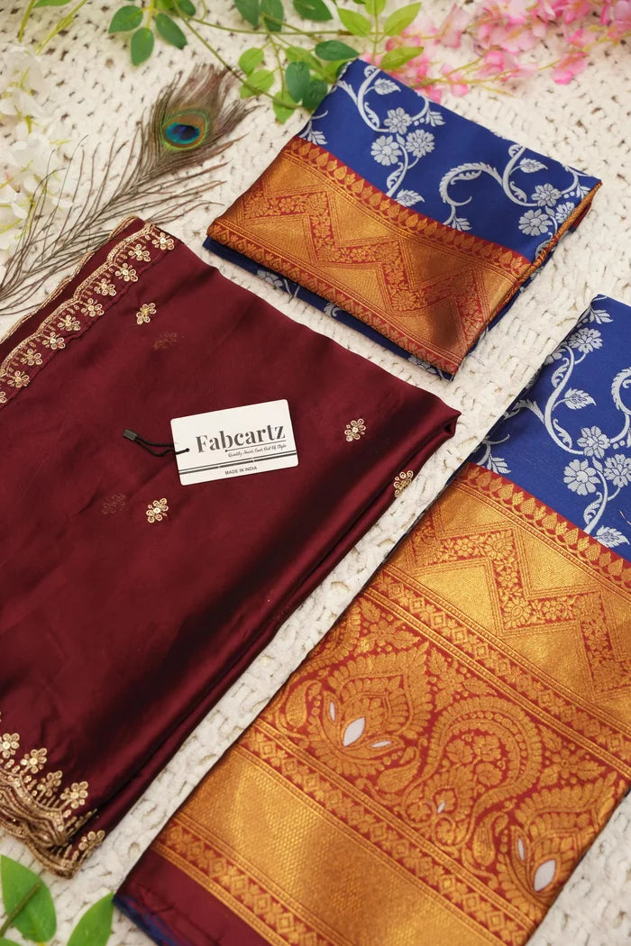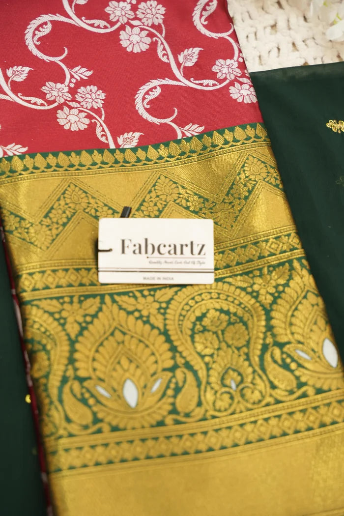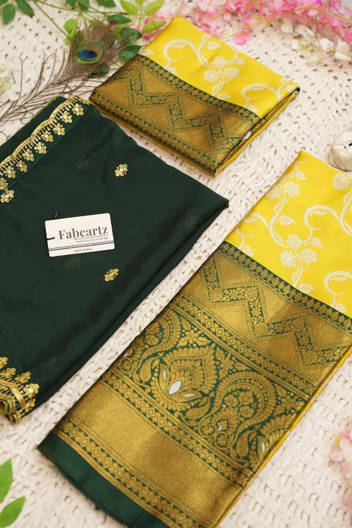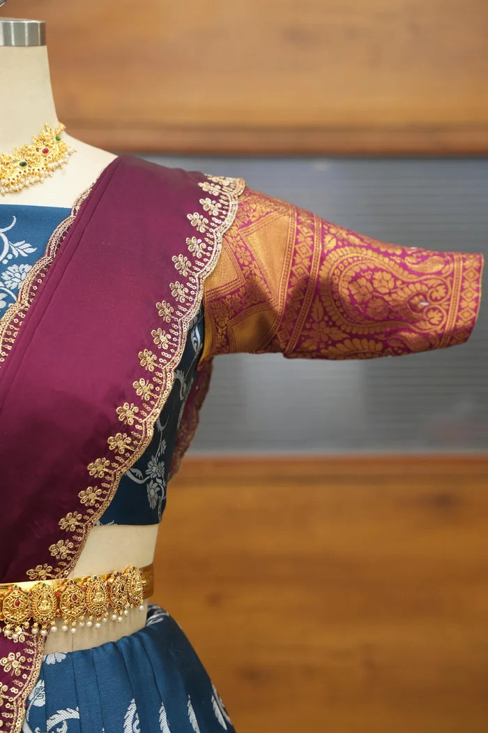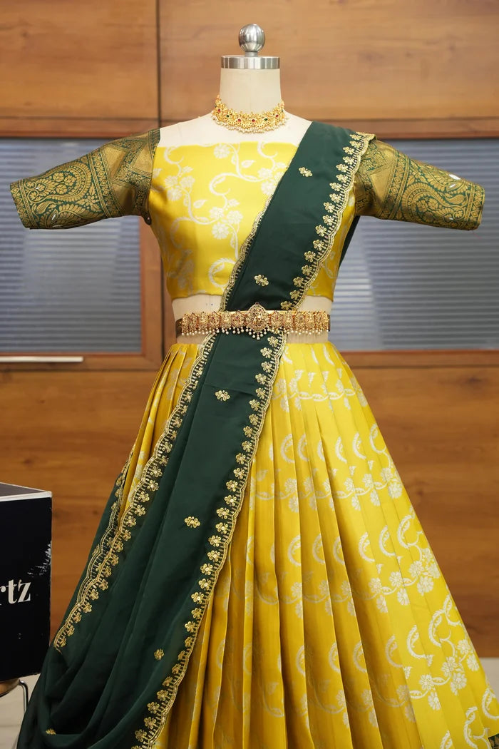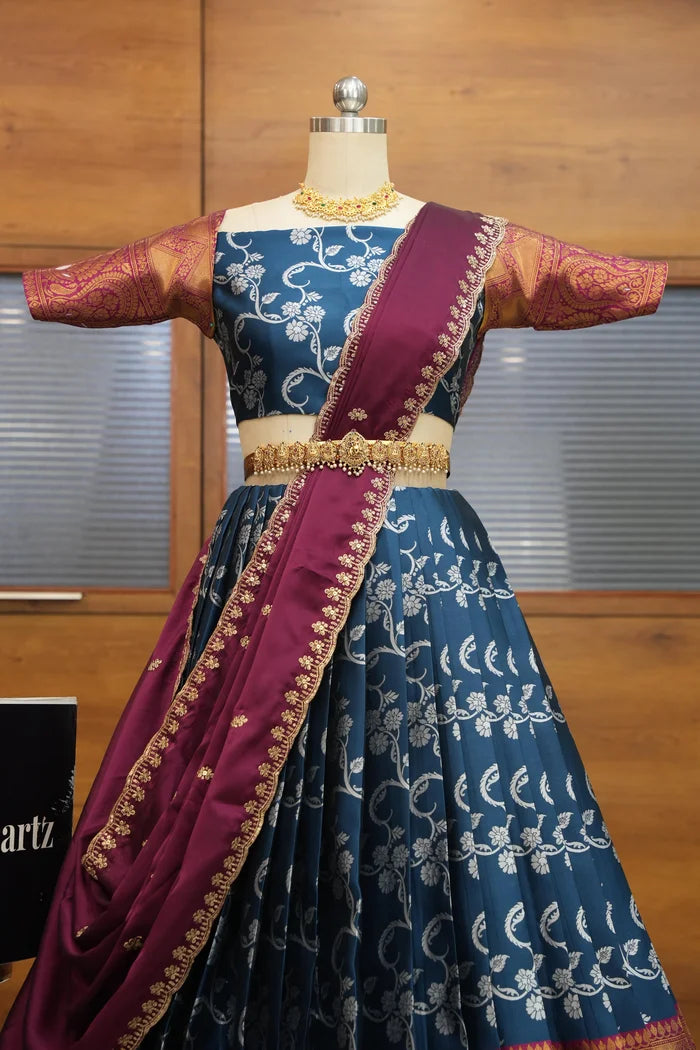 HemaValli Women's Woven Design zari work Half Saree with Embroidered Blouse and Dupatta