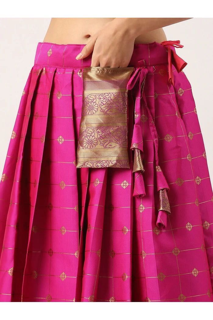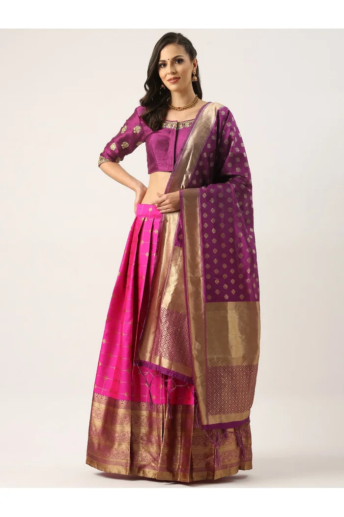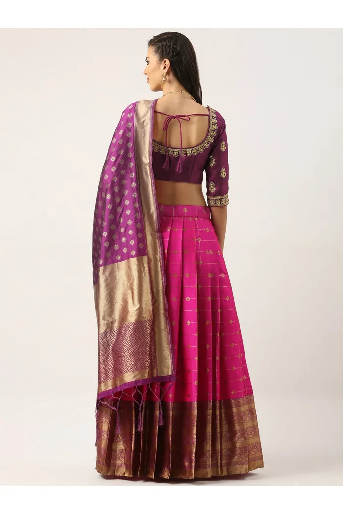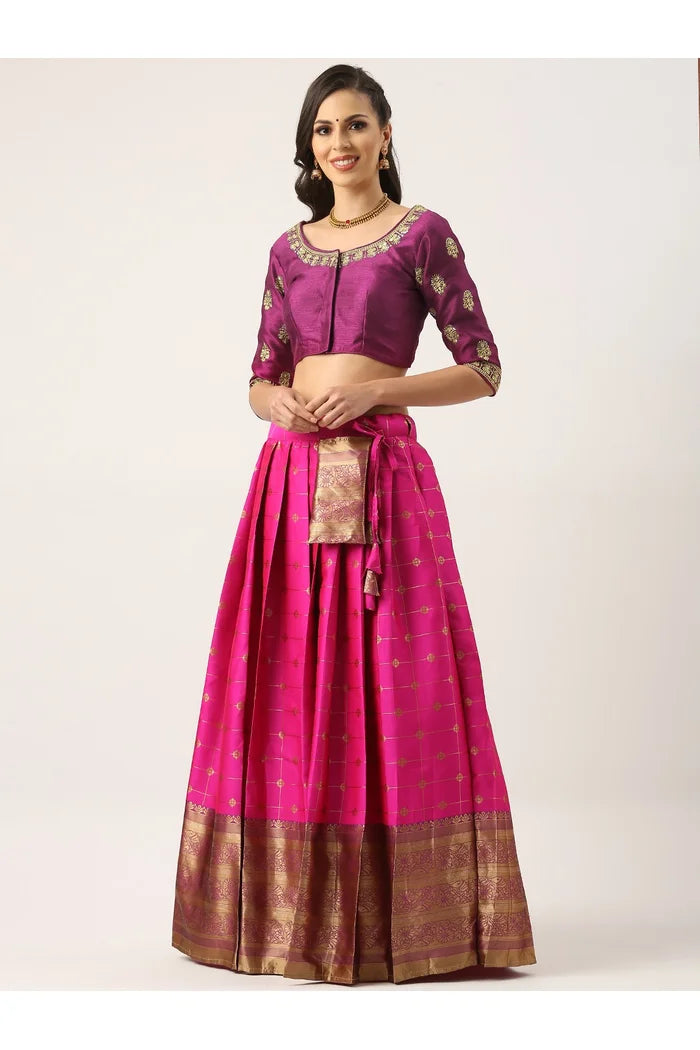 Jiya Women's Woven Design zari work Half Saree with Embroidered Blouse and Dupatta