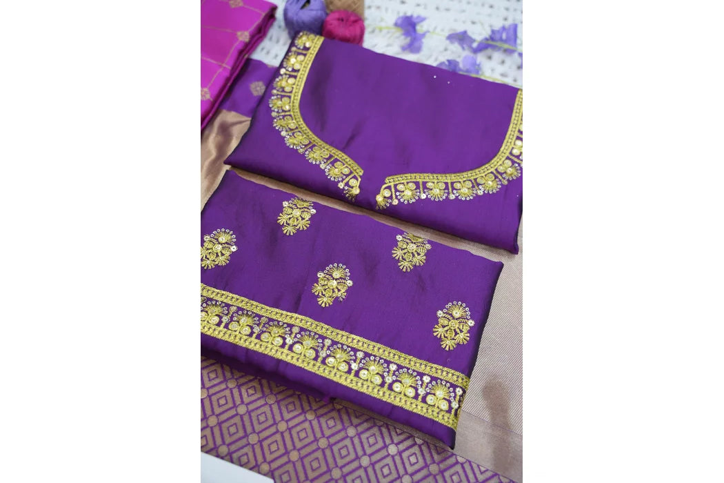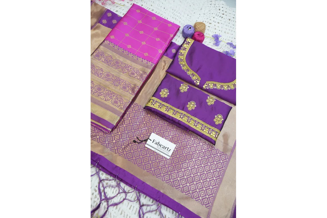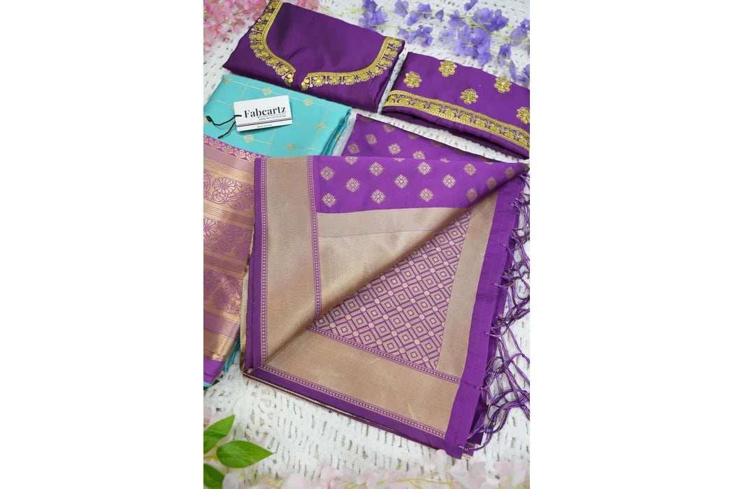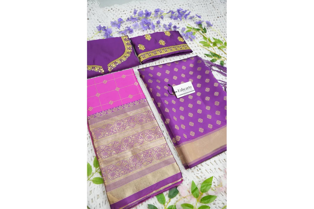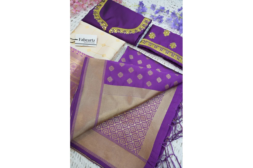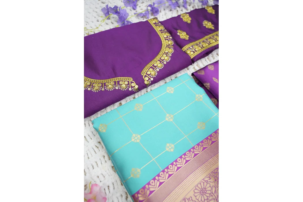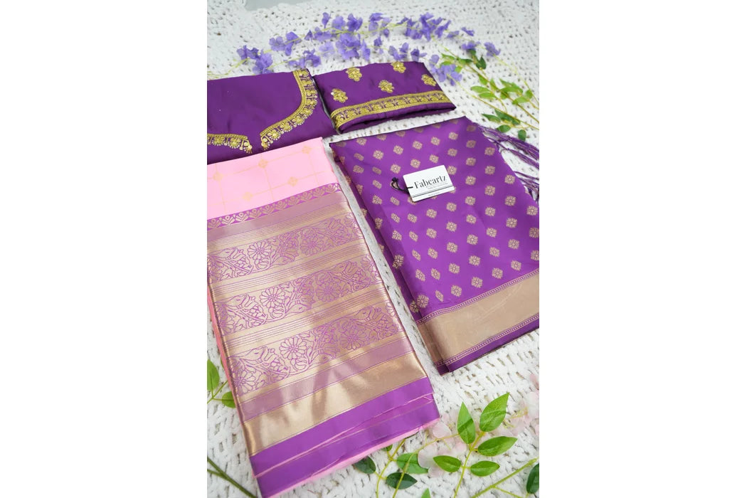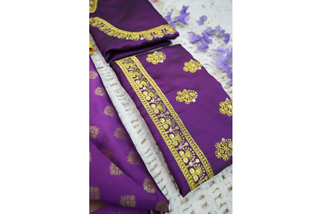 Crafted from Taffeta Satin (Litchi Silk) with intricate Zari work, offering a rich and elegant look.