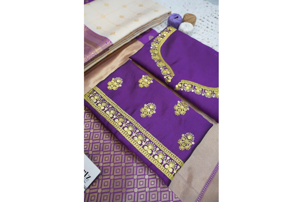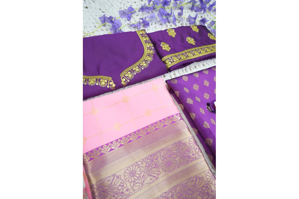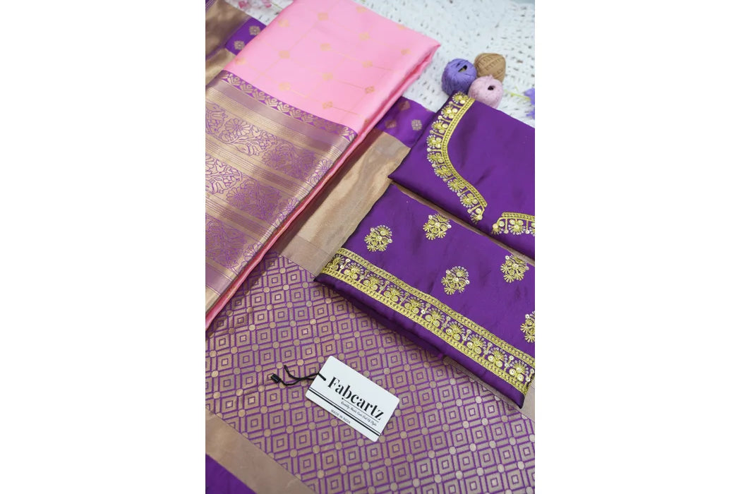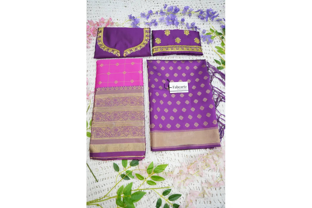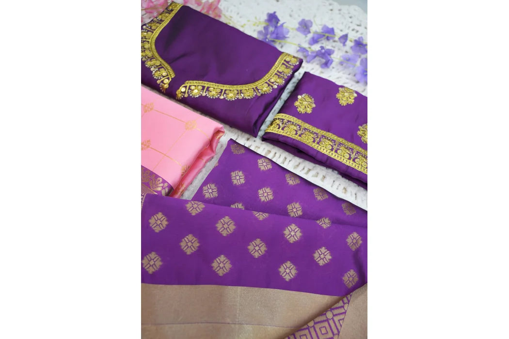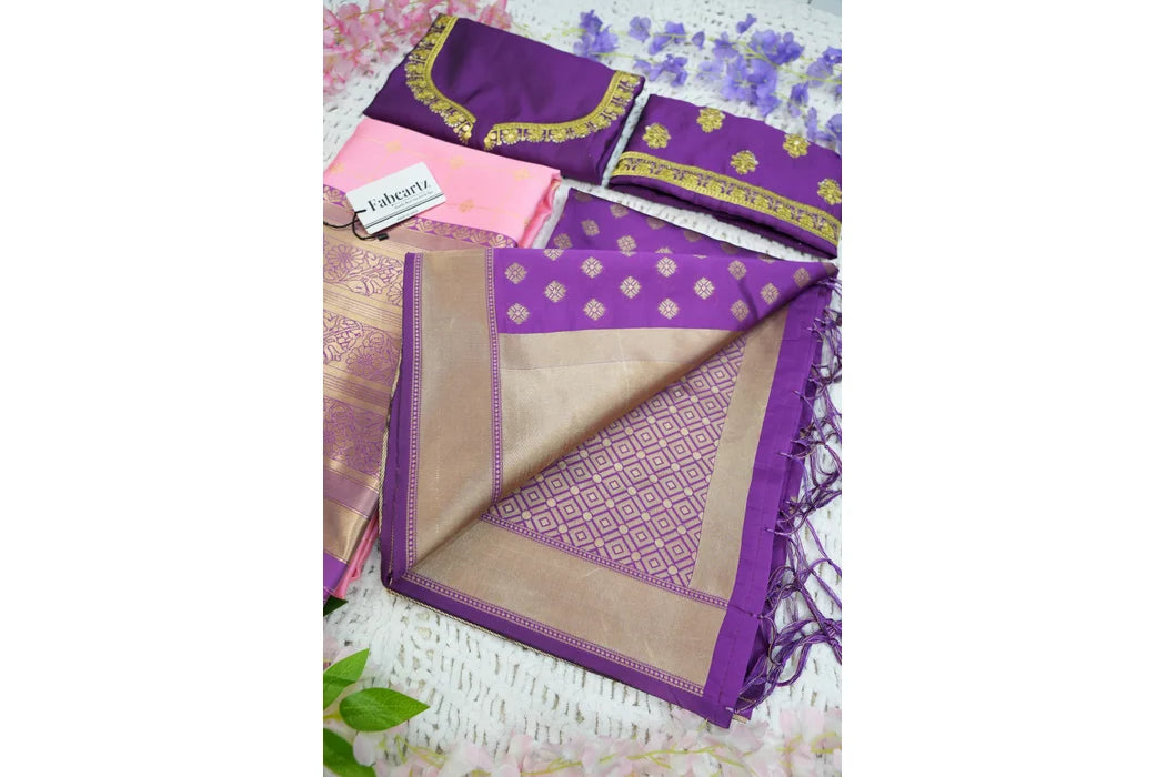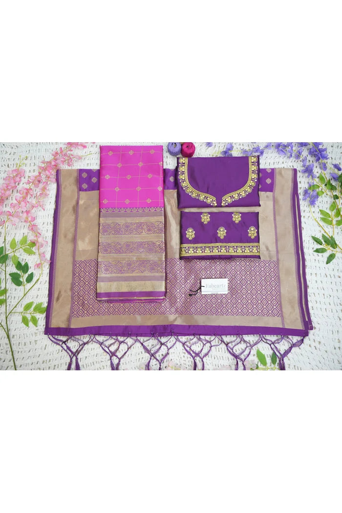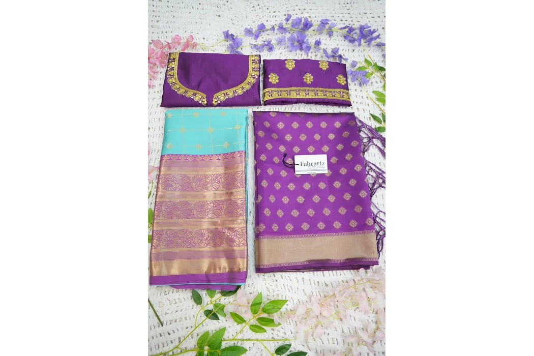 Crafted from Taffeta Satin (Litchi Silk) with intricate Zari work, offering a rich and elegant look.