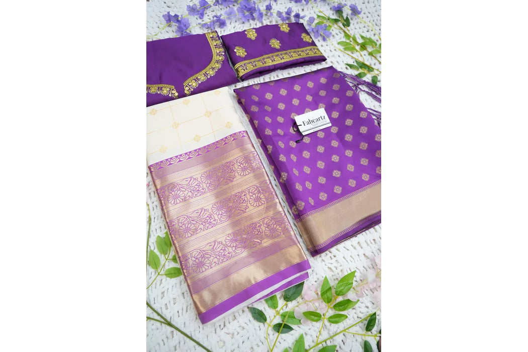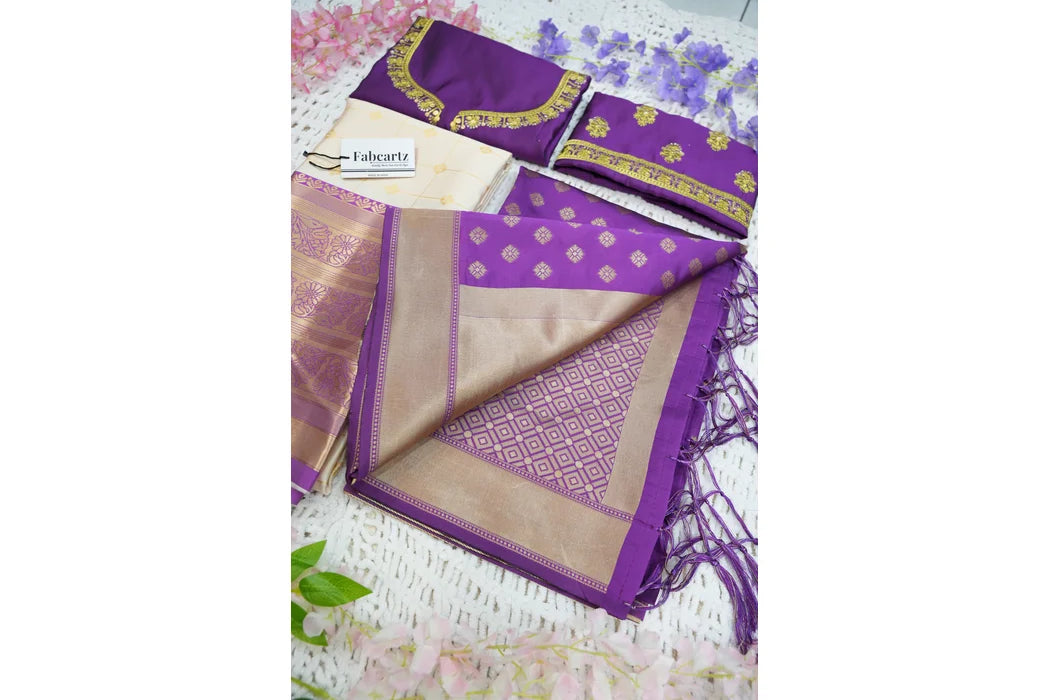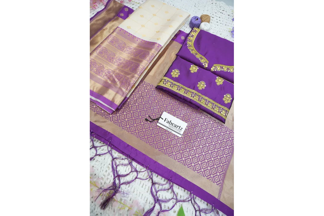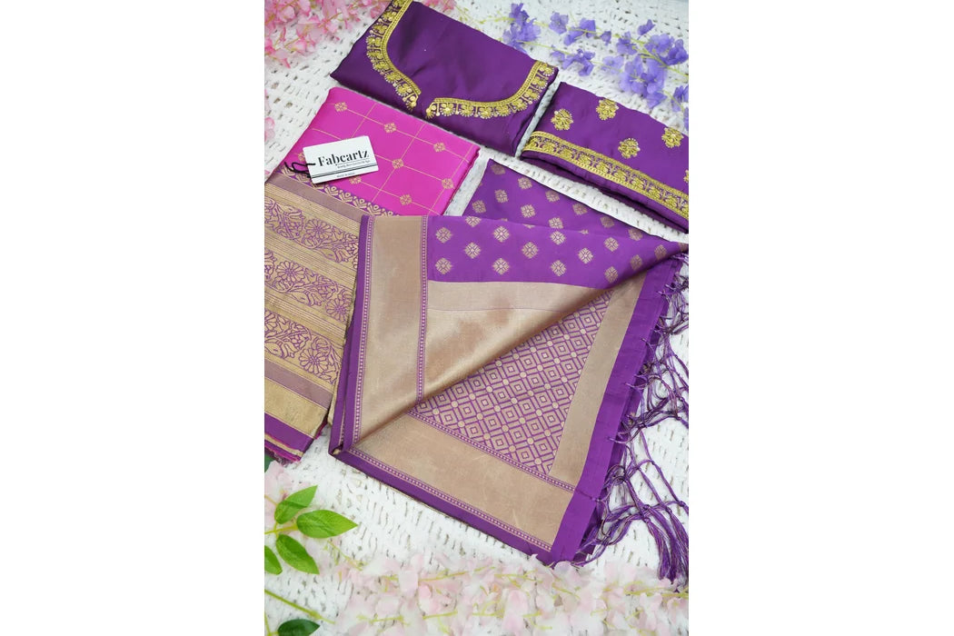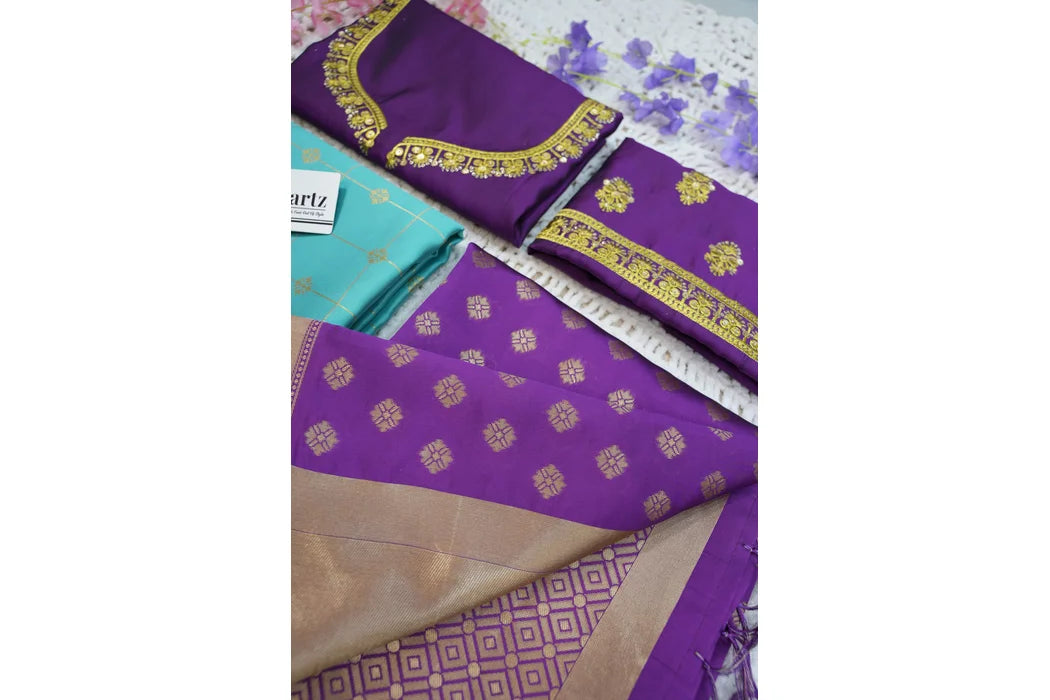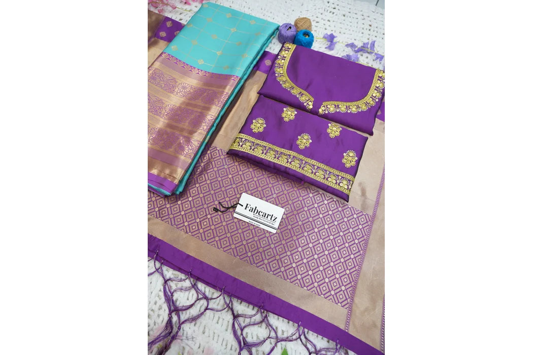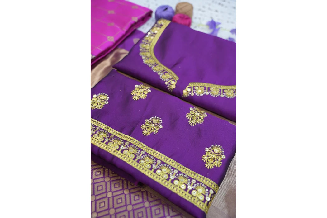 Crafted from Taffeta Satin (Litchi Silk) with intricate Zari work, offering a rich and elegant look.