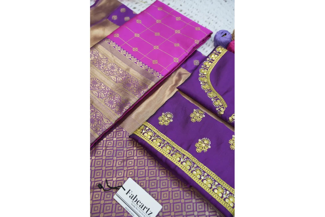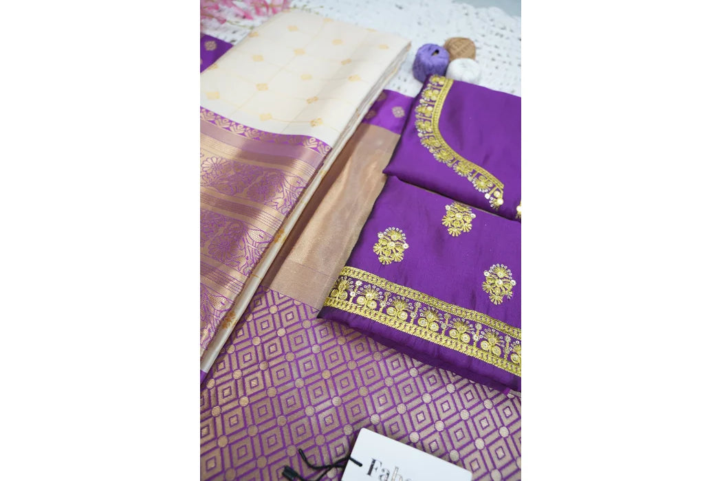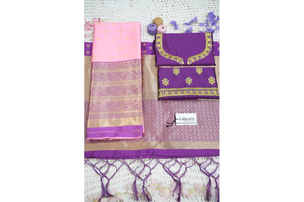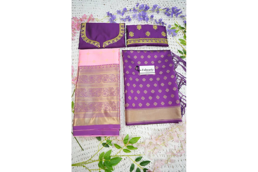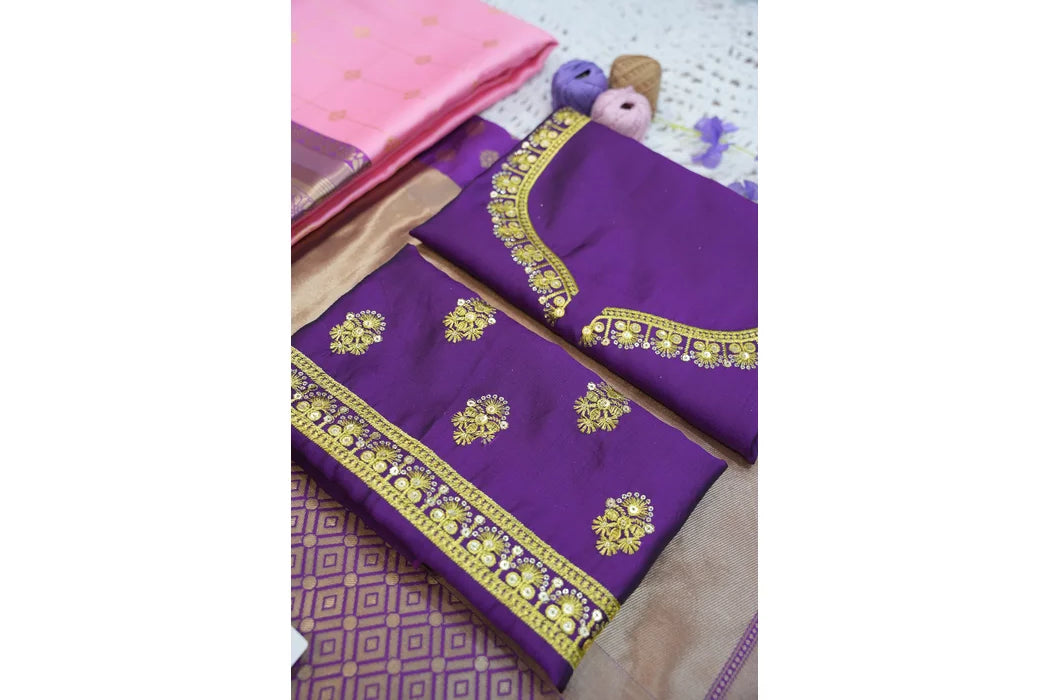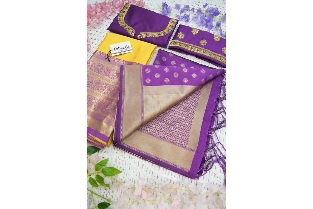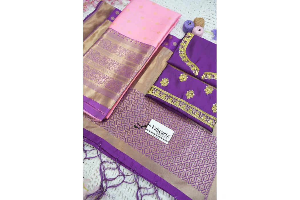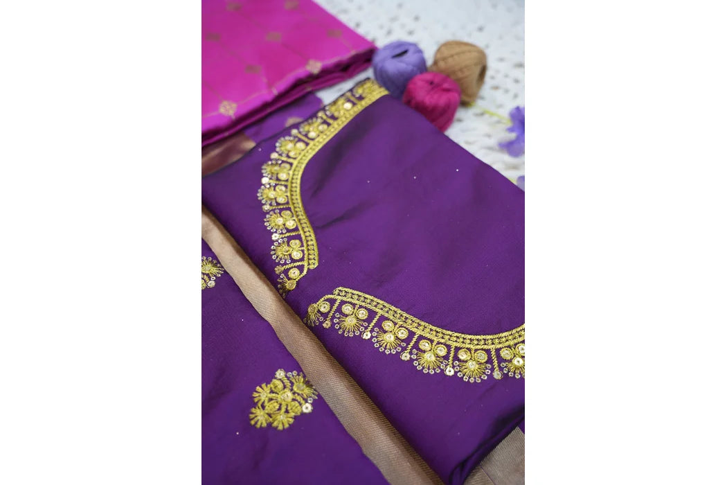Crafted from Taffeta Satin (Litchi Silk) with intricate Zari work, offering a rich and elegant look.
