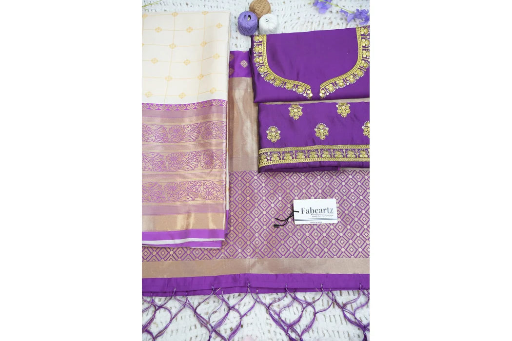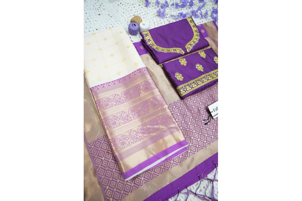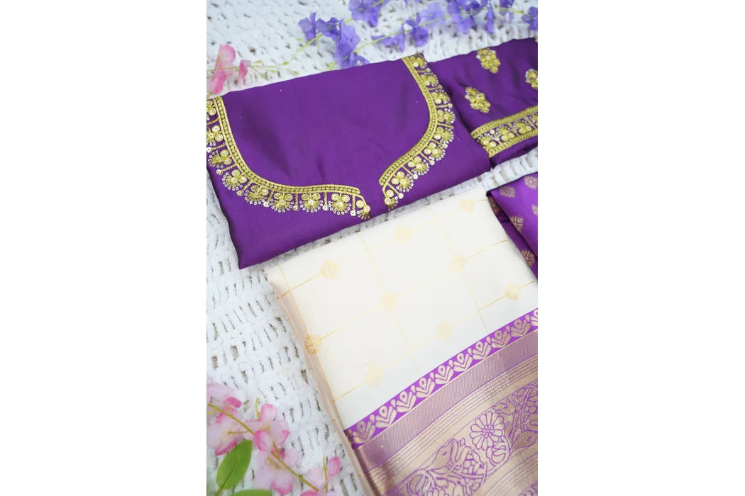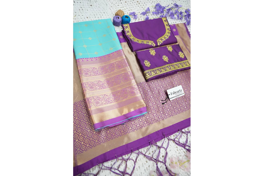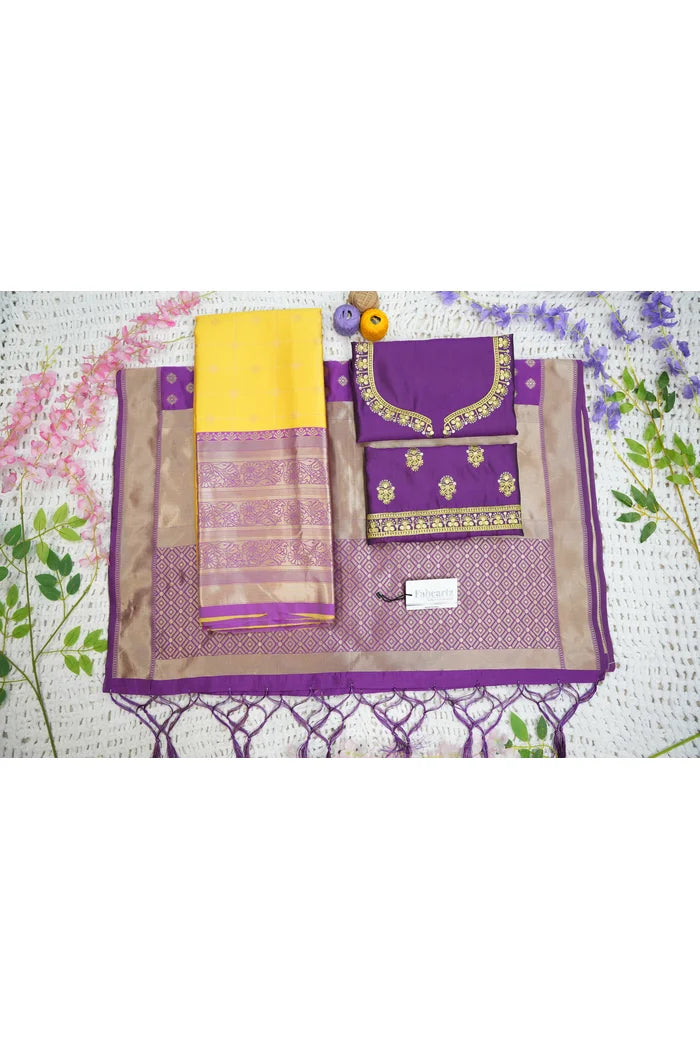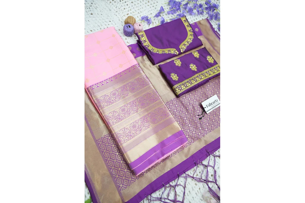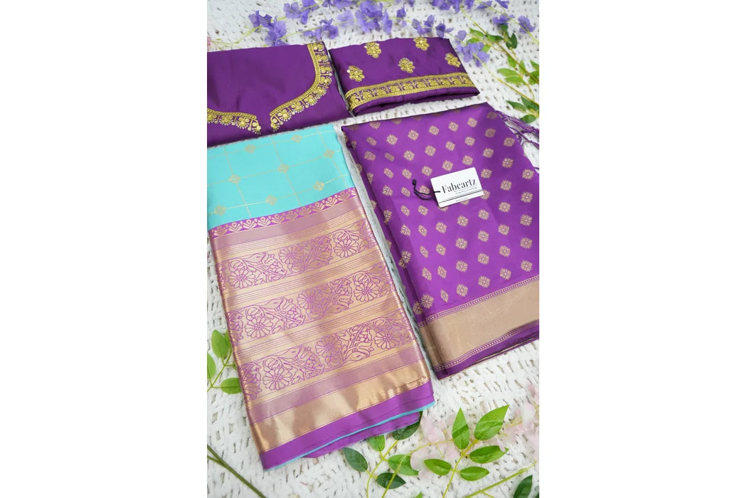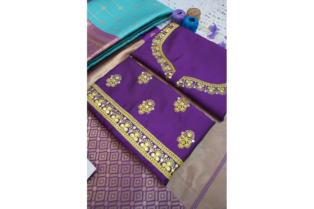 Crafted from Taffeta Satin (Litchi Silk) with intricate Zari work, offering a rich and elegant look.