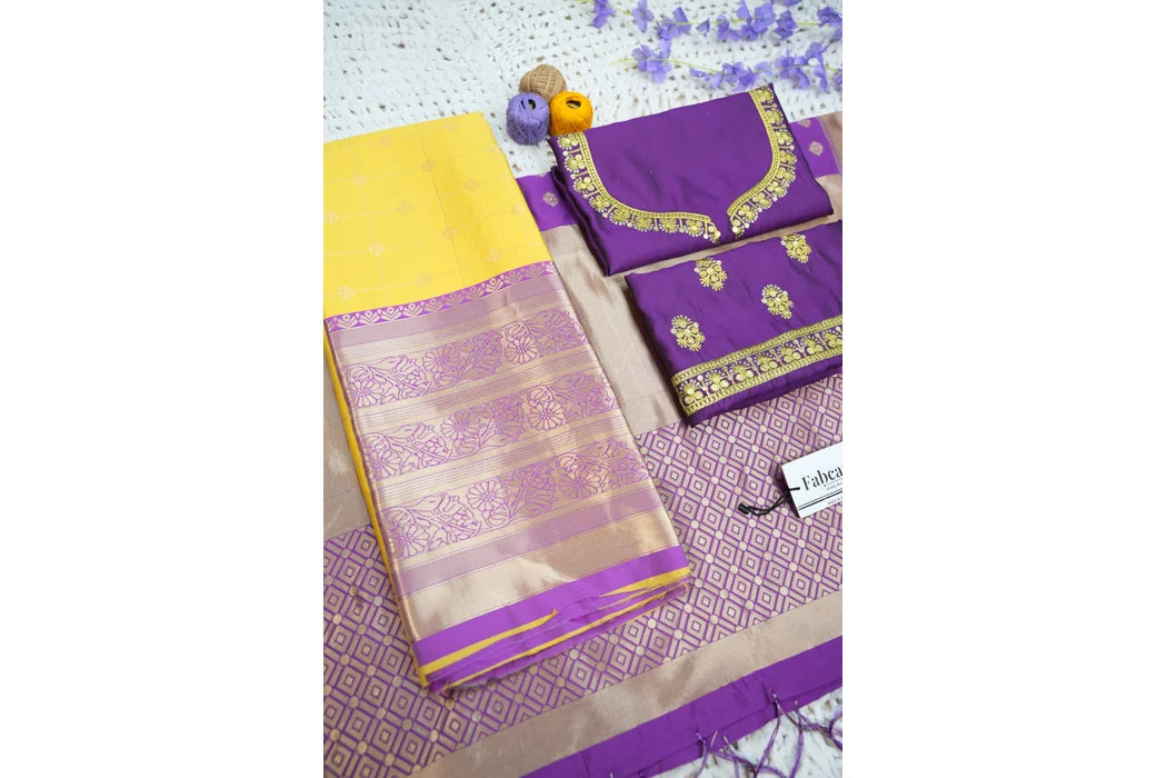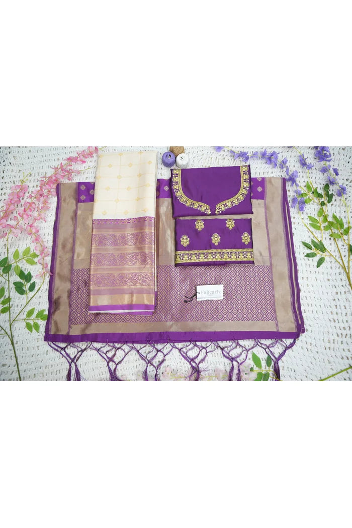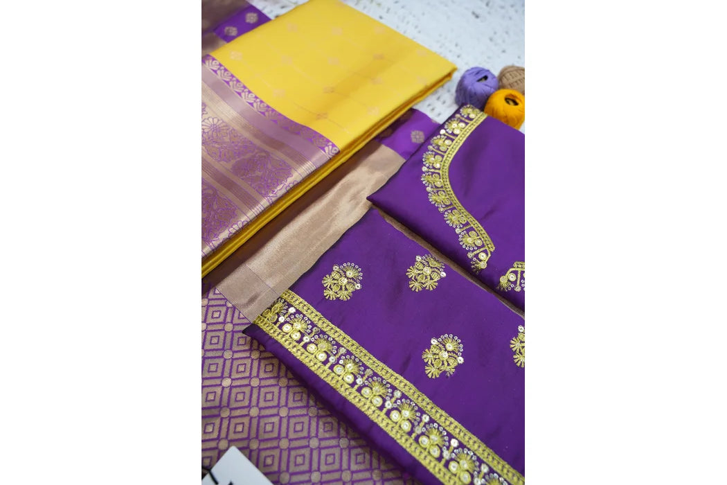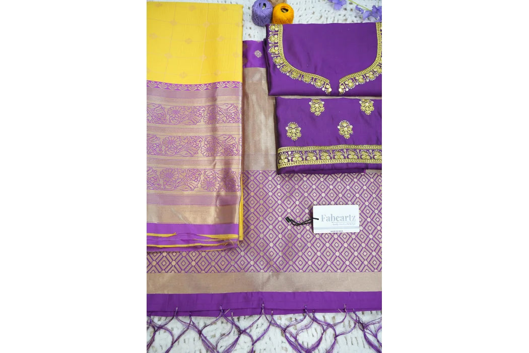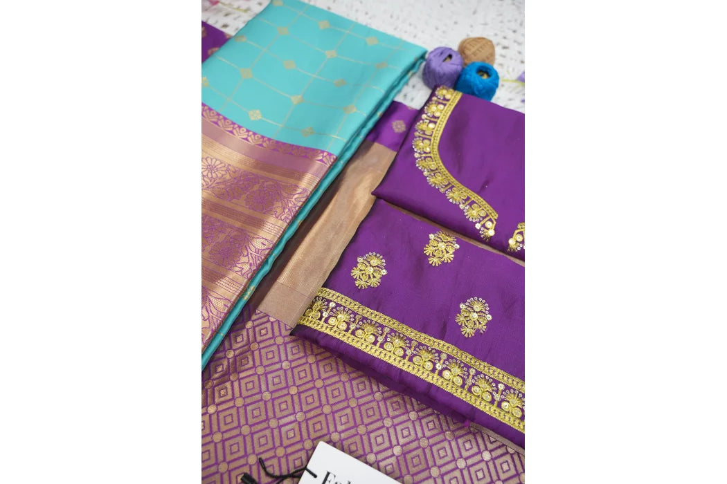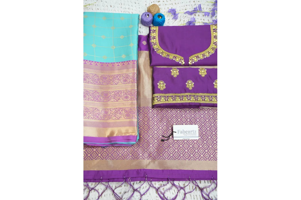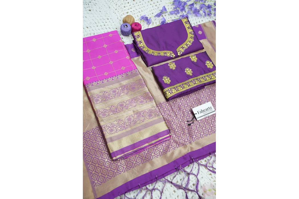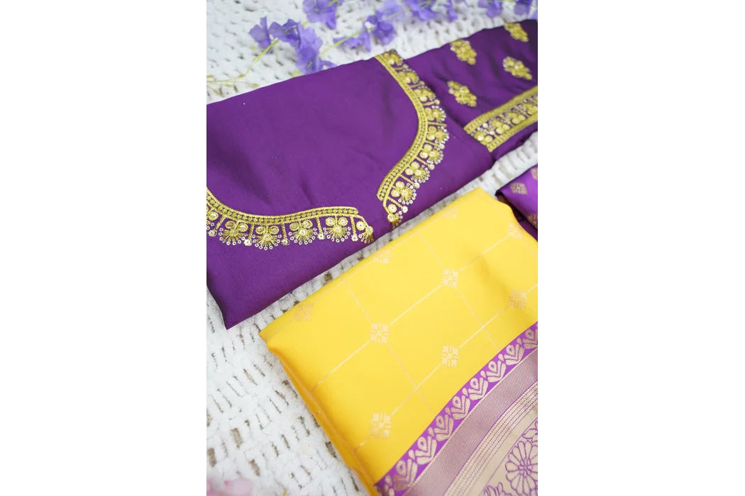 Crafted from Taffeta Satin (Litchi Silk) with intricate Zari work, offering a rich and elegant look.