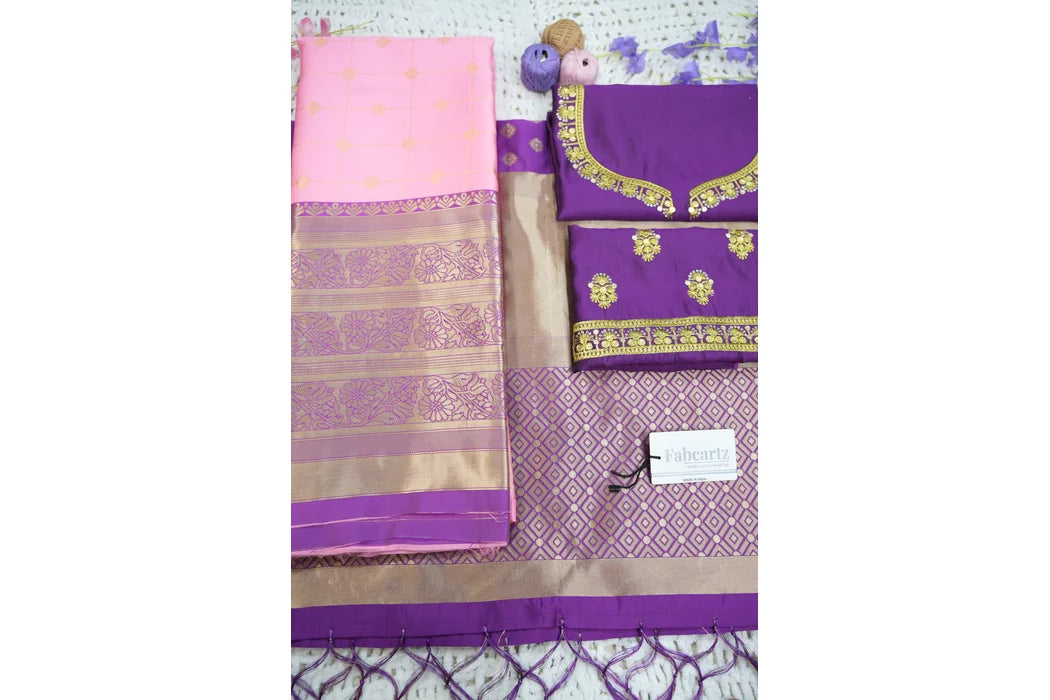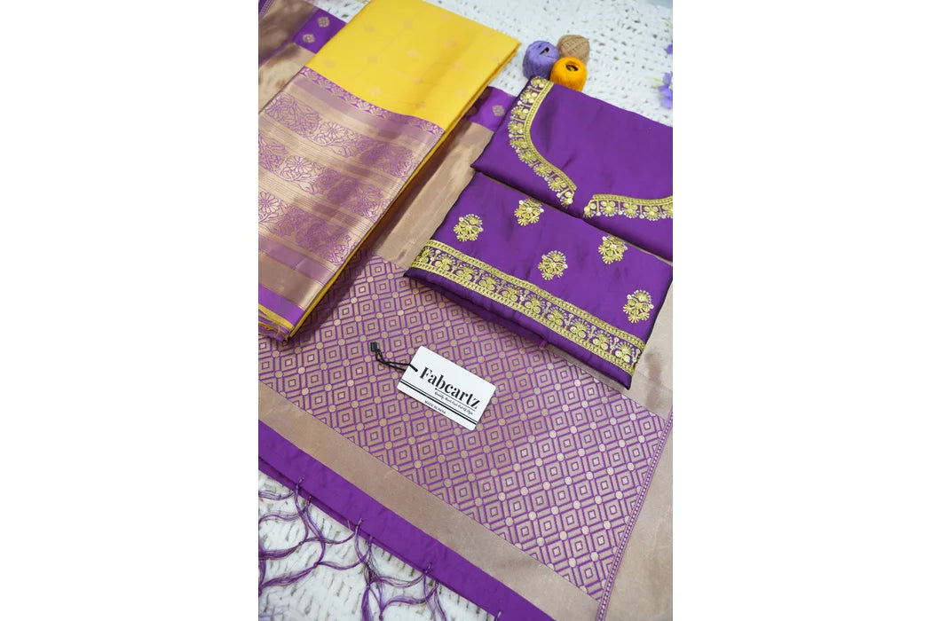 (ButtaBomma) South Indian Festival Traditional Half Saree with Embroidered Blouse & Dupatta