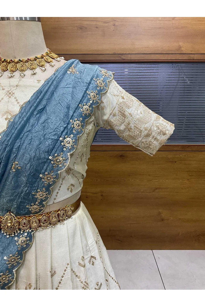 (Adhira) South Indian Festival Traditional Half Saree with Embroidered Blouse & Dupatta