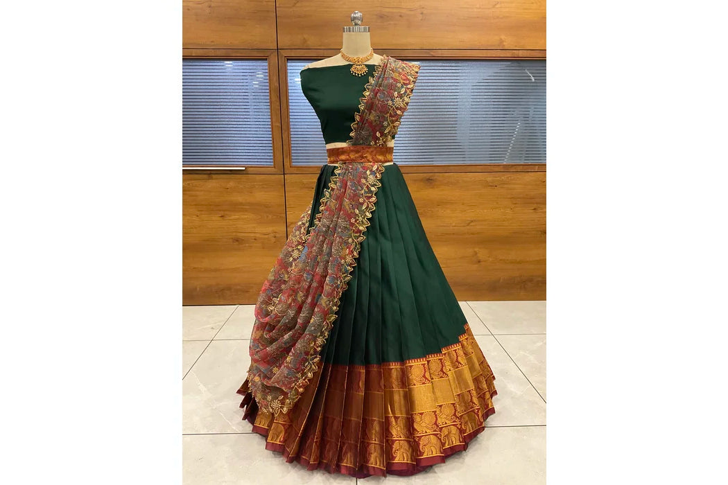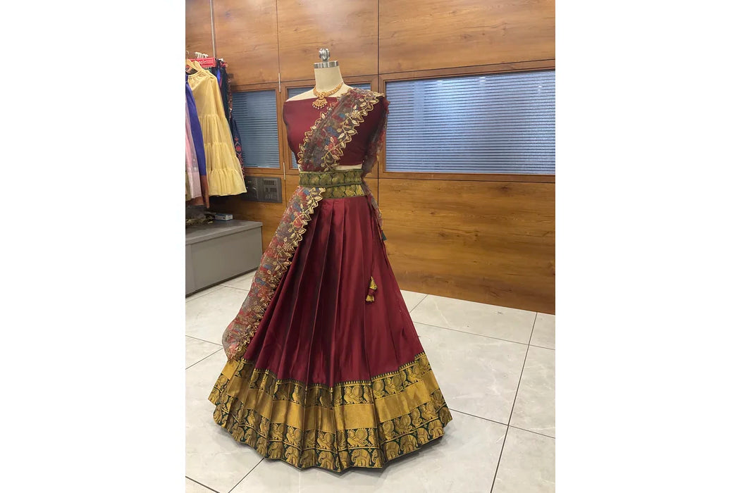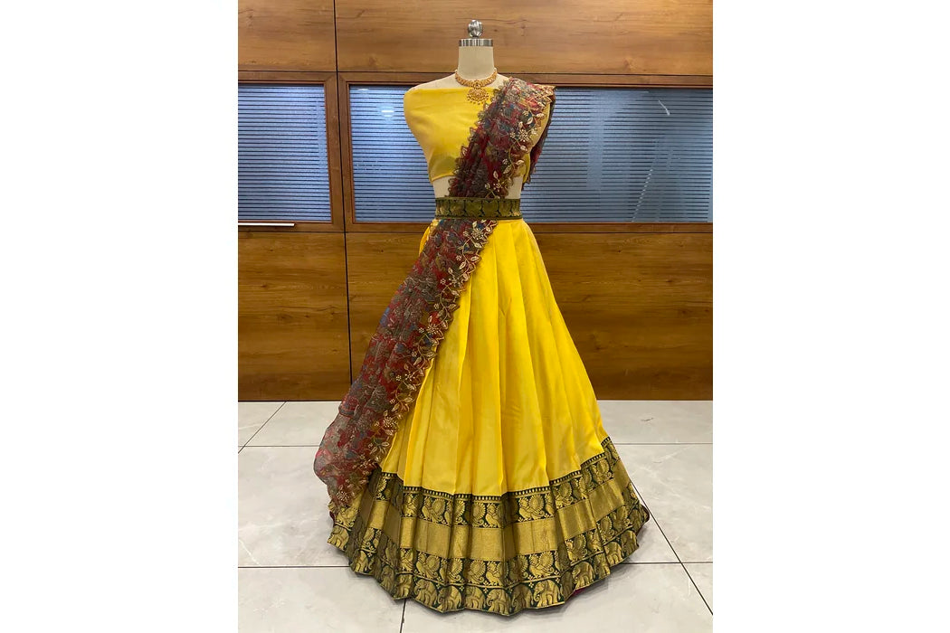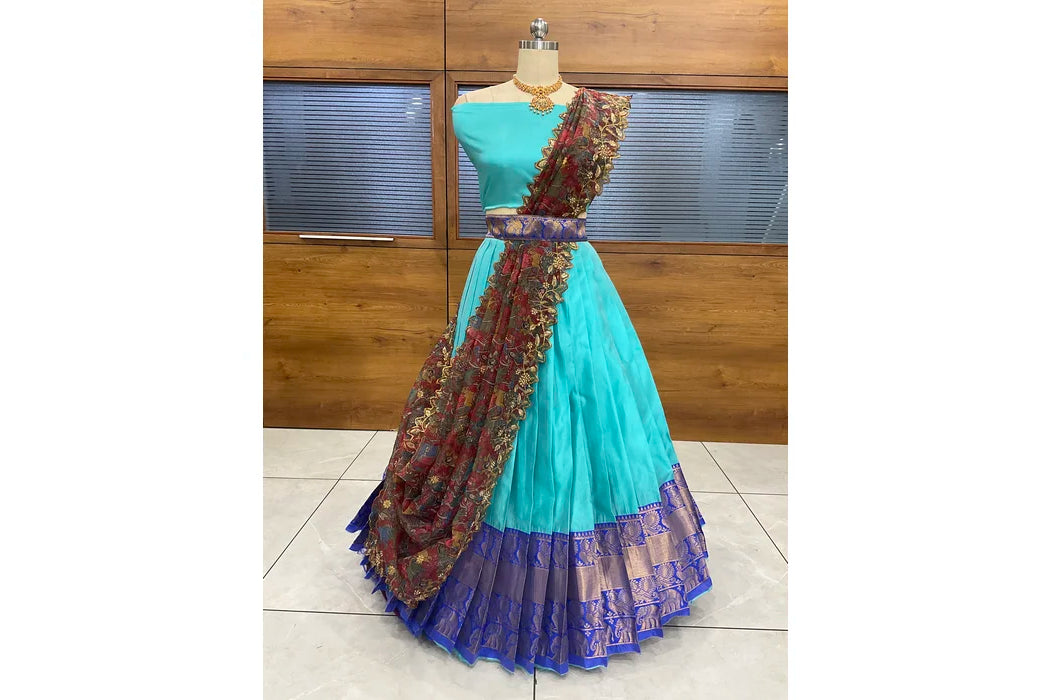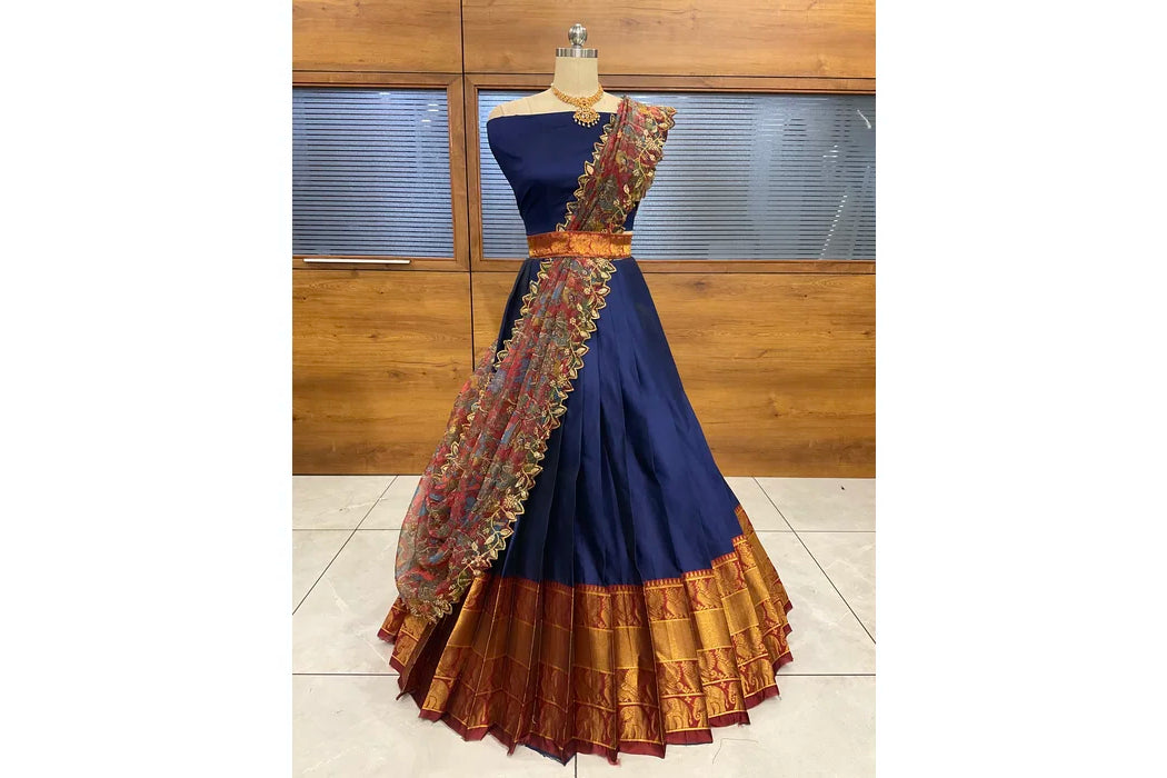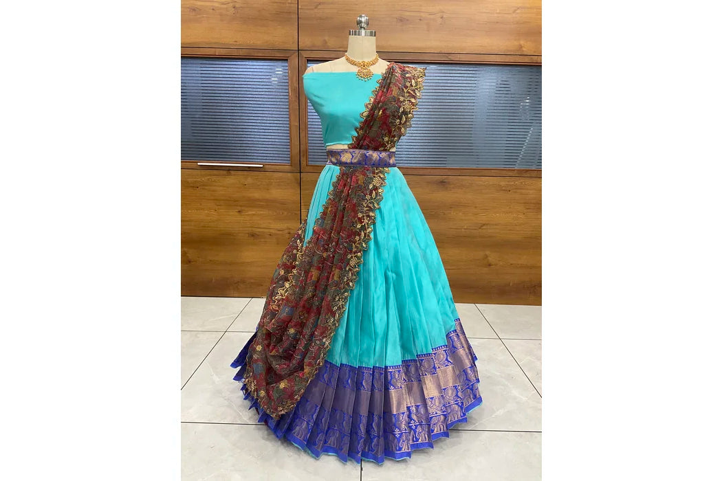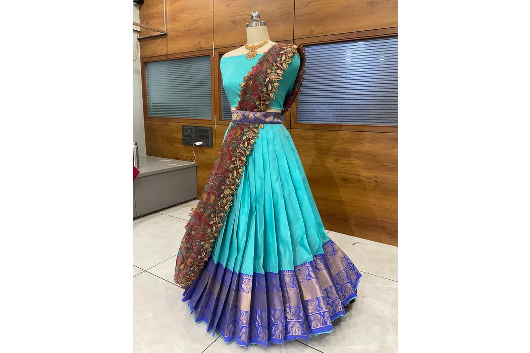 (Adhira) South Indian Festival Traditional Half Saree with Embroidered Blouse & Dupatta