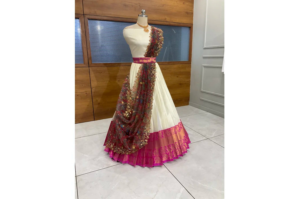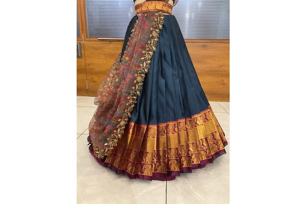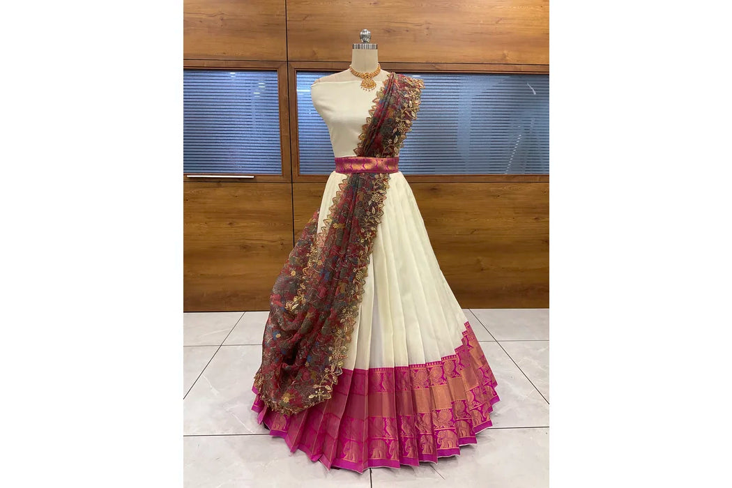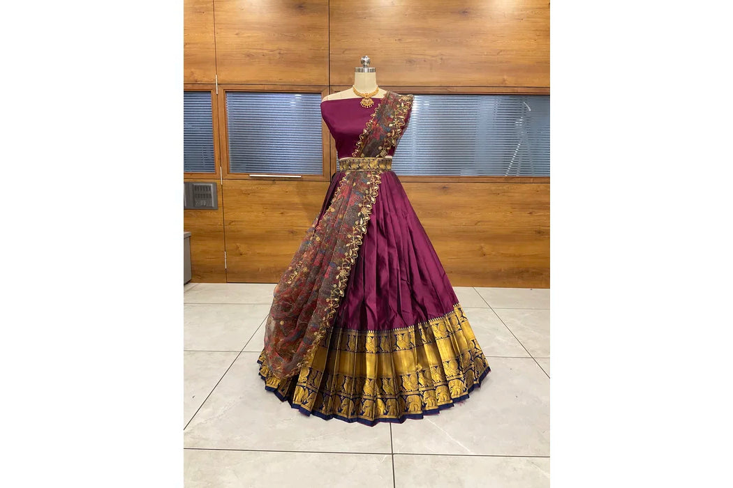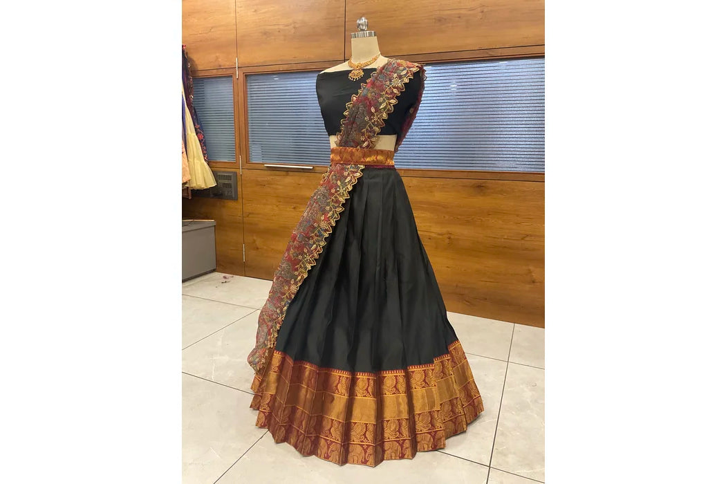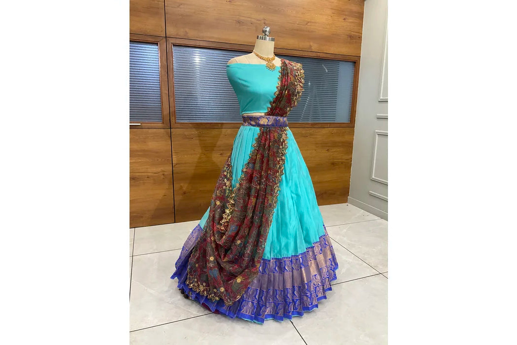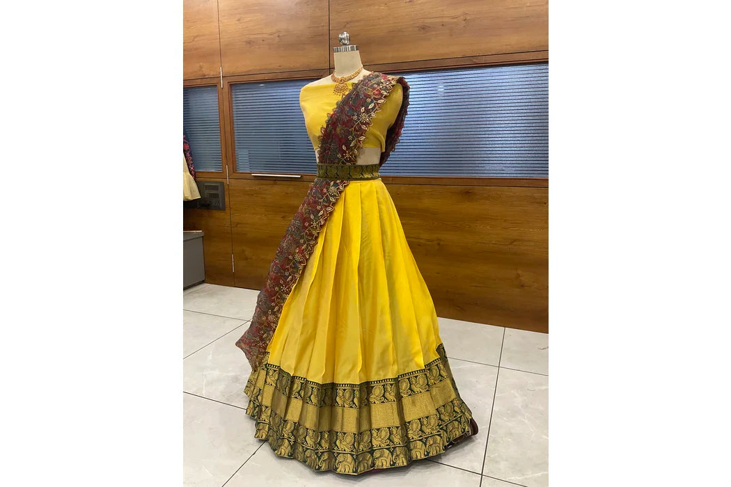 (Adhira) South Indian Festival Traditional Half Saree with Embroidered Blouse & Dupatta