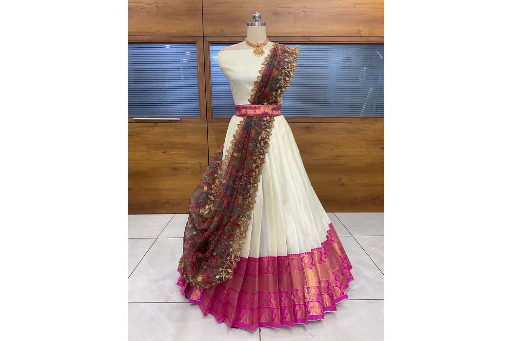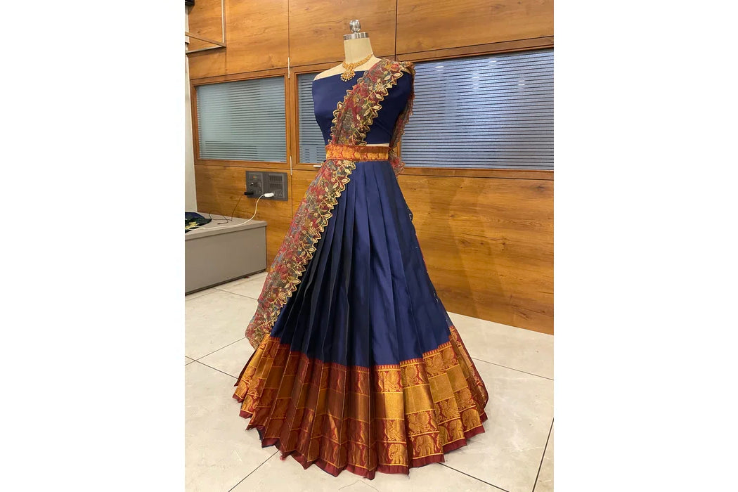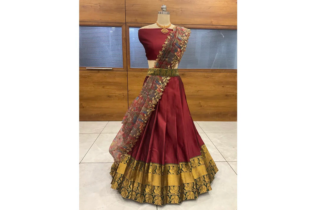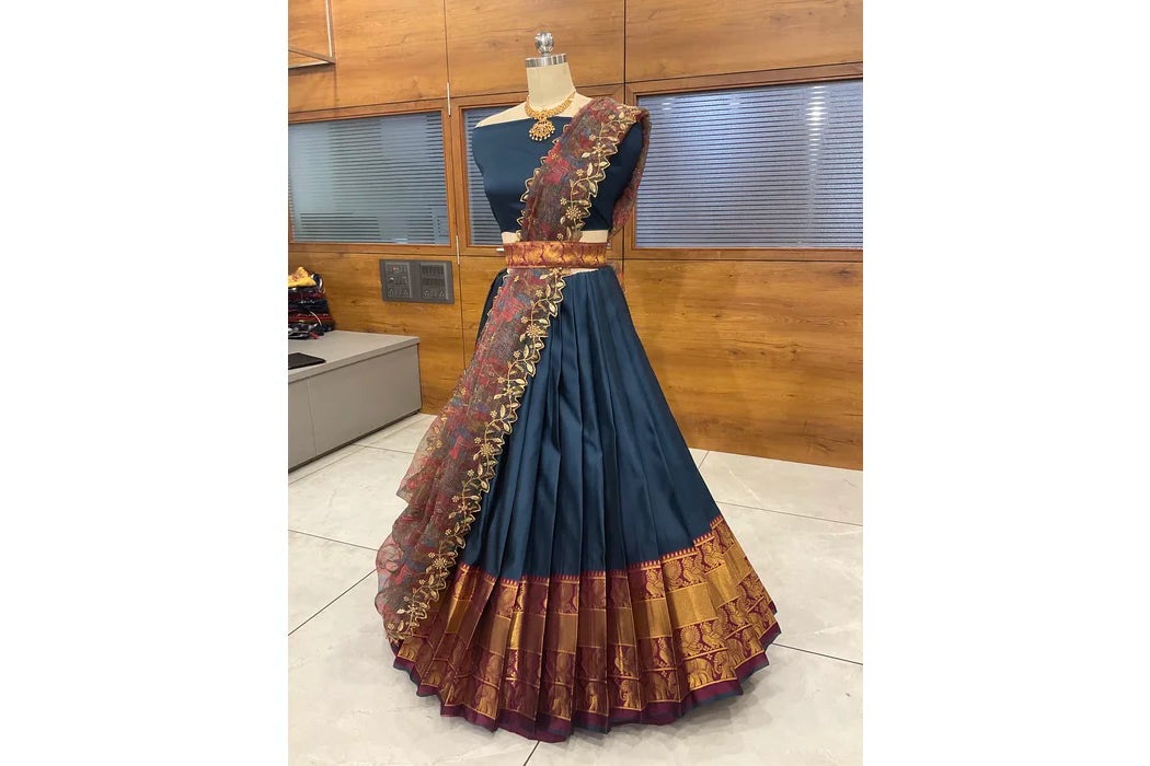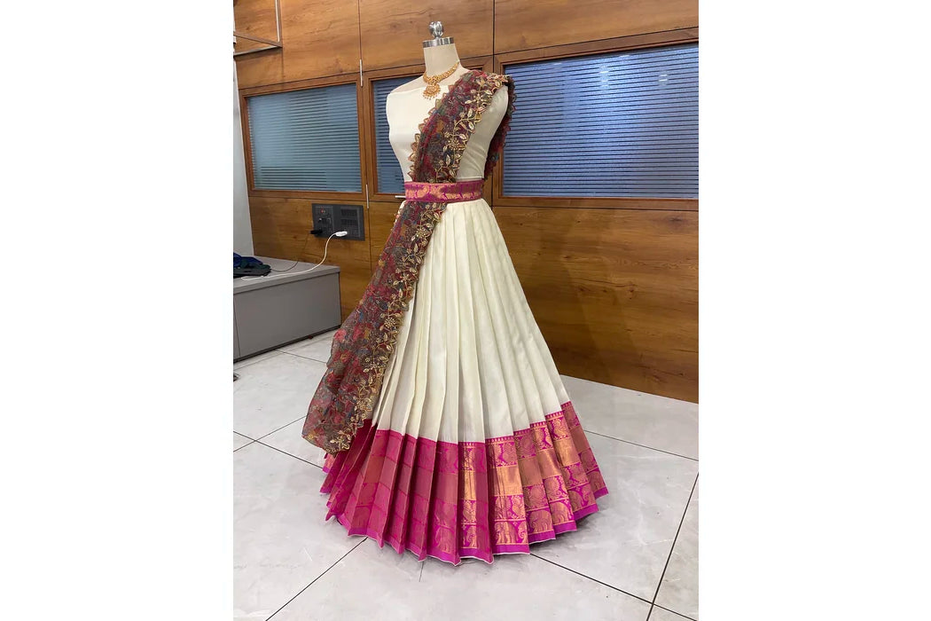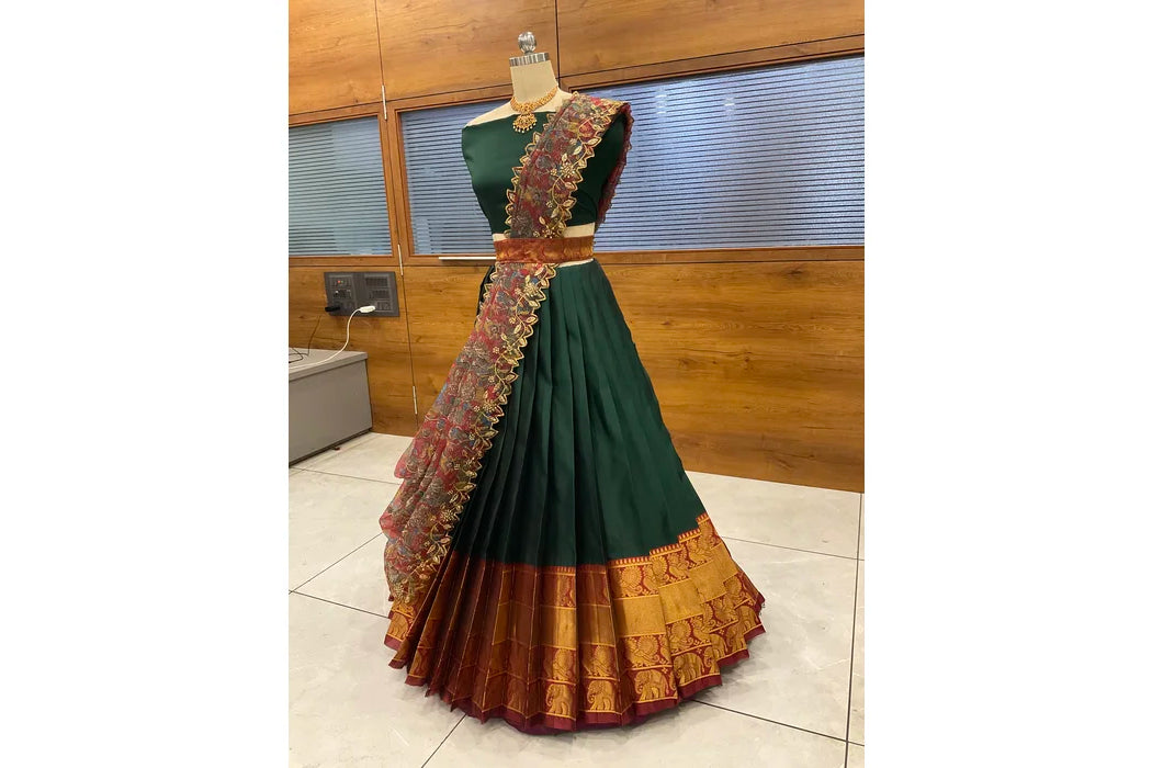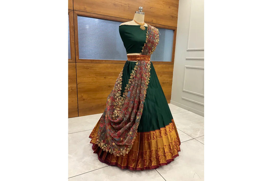 (Adhira) South Indian Festival Traditional Half Saree with Embroidered Blouse & Dupatta