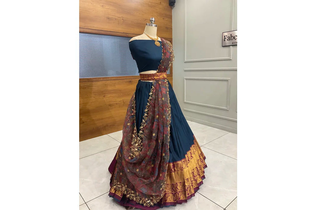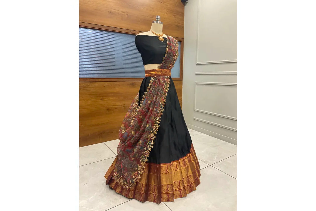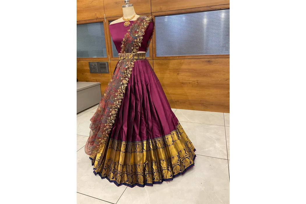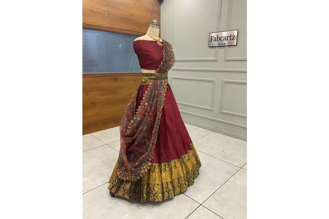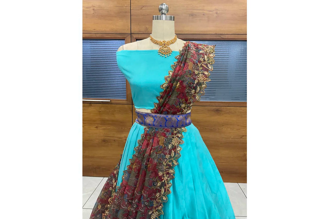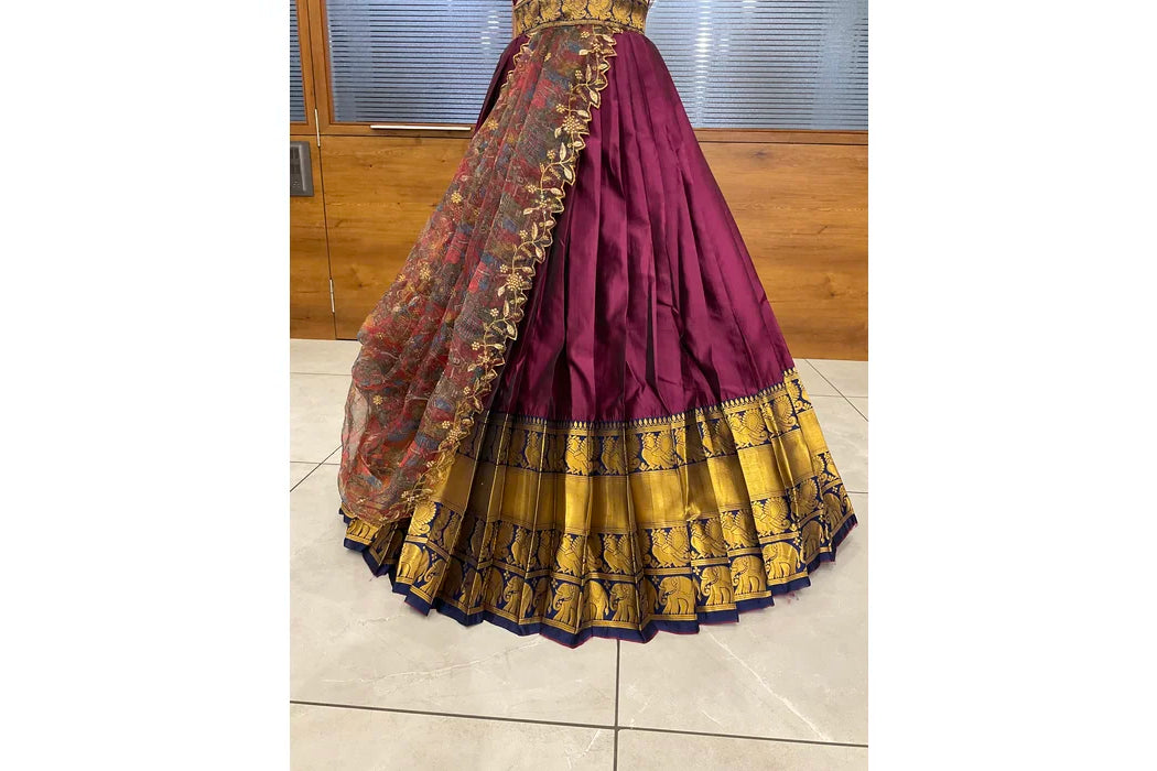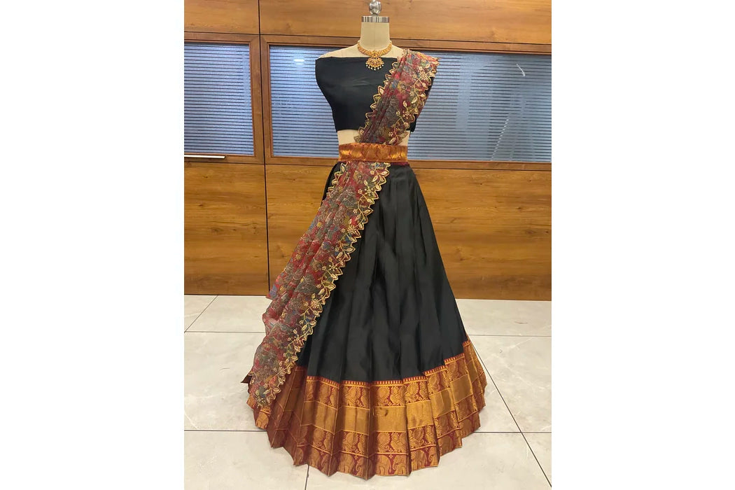 (Adhira) South Indian Festival Traditional Half Saree with Embroidered Blouse & Dupatta