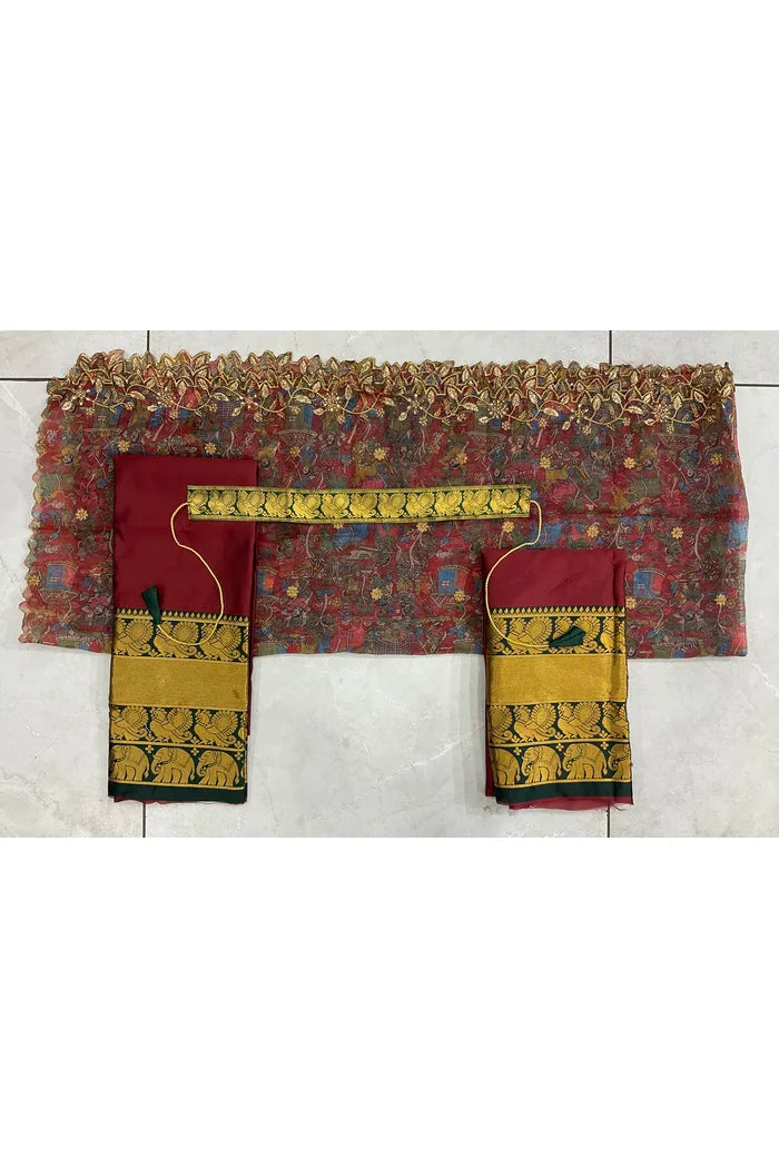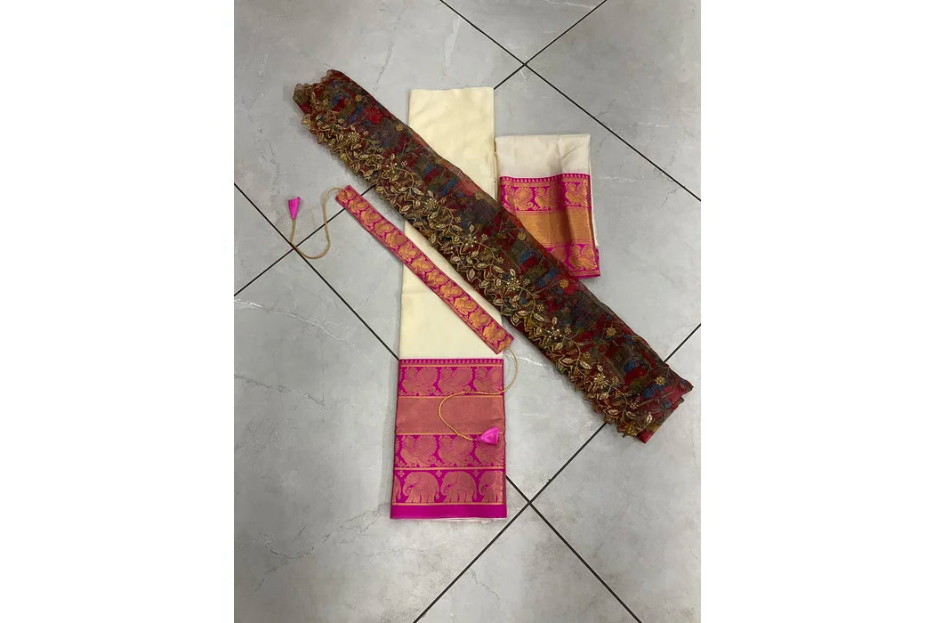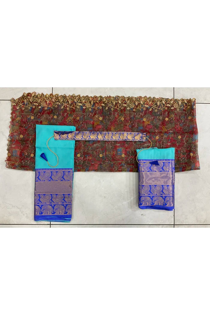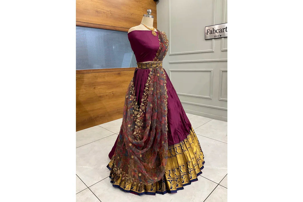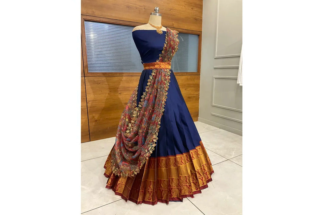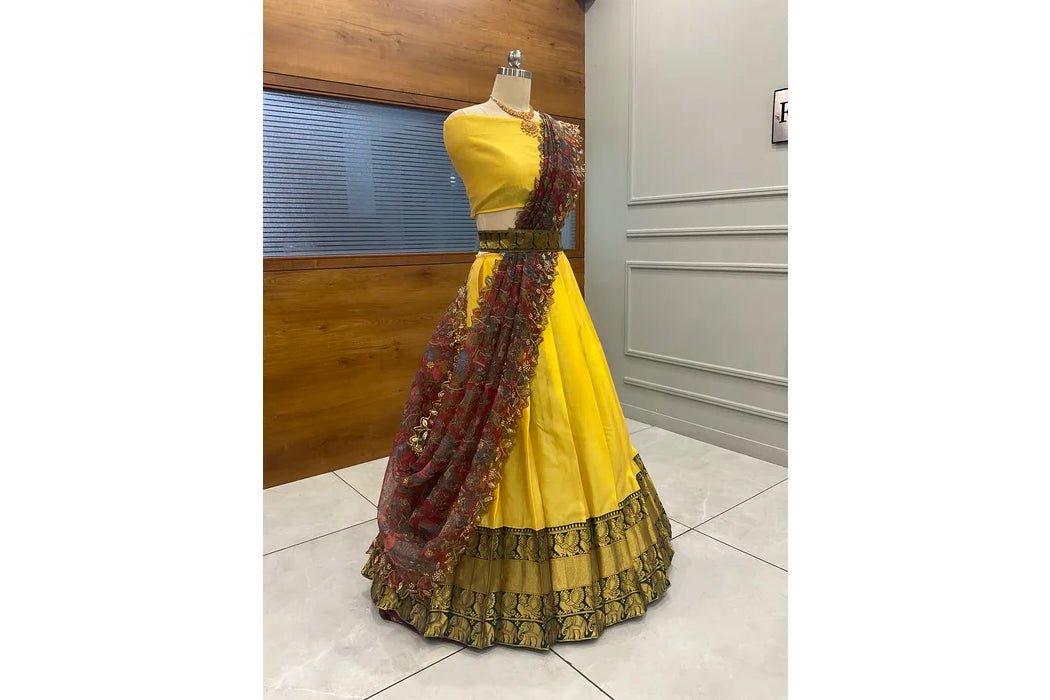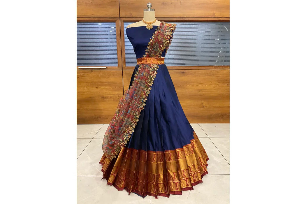 (Adhira) South Indian Festival Traditional Half Saree with Embroidered Blouse & Dupatta