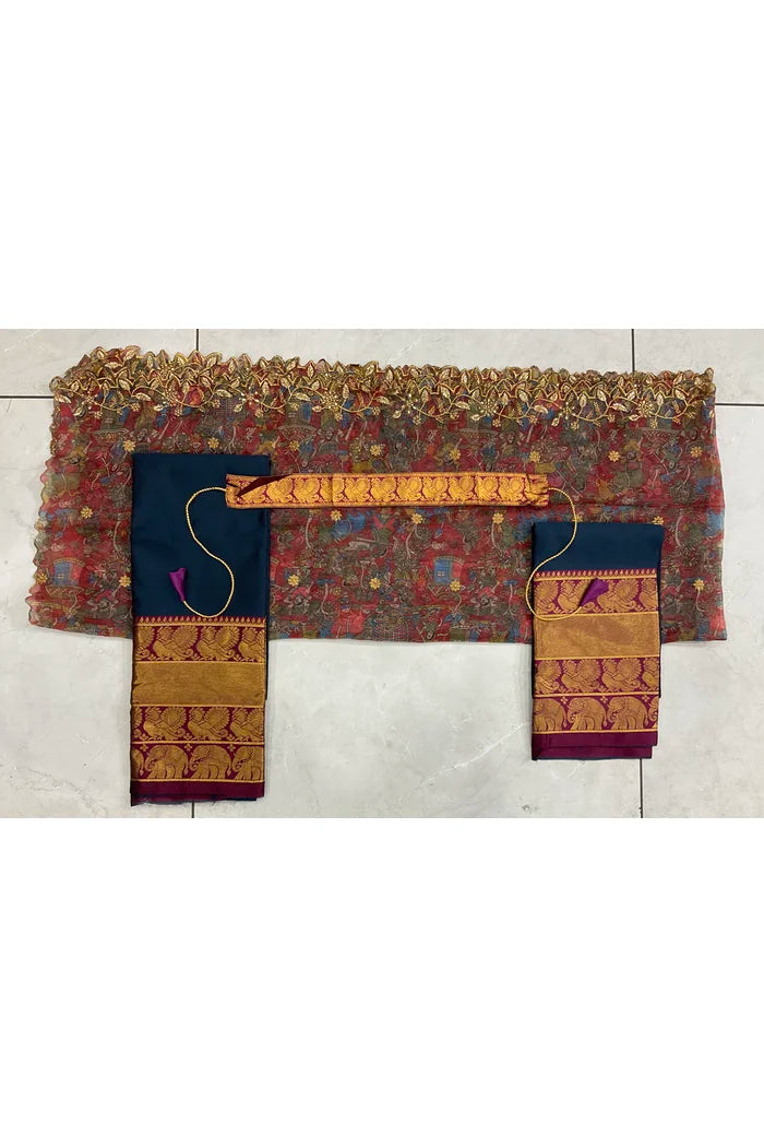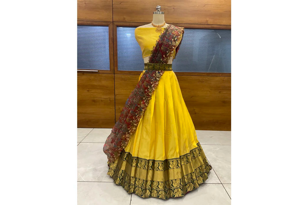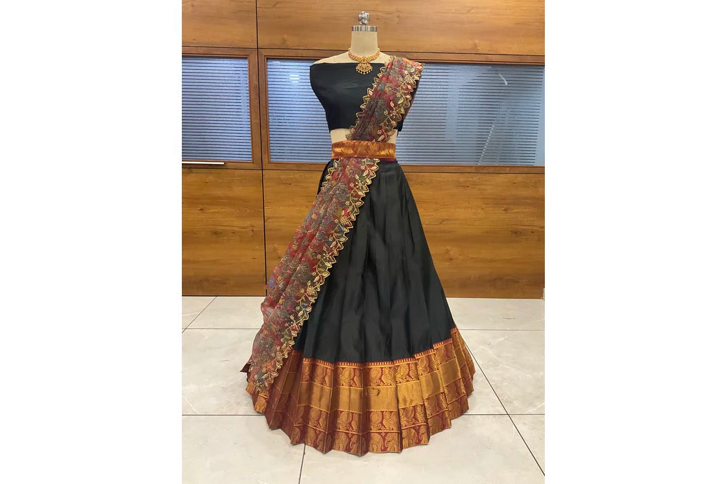 (ButtaBomma) South Indian Festival Traditional Half Saree with Embroidered Blouse & Dupatta