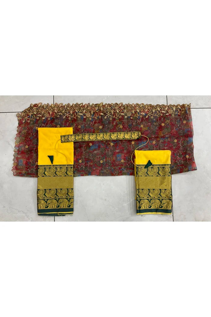 Kanya Women's Woven Design zari work Half Saree with Blouse  and Printed Embroidered Dupatta